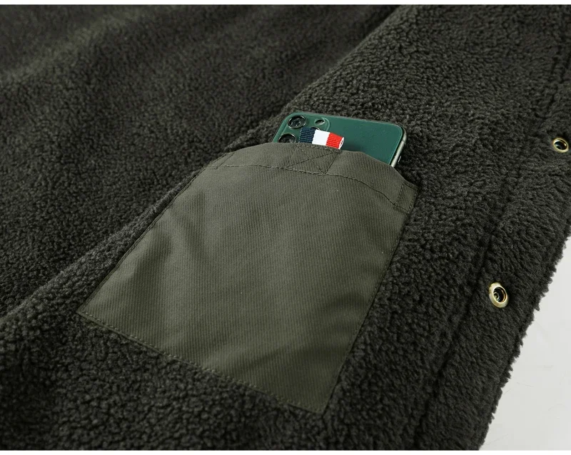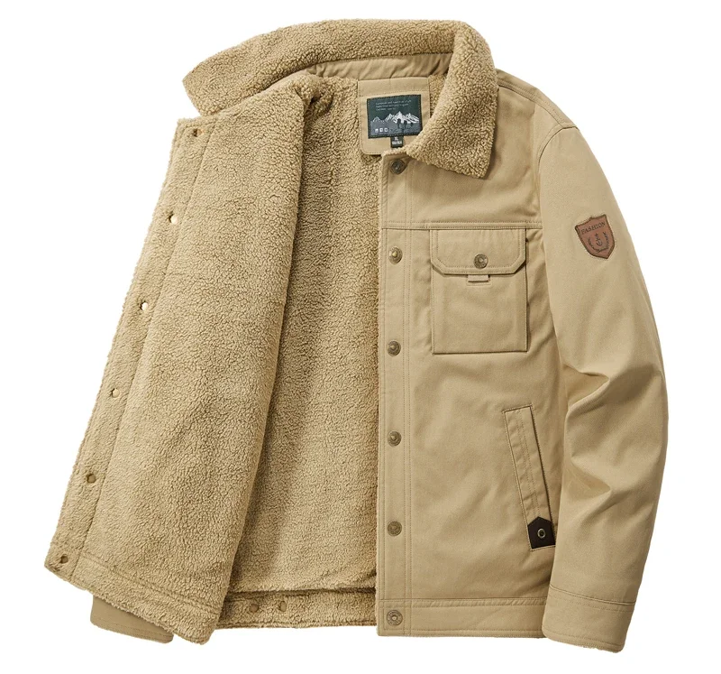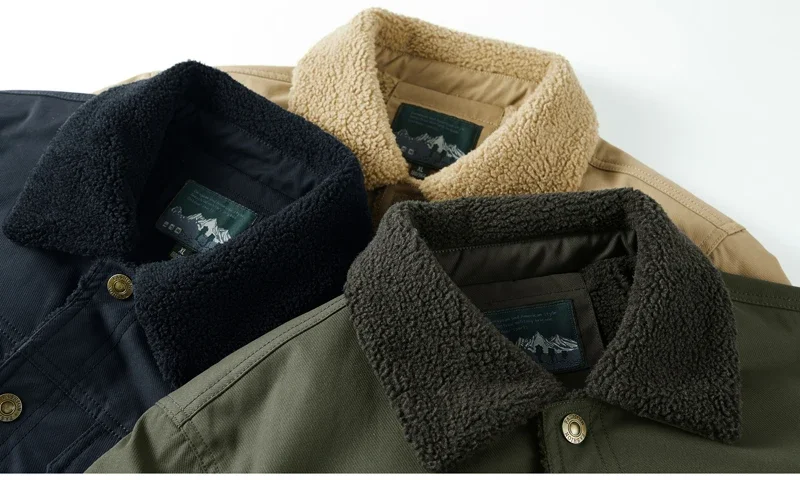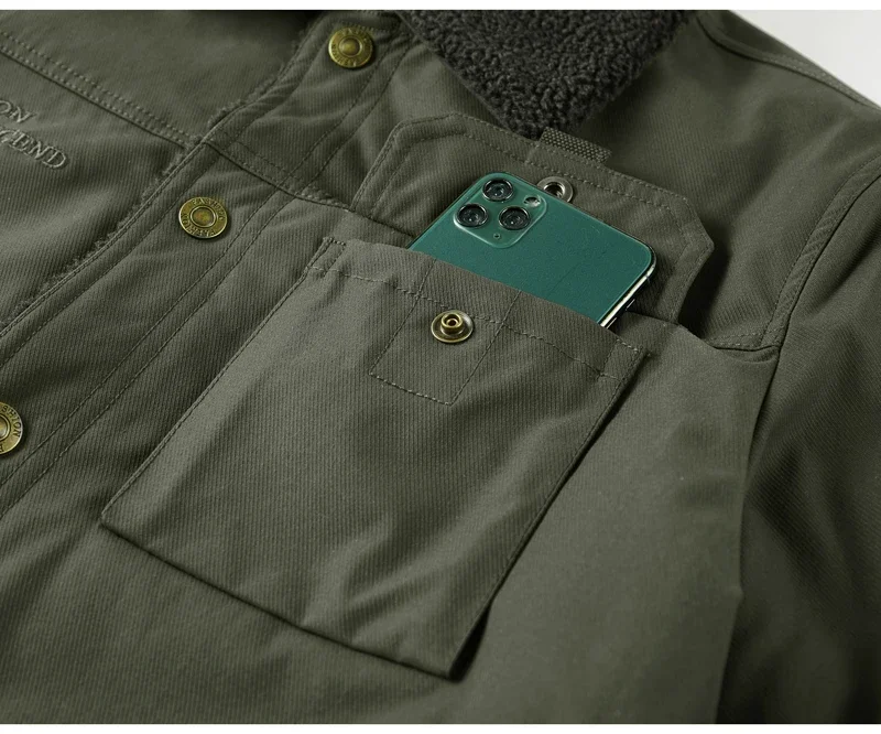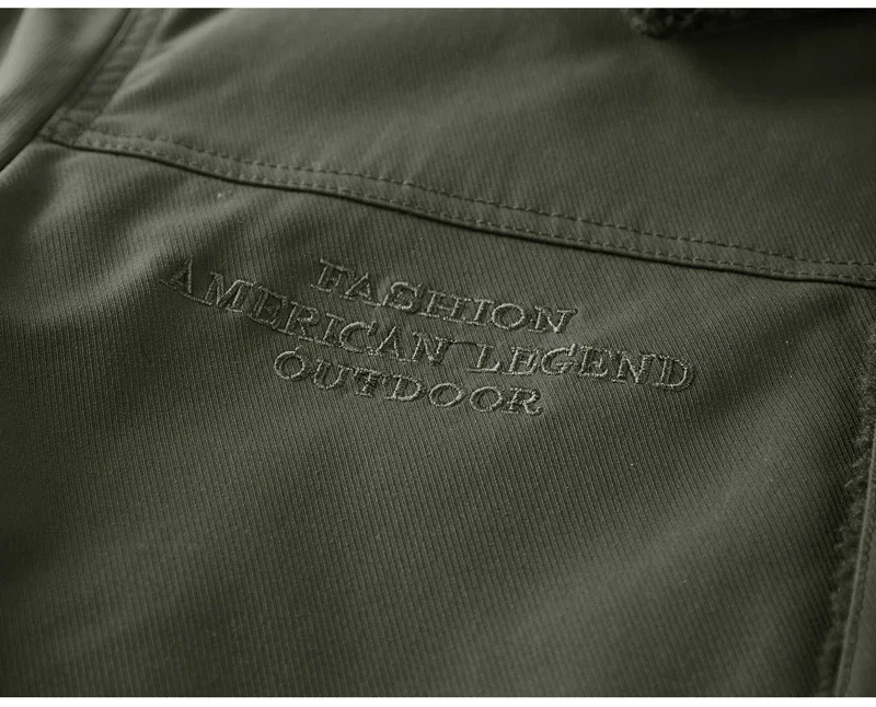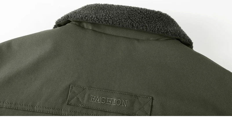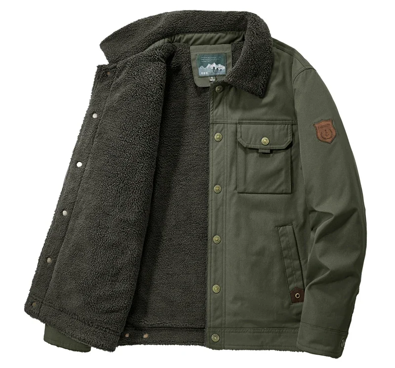 Men’s Thicken Fleece Cotton Army Green Camping Jacket Cargo Bomber Jacket With Multi-pockets Working Winter Coat Men Clothing