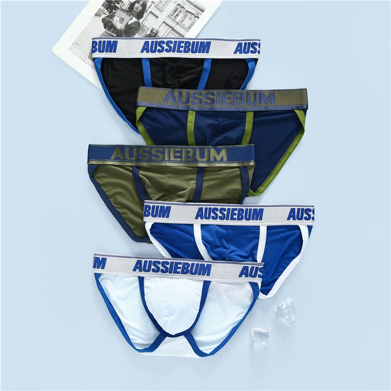 Men’s underwear elastic mesh comfortable breathable sexy high fork youth briefs aussiebum Men’s briefs milk silk waist comfort