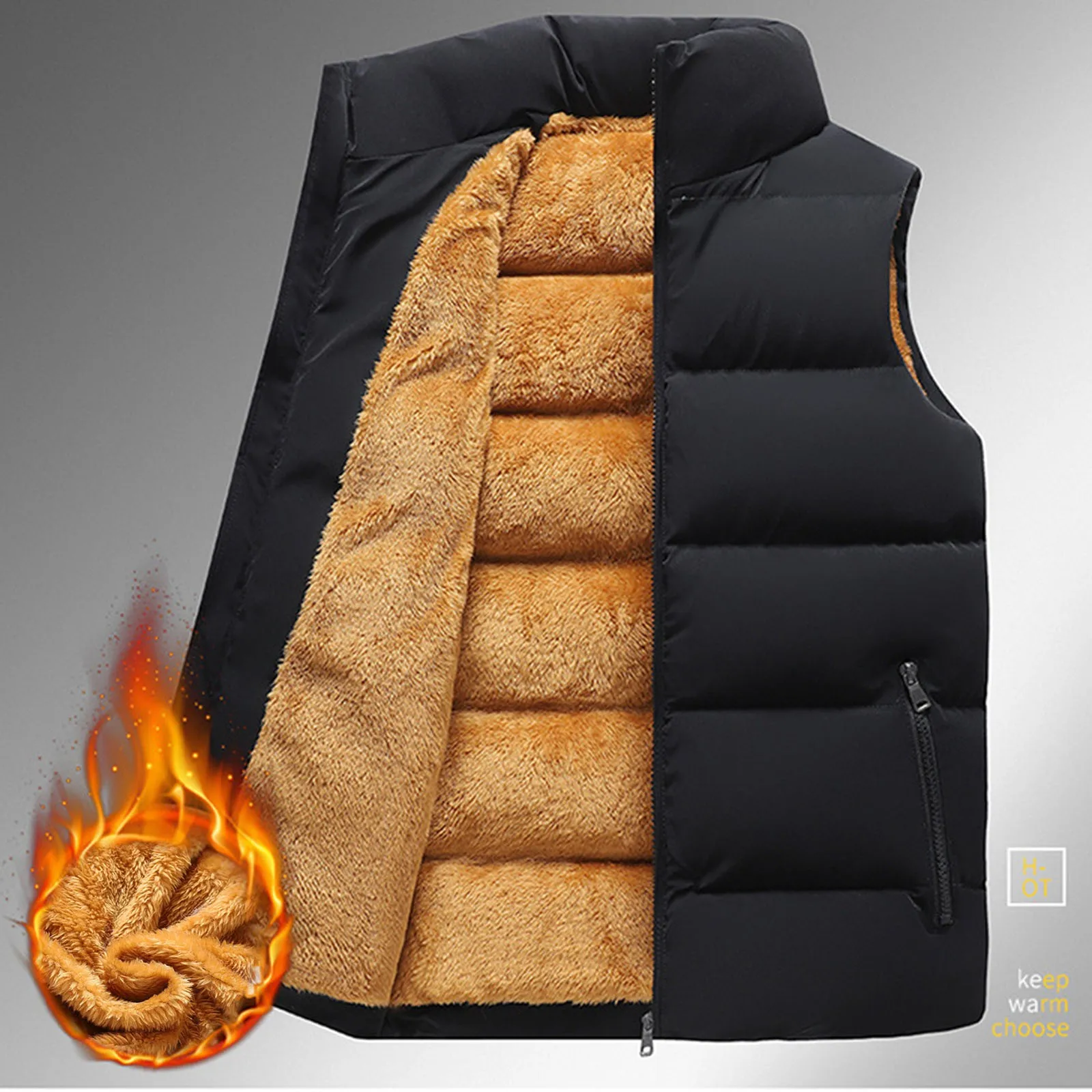 Mens Vacation Vest Sleeveless Top Wool Jacket Cotton-Padded Vest 2024 Winter Fashion Comfort Men’S Jacket Winter Jacket Men