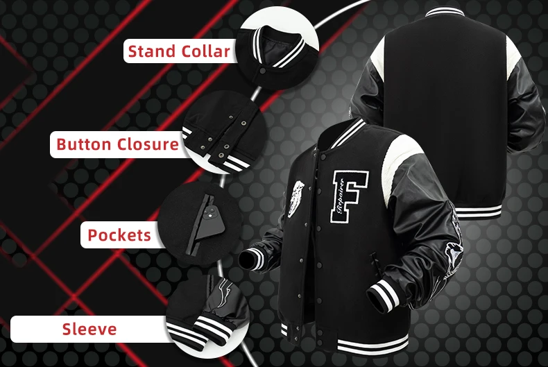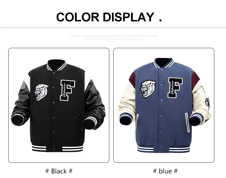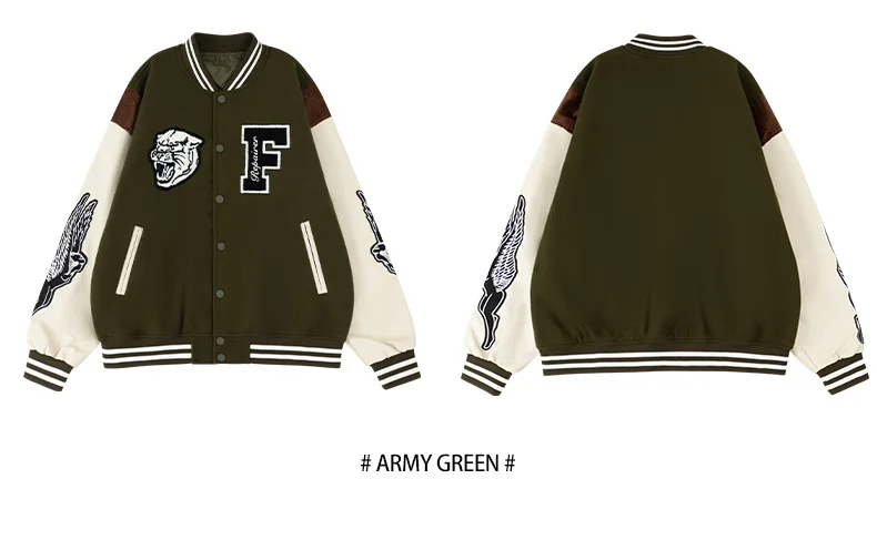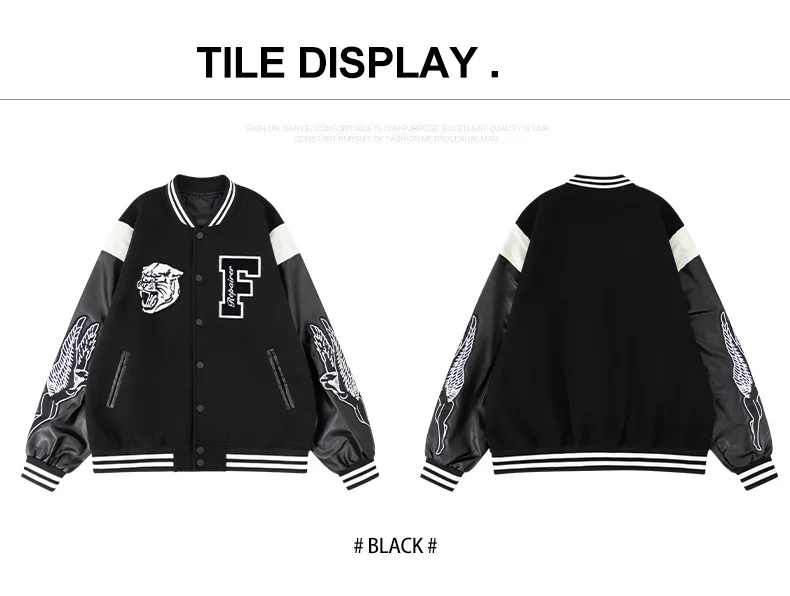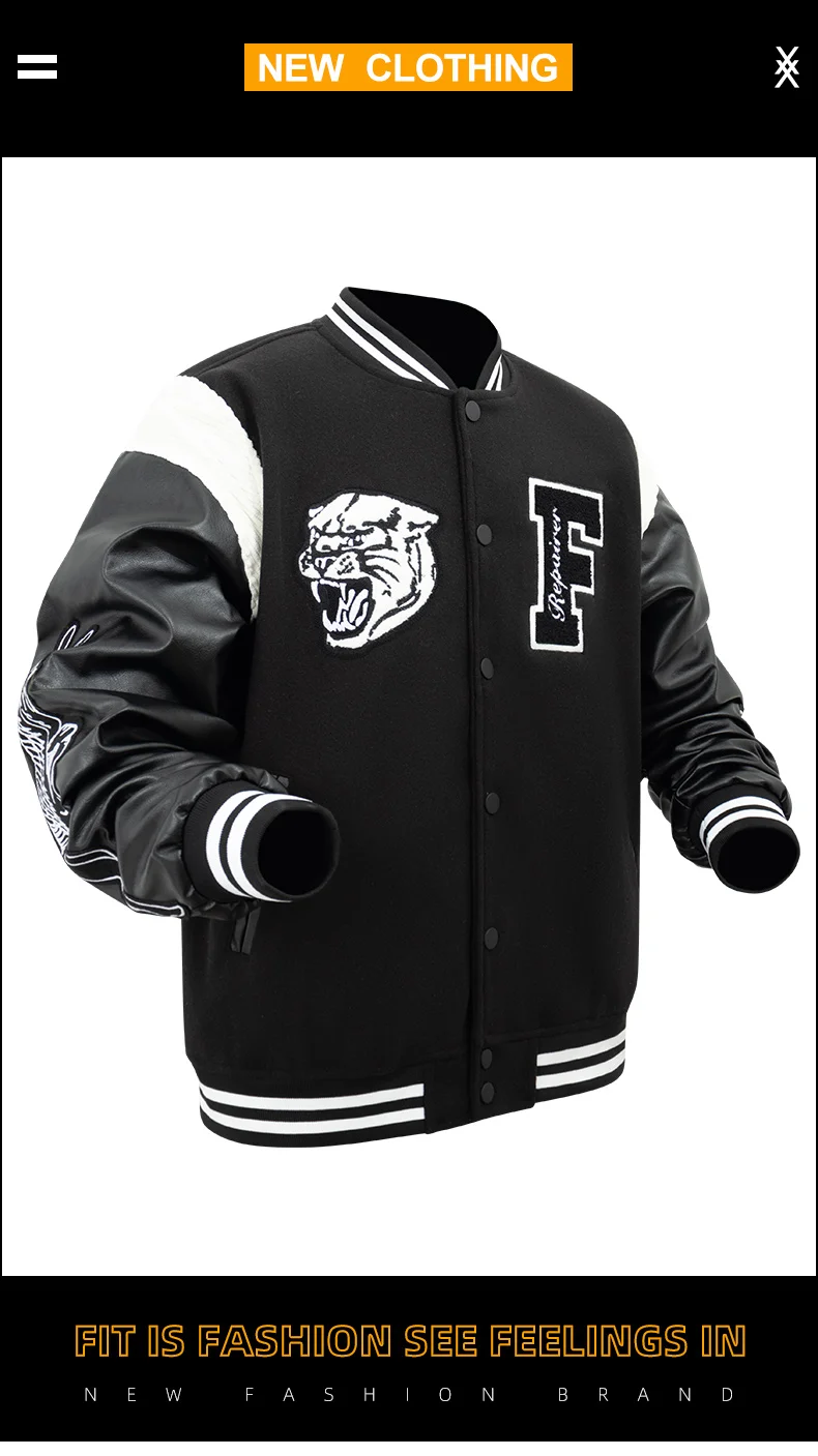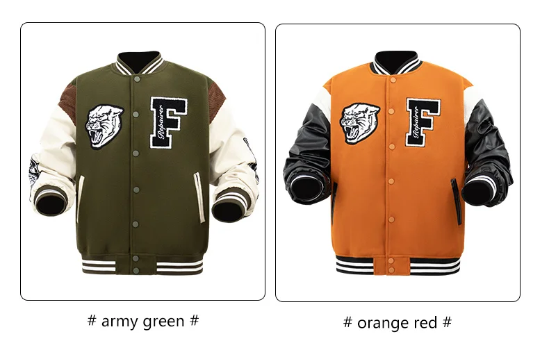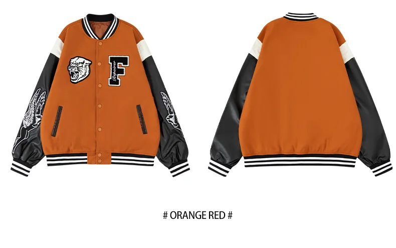 Men’s Varsity Bomber Jackets Leather Patchwork Vintage Baseball Jackets Animal+Letter Embroidery Coats Autumn&Winter Outerwear