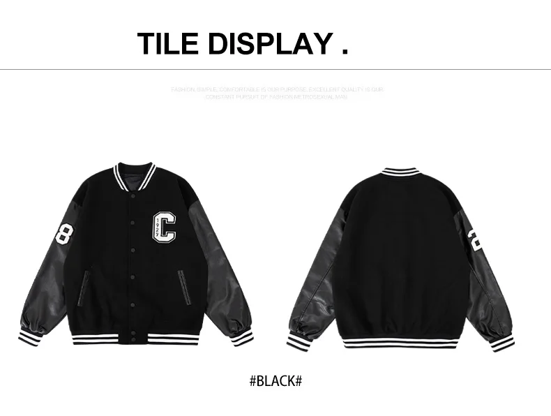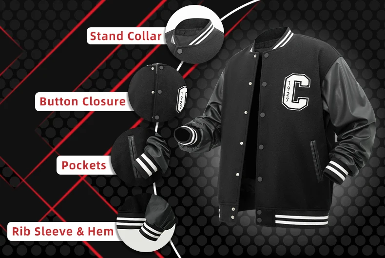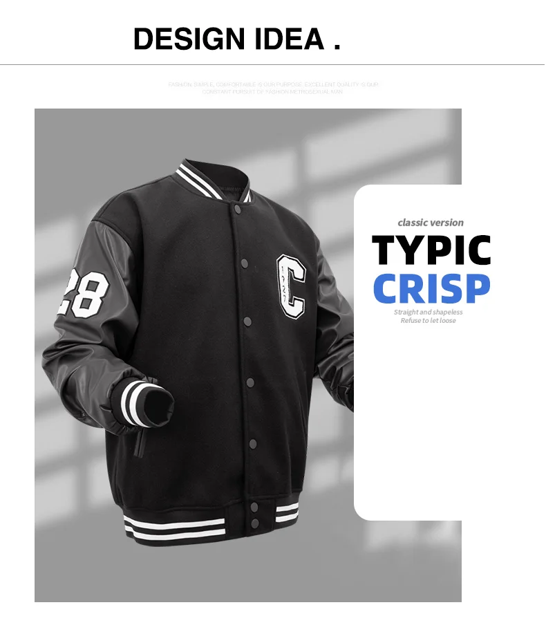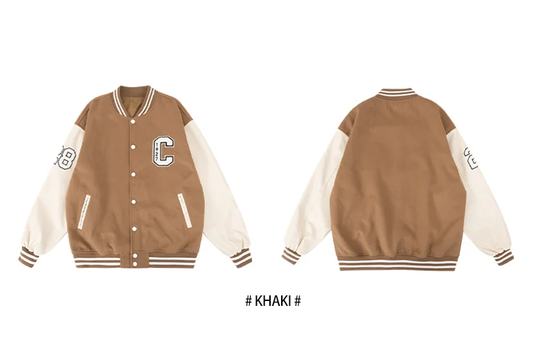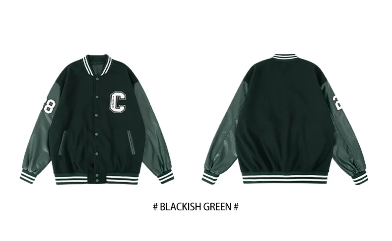 Mens Varsity Jackets ‘C’ Embroidery Baseball Bomber Jacket Unisex Vintage Letterman Wool+Faux Leather Coat For Fall&Spring