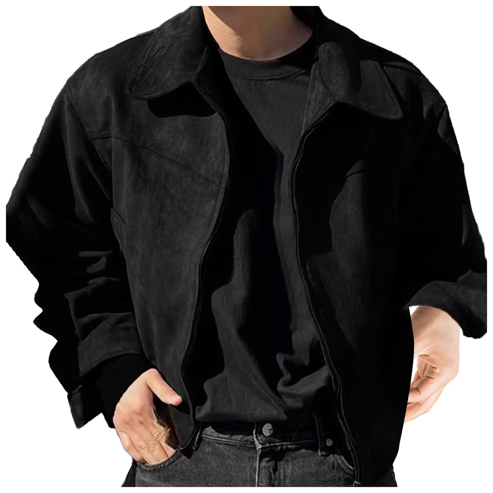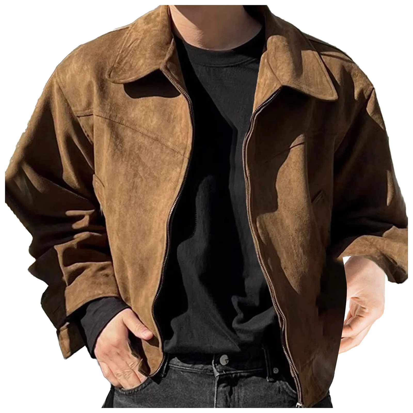 Men’S Vintage Short Lapel Jacket Autumn Zipper Fashion Suede Jacket Outwear Windbreaker Male Clothes Winter Jacket Men