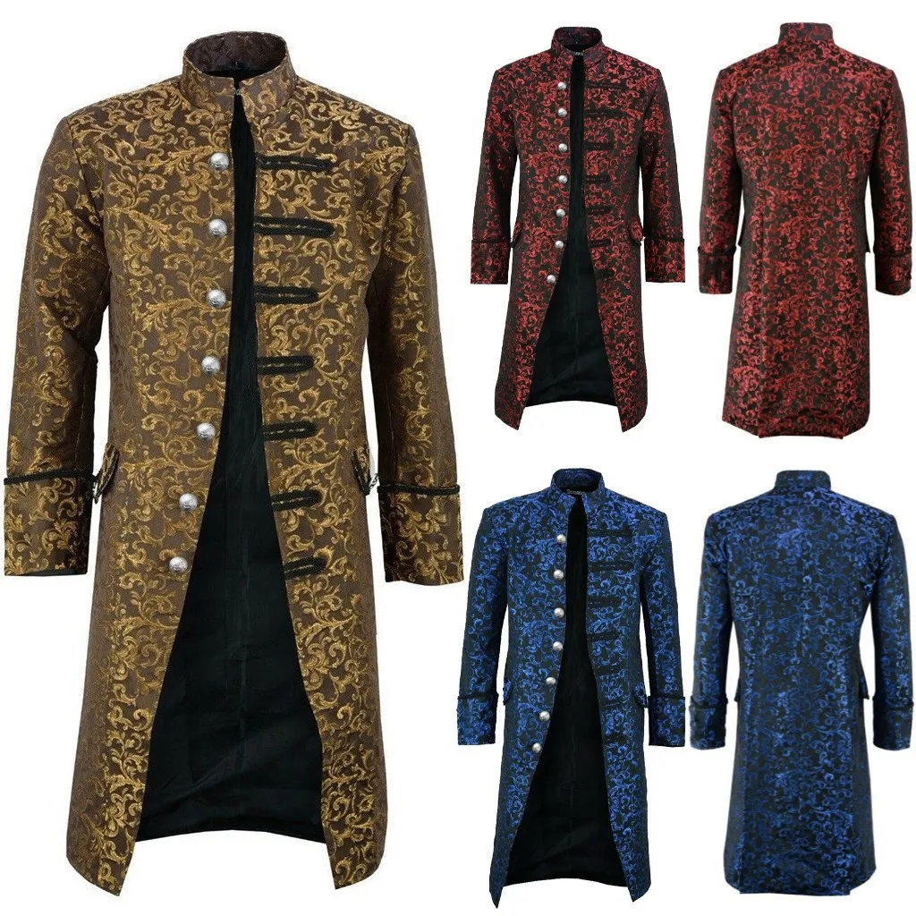 Men’s Vintage Tailcoat Steampunk Long Sleeve Jacket Casual Button Gothic Coats Jackets Halloween Victorian Dress Jacket Clothes
