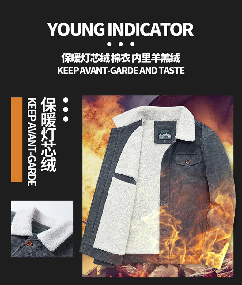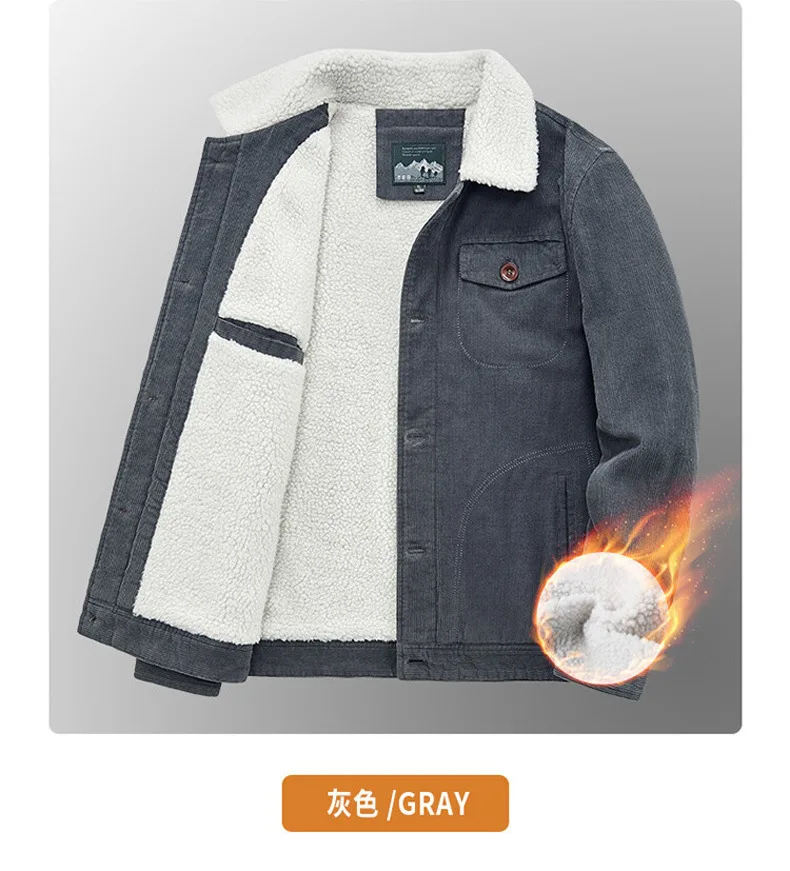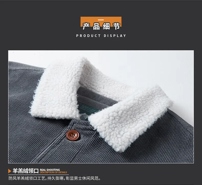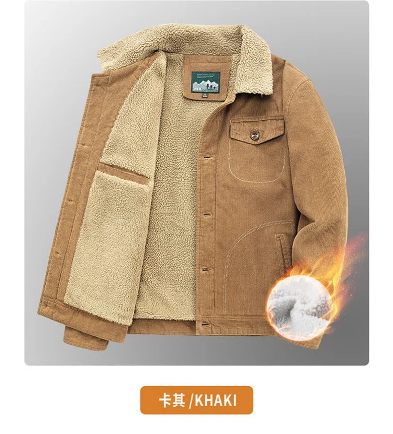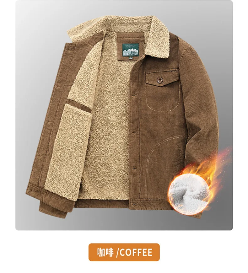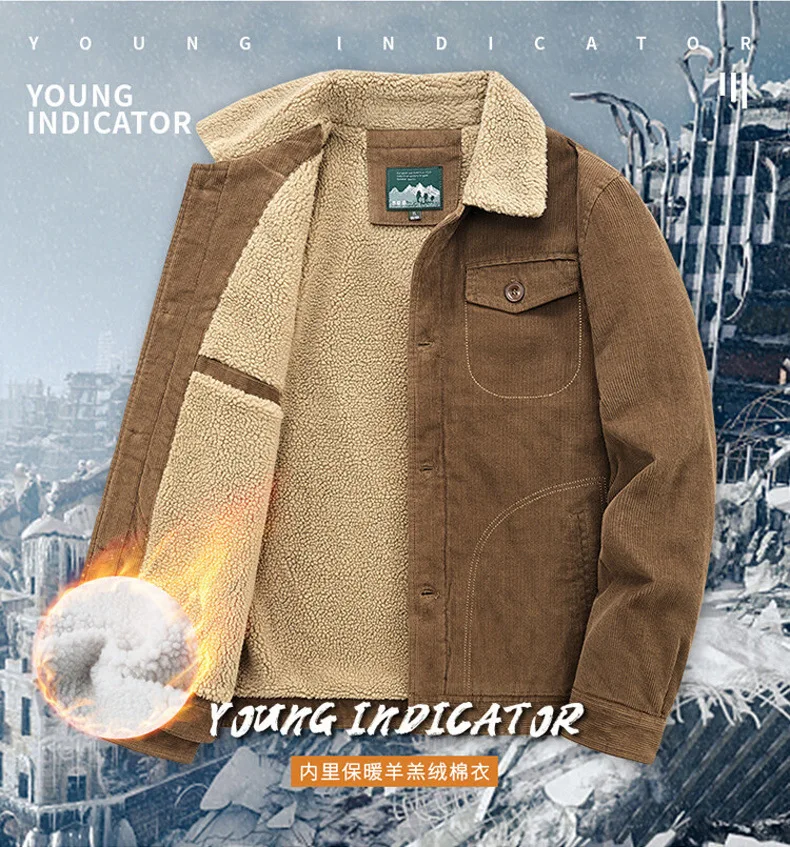 羊羔绒外套男士秋冬季加绒加厚棉衣休闲工装棉服复古灯芯绒夹克男