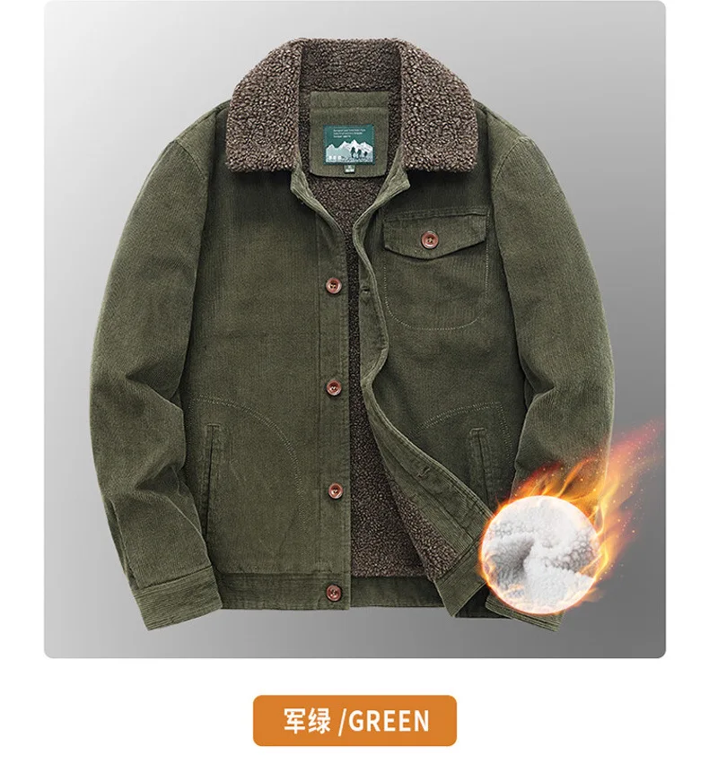 Mens Winter Corduroy Bomber Jackets Mens Retro Casual Thicken Fleece Warm Baseball Parkas Coats Windbreaker Military Outwear