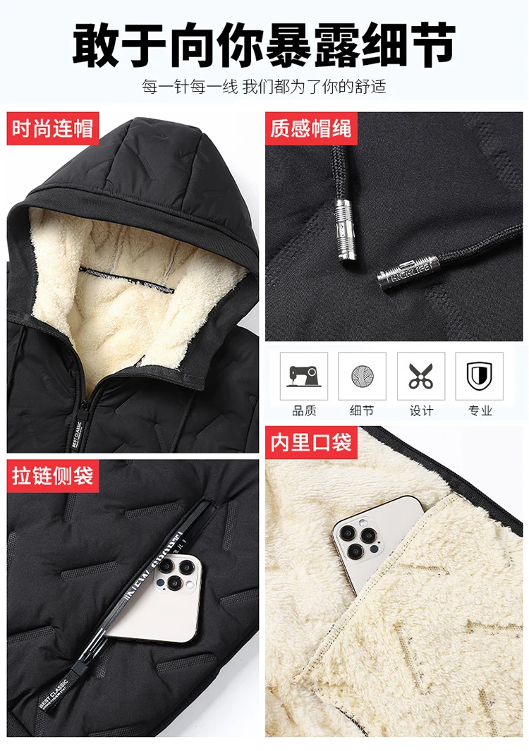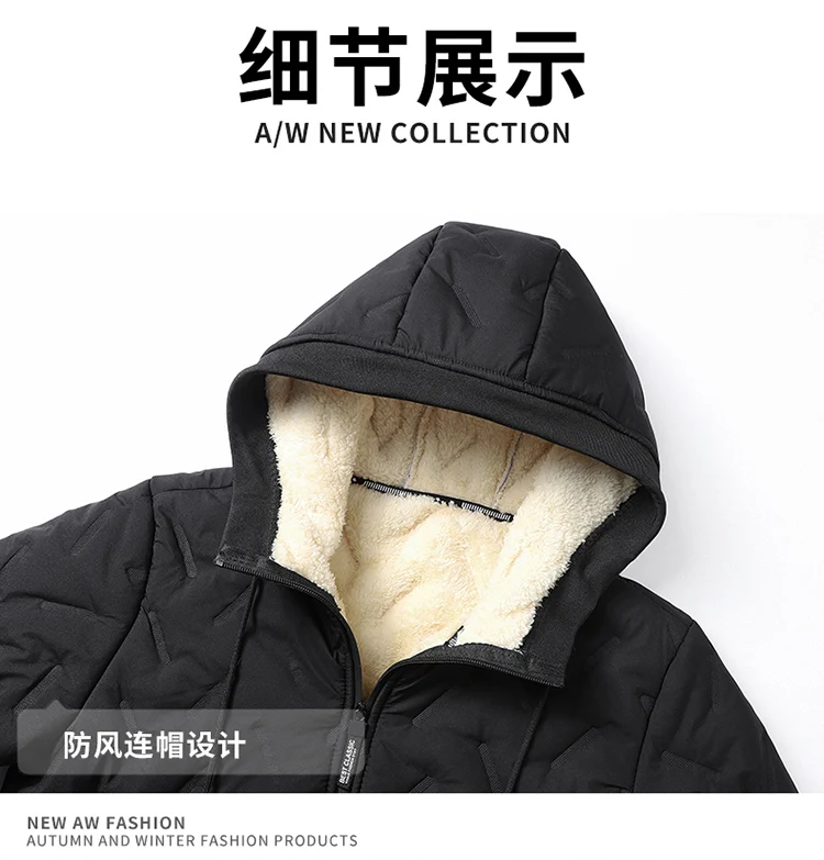Mens Winter Cotton Coat Thicken Fleece Lining Stand Collar Parka Jacket Men Outerwear Casual Padded Hooded Jackets 7XL Windproof