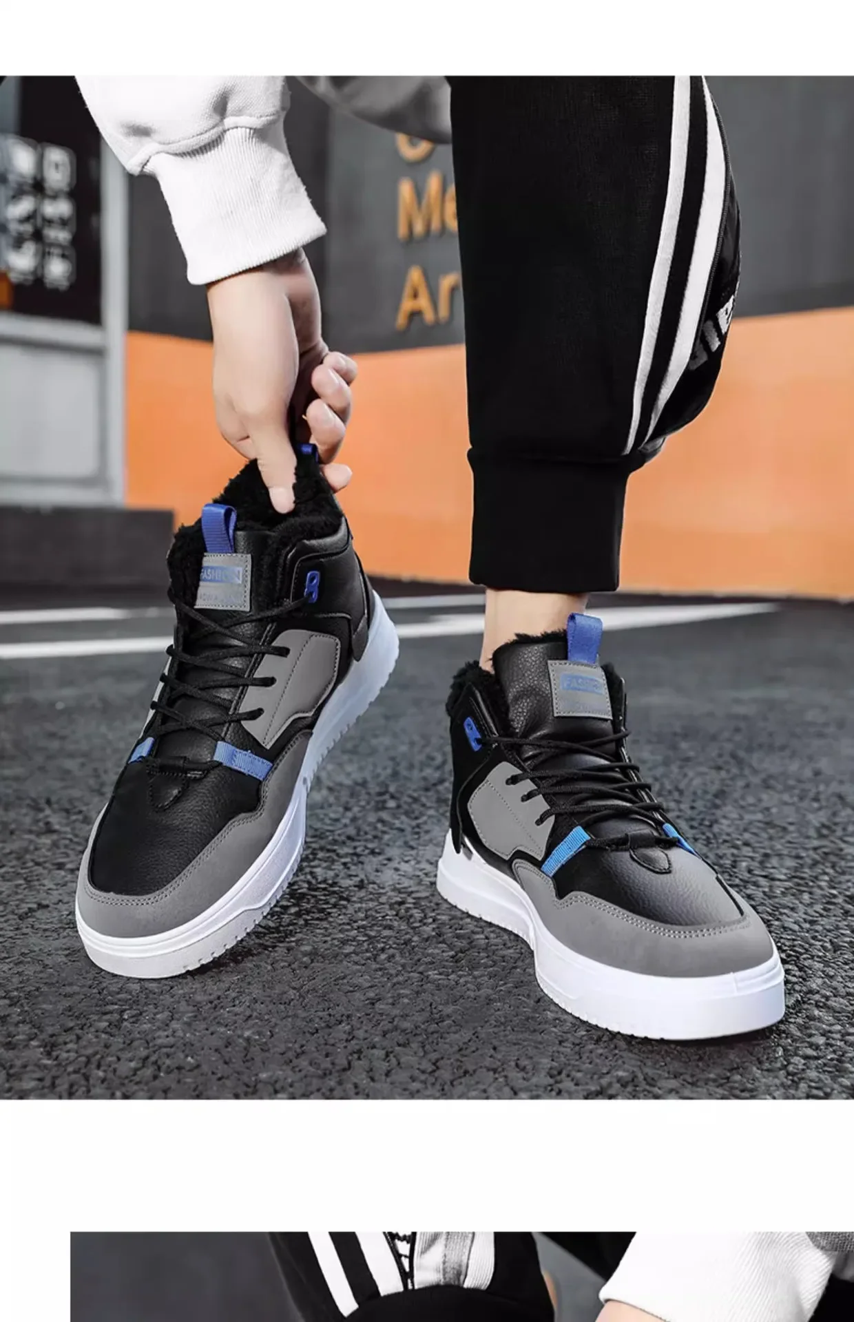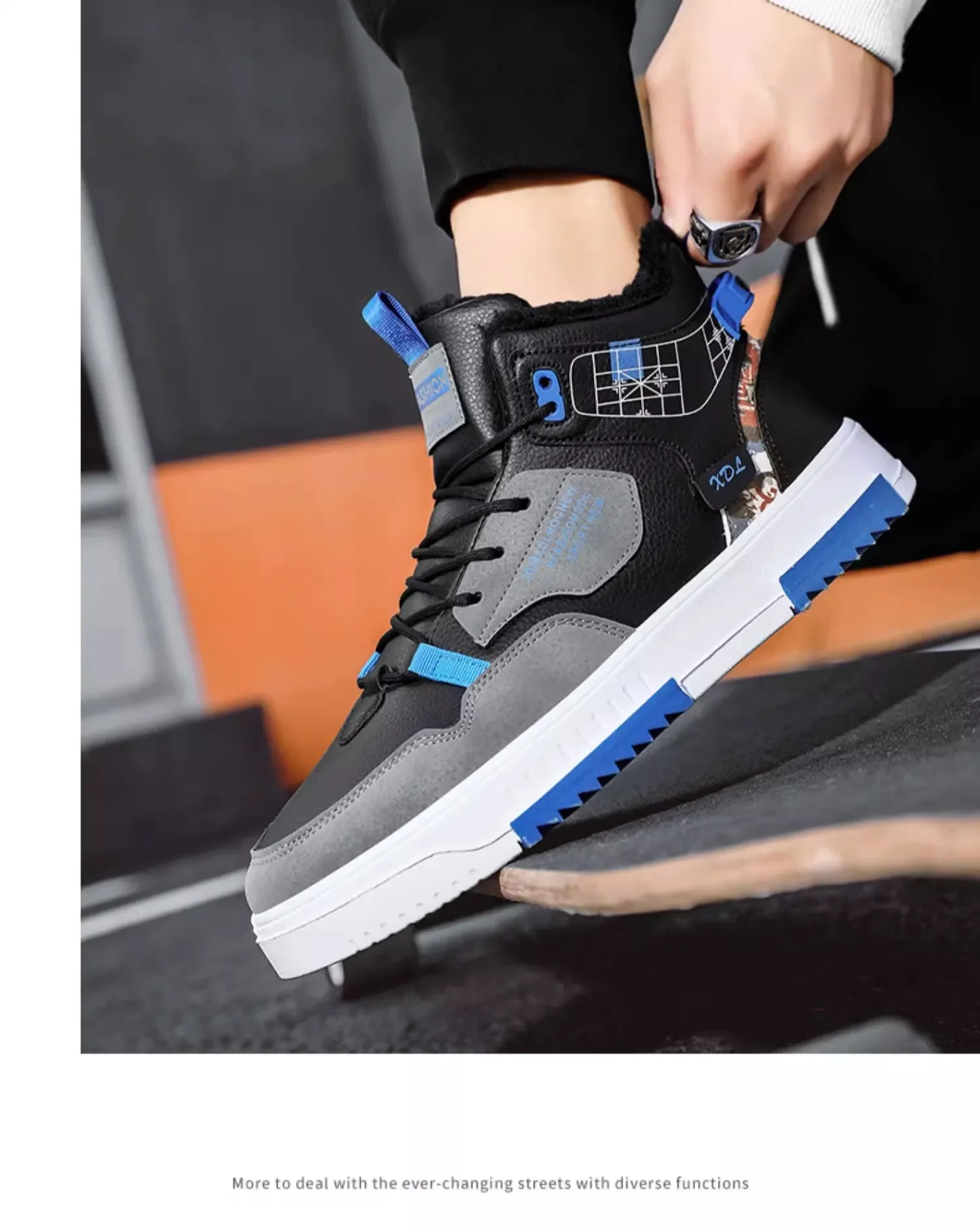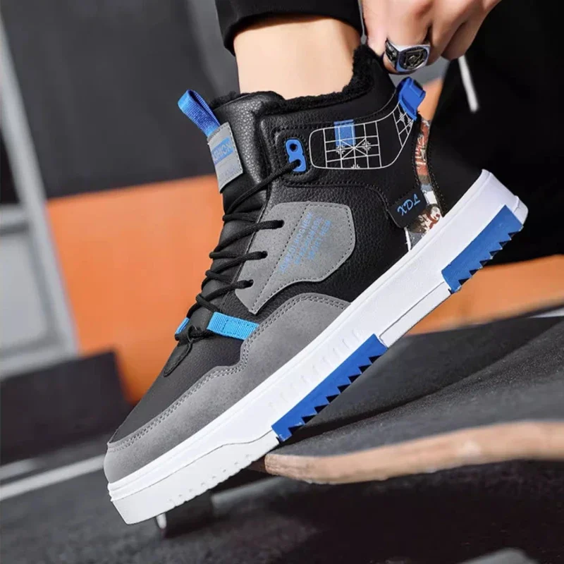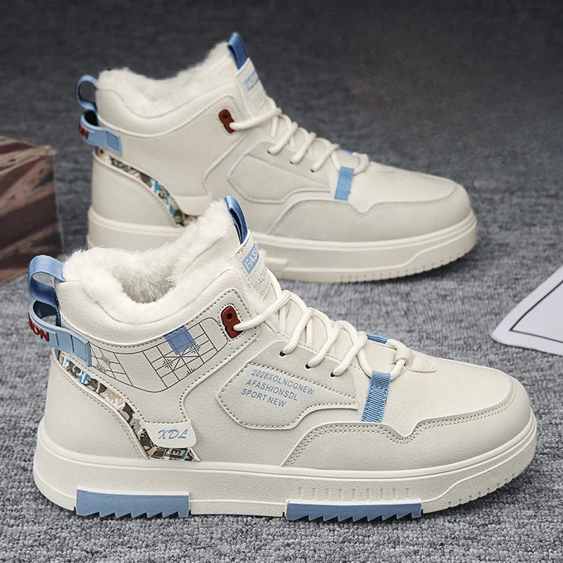 Men’s Winter Fleece Warm Snow Boots for Men High Top Thick Bottom Non-slip Casual Shoes Outdoor Warm Men’s Cotton Shoes Sneakers