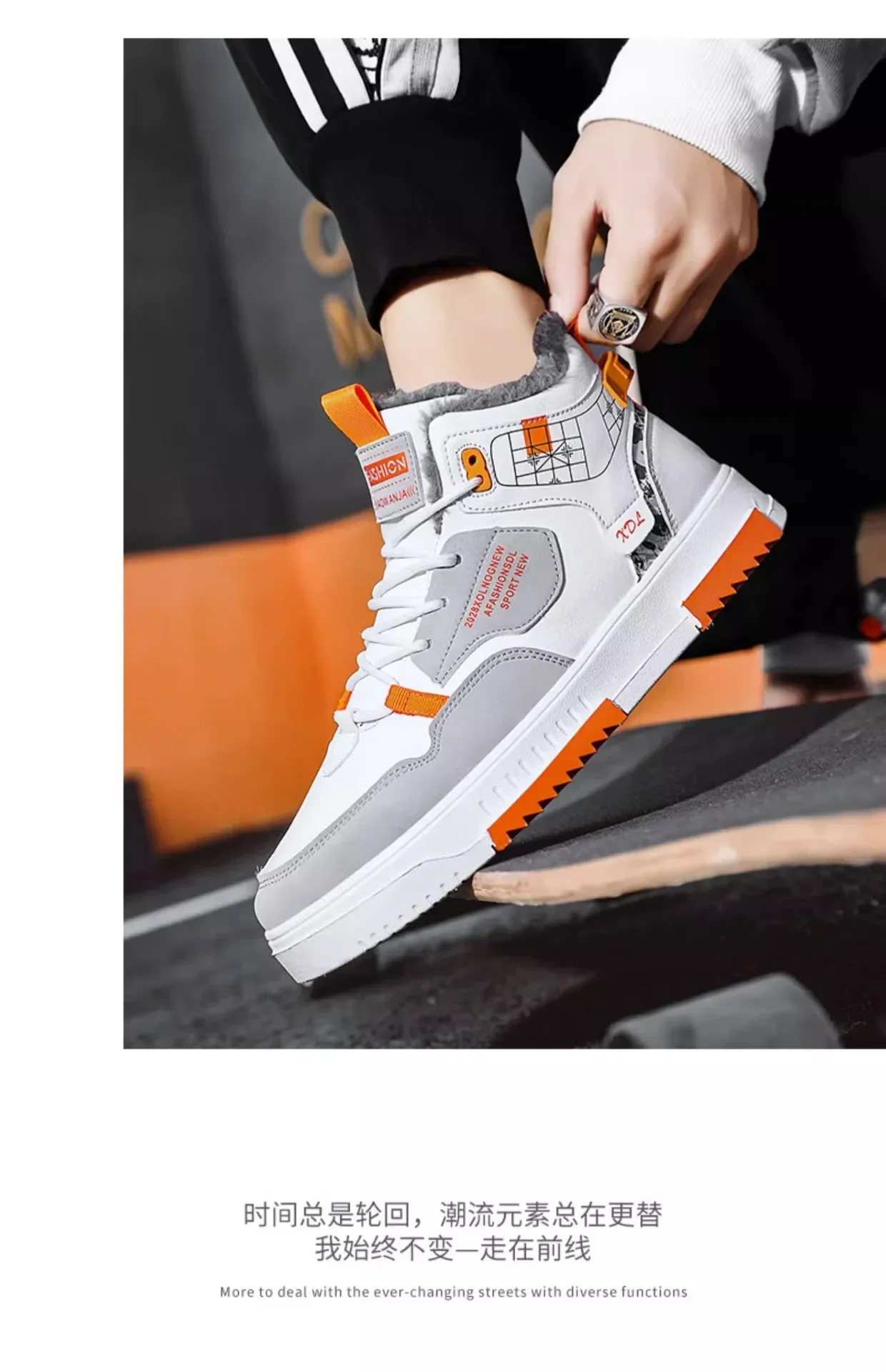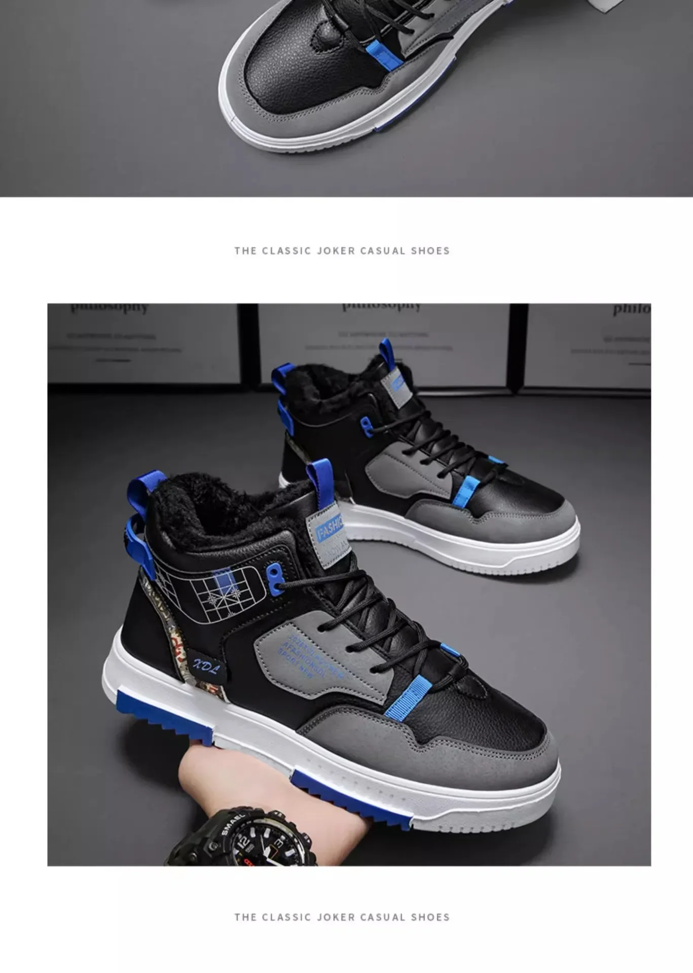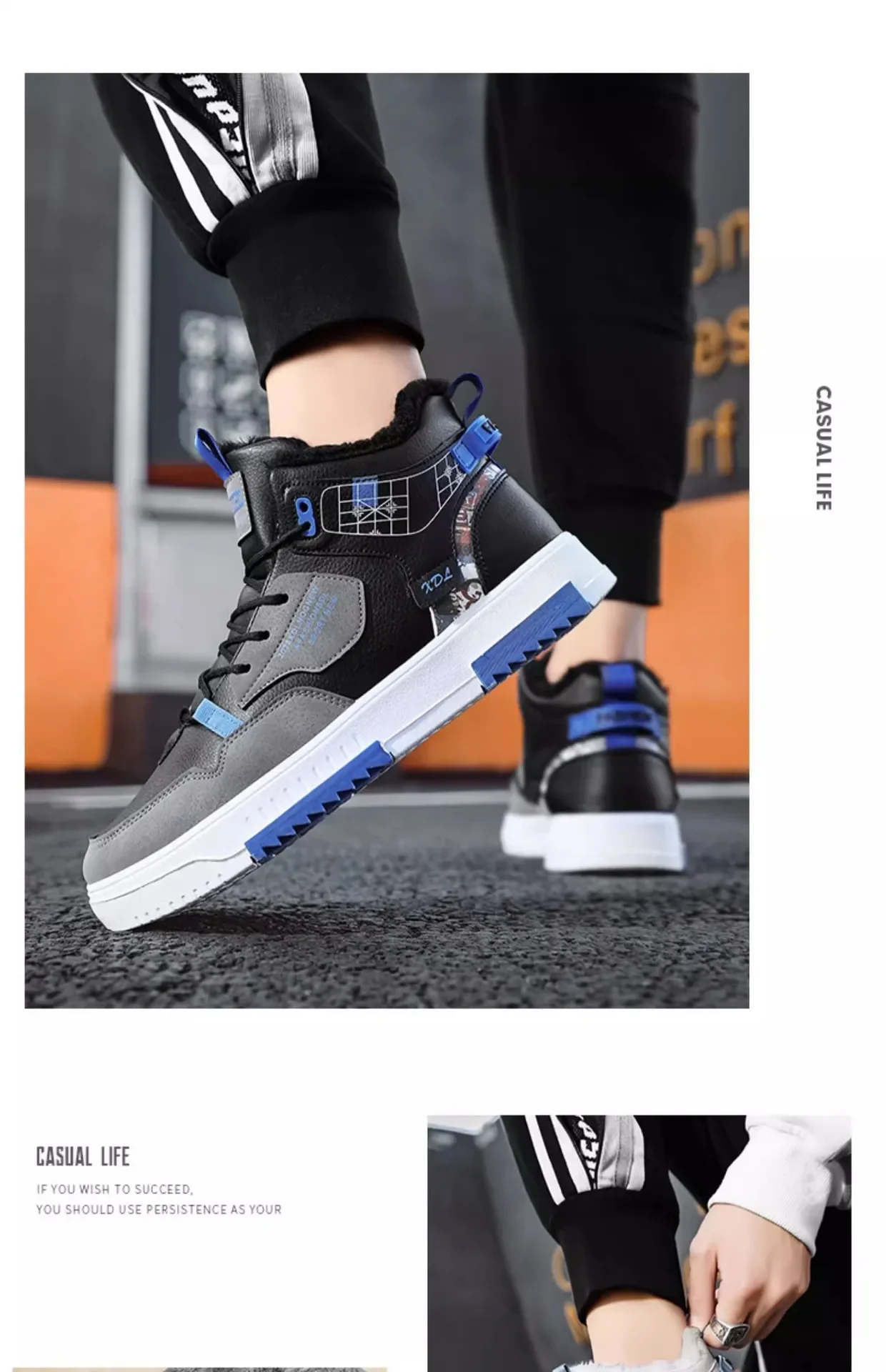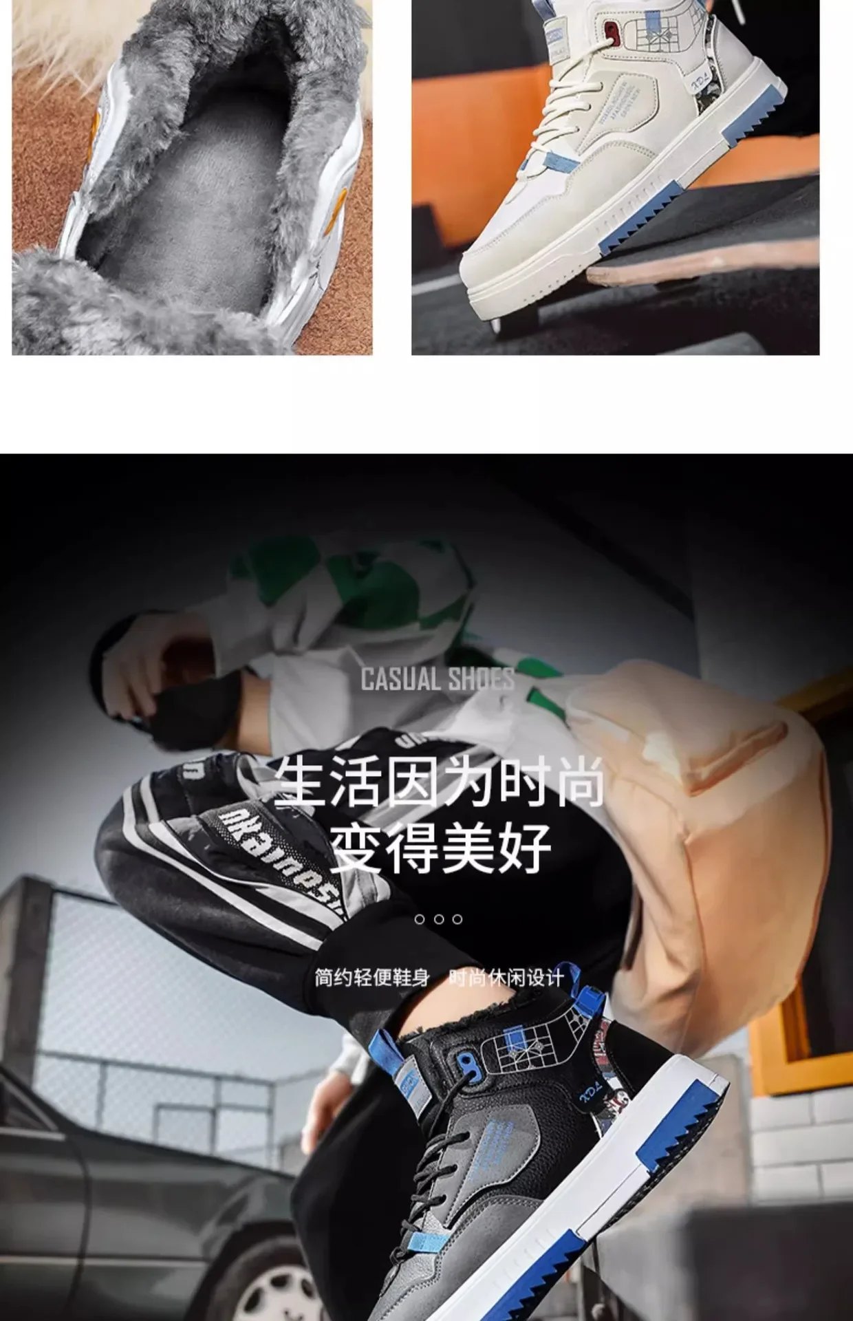 Men’s Winter Fleece Warm Snow Boots for Men High Top Thick Bottom Non-slip Casual Shoes Outdoor Warm Men’s Cotton Shoes Sneakers