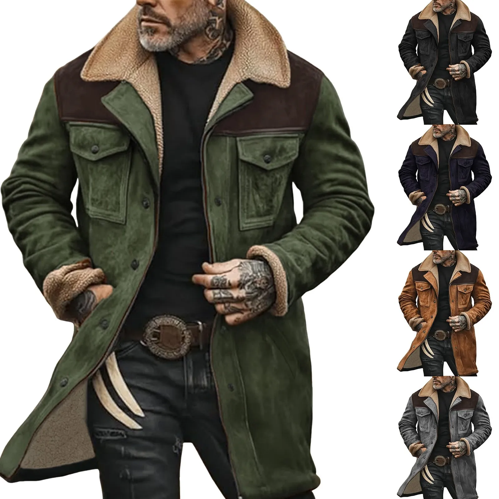Men’S Winter Jacket 2024 Medium Long Leisure Suede Color Blocked Cotton Jacket With Multiple Pockets And Zippered Retro Coats
