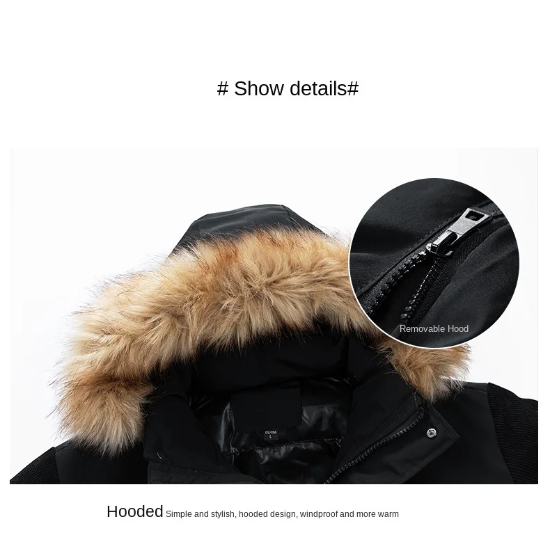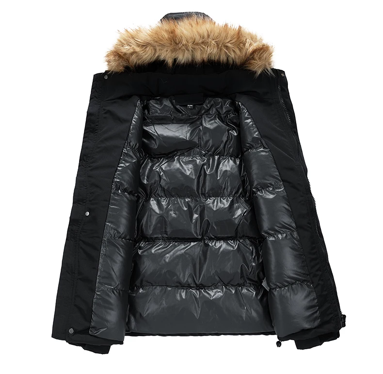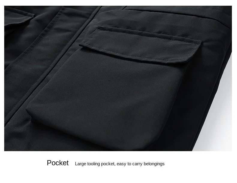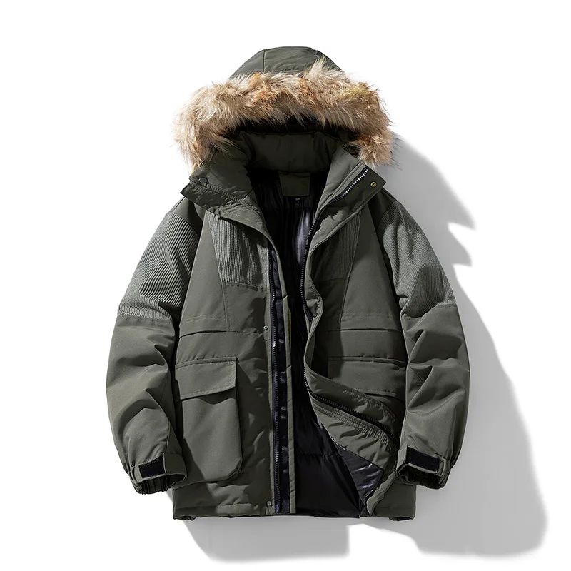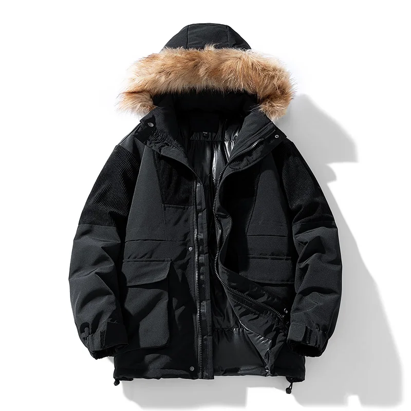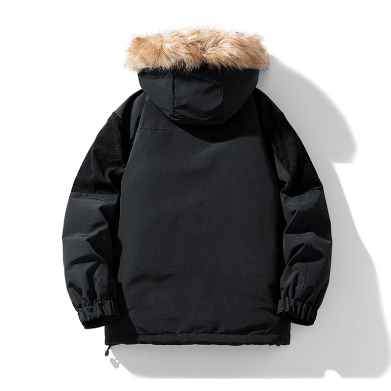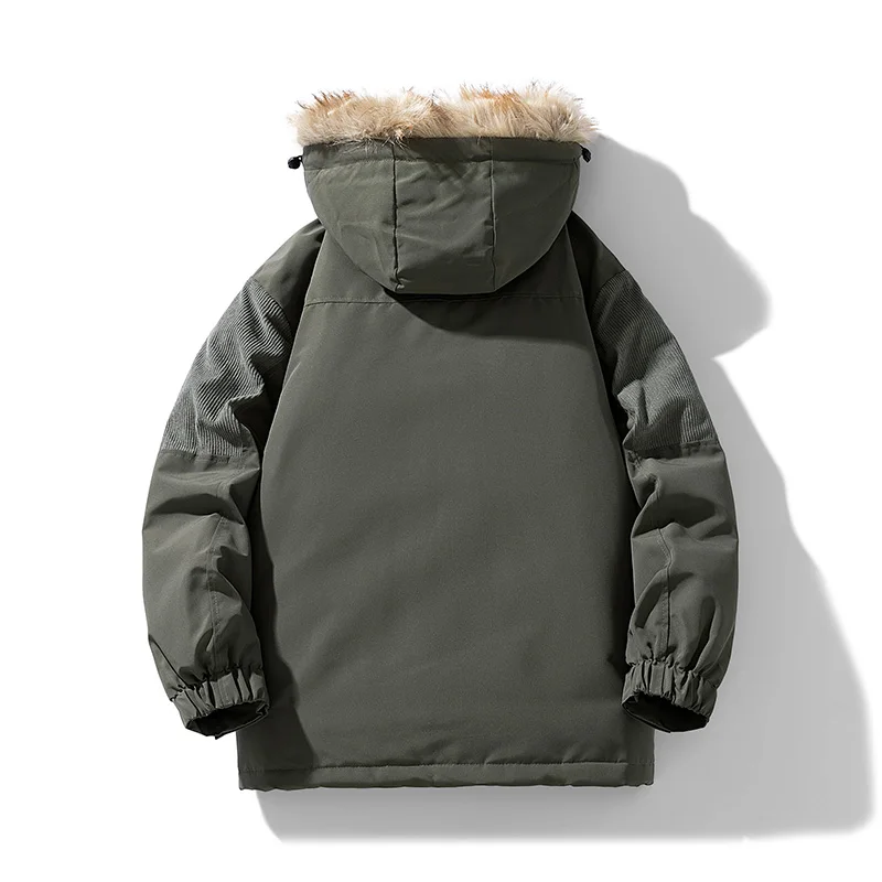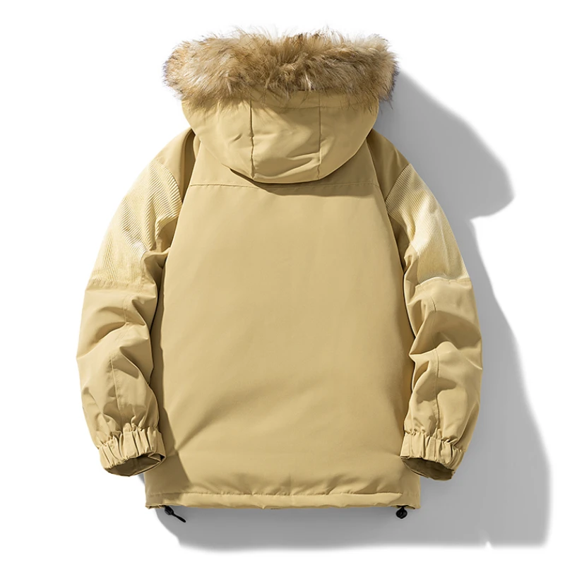 Men’s Winter padded Clothing New Solid Color Multi-pocket Thickened Warm Camping Hooded Fur Collar Coat Men’s Windproof Jacket
