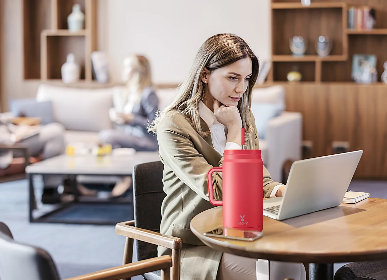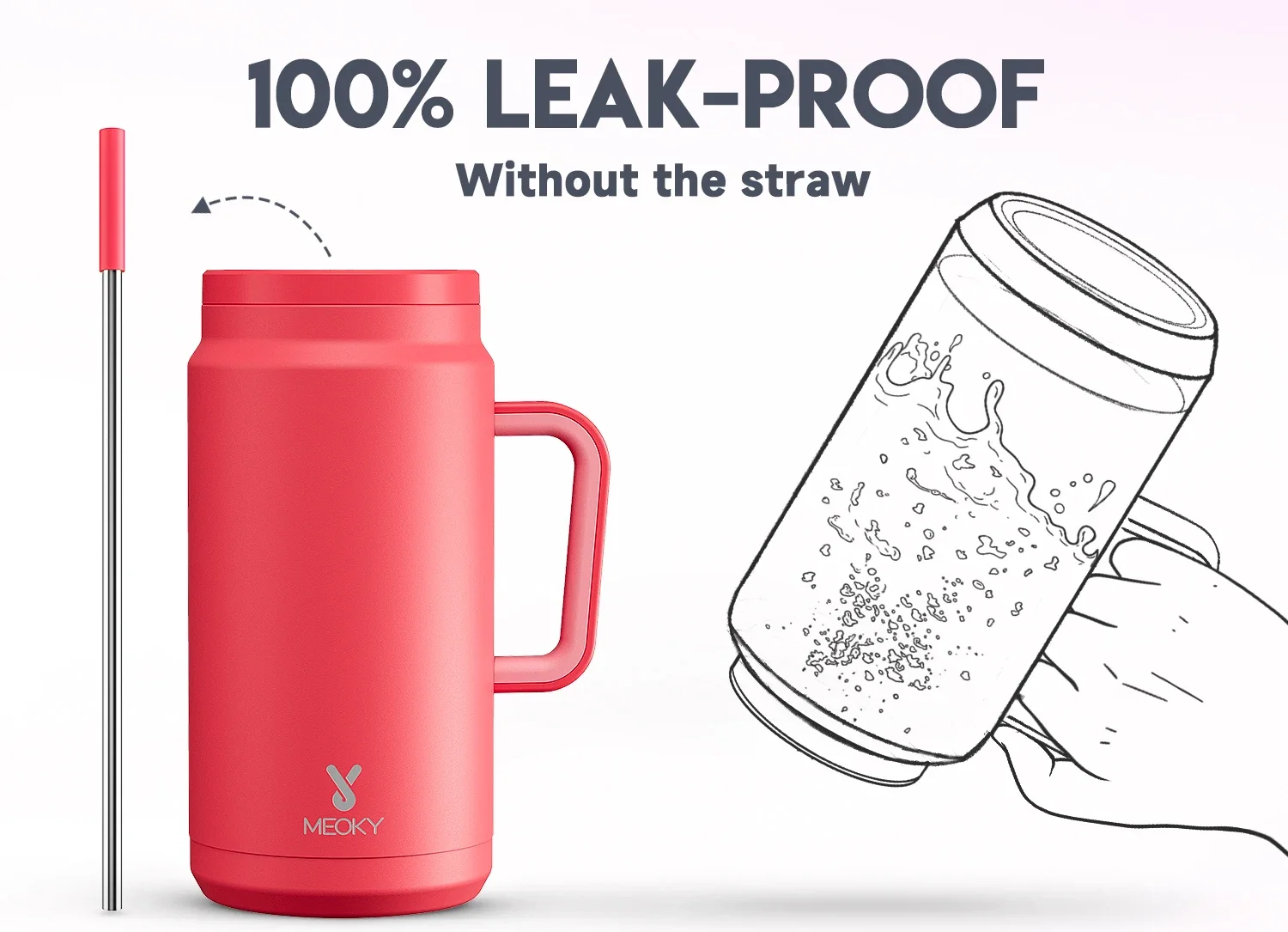 Meoky 50oz Tumbler Handle Straw Insulated Water Bottle Multi-prints Stainless Steel Leak-proof Large Capacity Travel Vacuum Cup