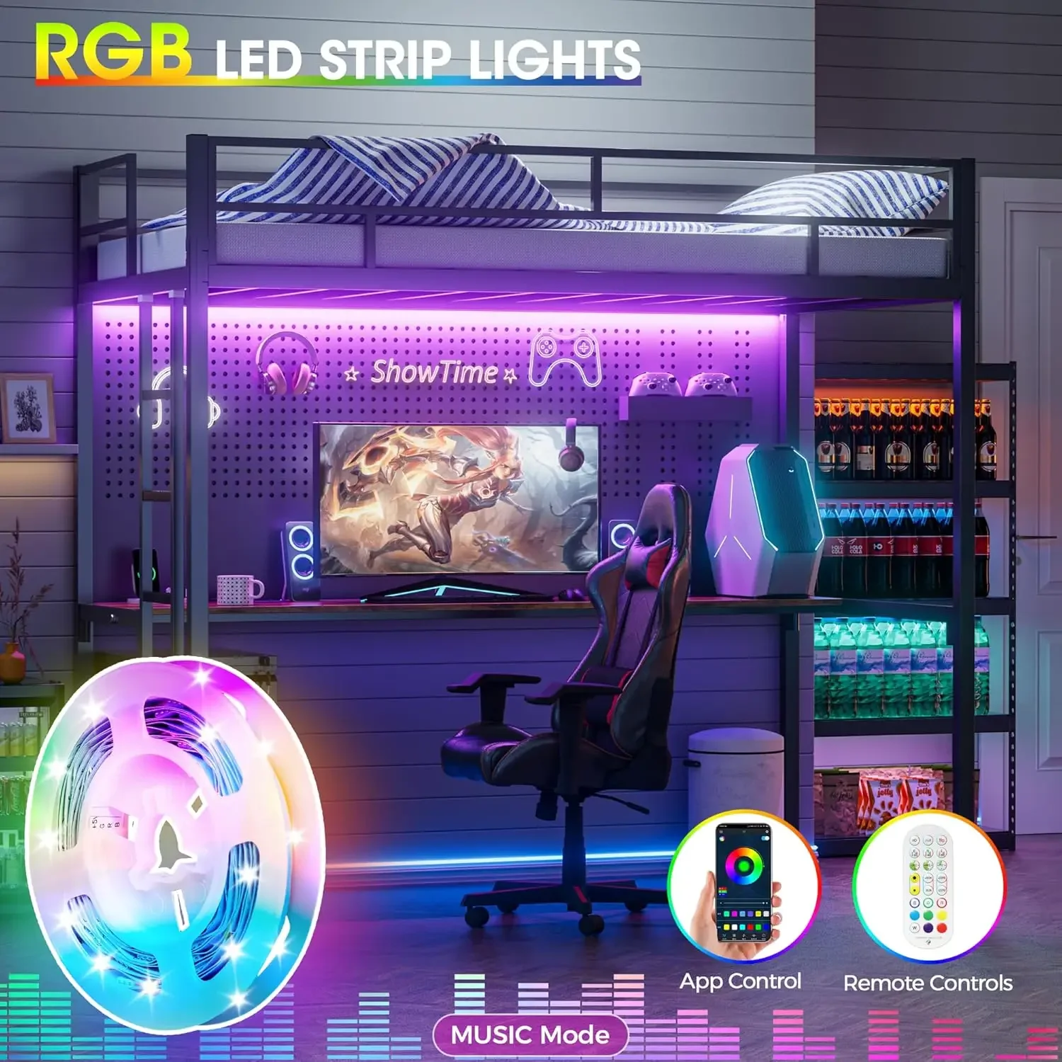 - 【Space-Saving】:loft bed twin size with 75″ desk uses a modern design,The twin loft bed with long wooden desk is sturdy, we have set up electrical outlet to power your appliances, loft bed twin size is convenient for you to arrange your own space.Besides RGB light strips can be adjusted according to your preferences.