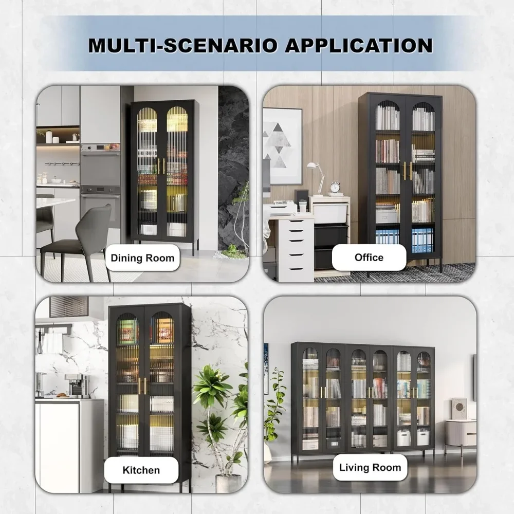 - 【Multi-scenario Application】this steel storage cabinet can be used as a storage cabinet to organize curio, books, or art in the living room. It can also be used as glass decorative cabinets, bookshelves, media cabinets, utility cabinets, etc in offices, bathrooms, kitchens, and bedrooms for the organization of your belongings, to create a modern stylish feeling in your room.