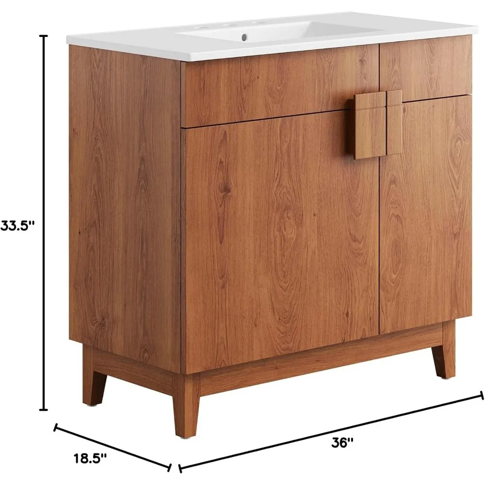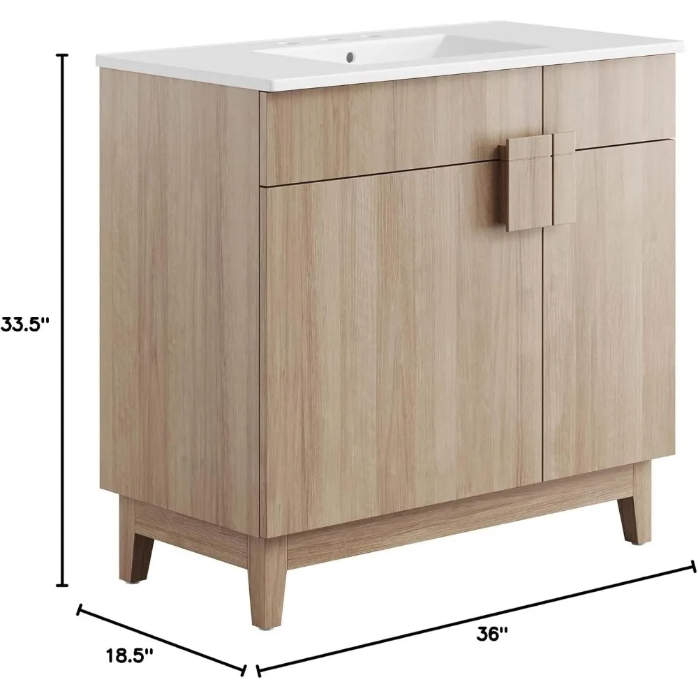 - ELEGANT SINK DESIGN – The Miles Bathroom Vanity includes a curved ceramic basin sink with an integrated countertop and 8-inch centerset faucet holes, boasting a sophisticated style