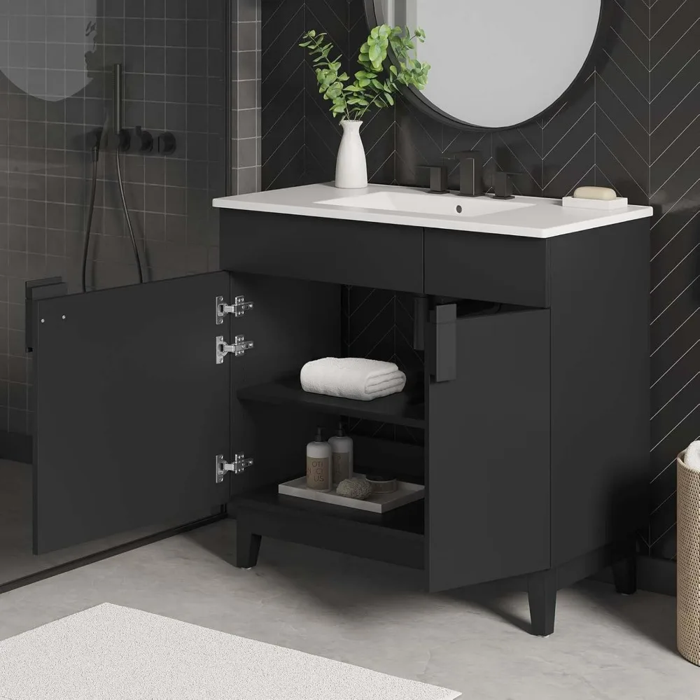 - CONTEMPORARY BATHROOM CHIC – Elevate your bathroom’s charm with the sleek, clean-lined design and sophisticated finish of the Miles Bathroom Vanity, effortlessly infusing modern style into your space