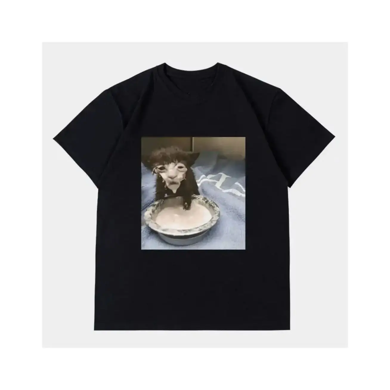 Milk Face Cat Meme Print T Shirt Weird Humor Funny Cat Graphic T-Shirts Men’s Women Fashion Cotton Oversized Streetwear 77899