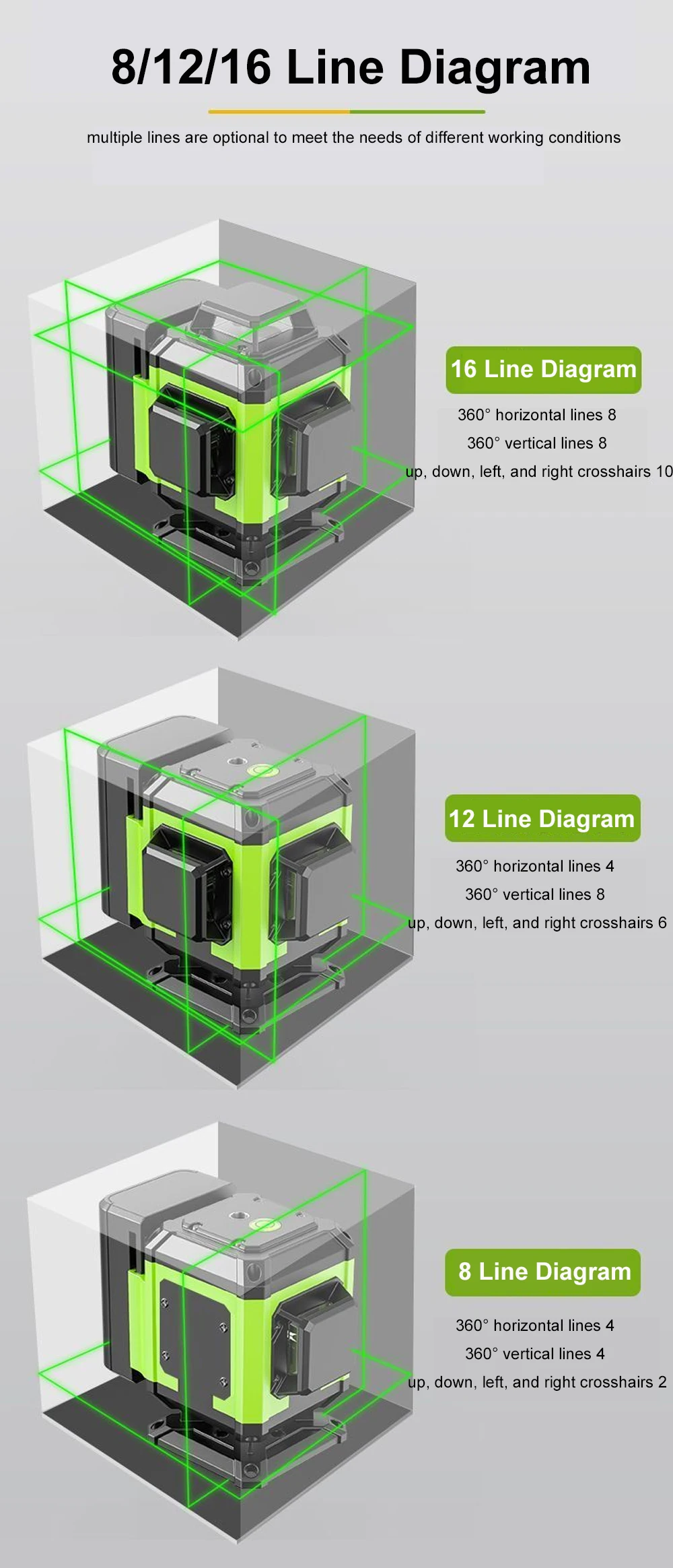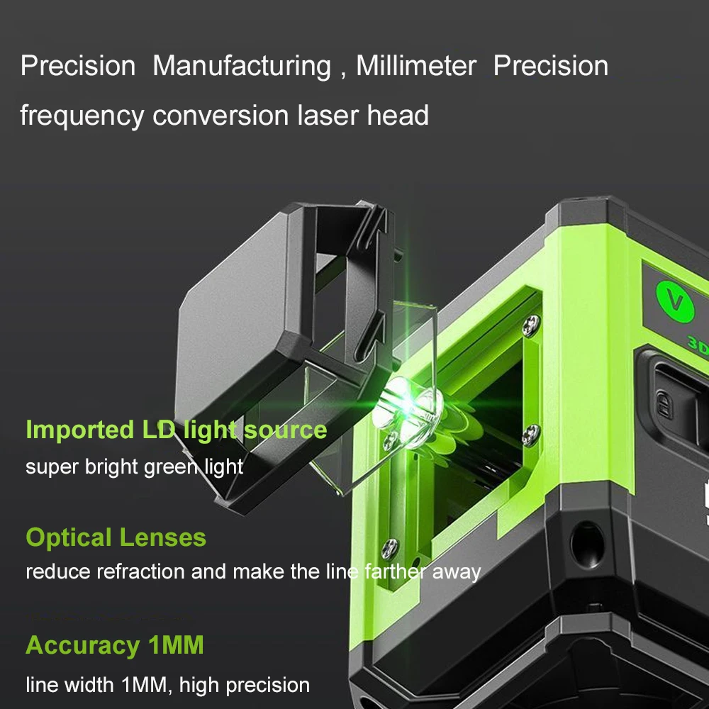 Mini 12 Lines 3D Laser Level 360 Self-Leveling Green Lines Horizontal and Vertical Super Powerful 16 Line Laser Level