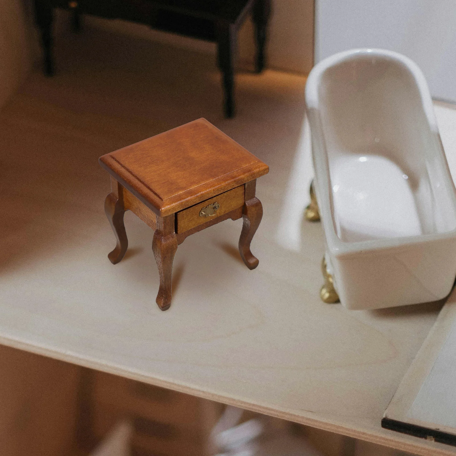 Mini House Coffee Table Bedside Wooden Dollhouse Furniture Small Miniature End
