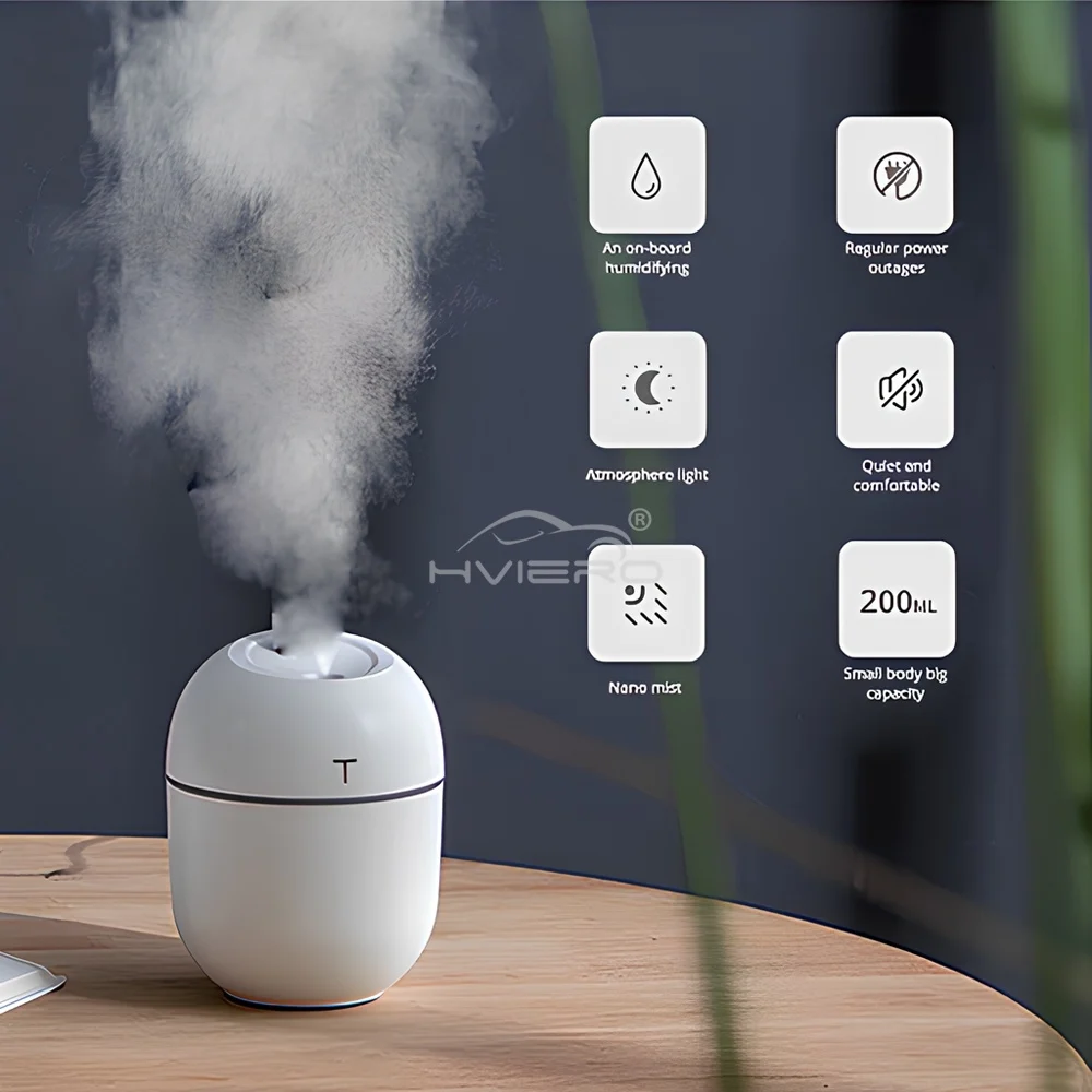 Mini Ultrasonic Air Humidifier 200ML USB Charge Diffuser Car Purifier Aromatherapy Anion Mist Maker Dense Fog Freshener Vehicle