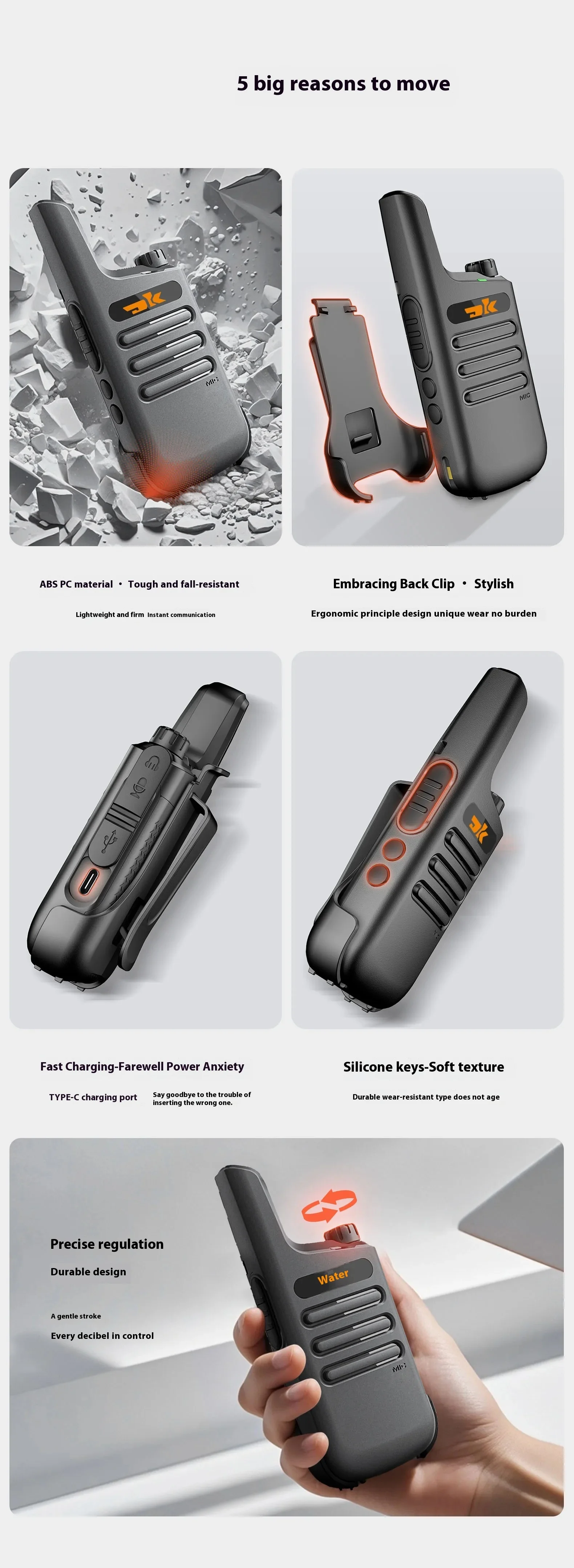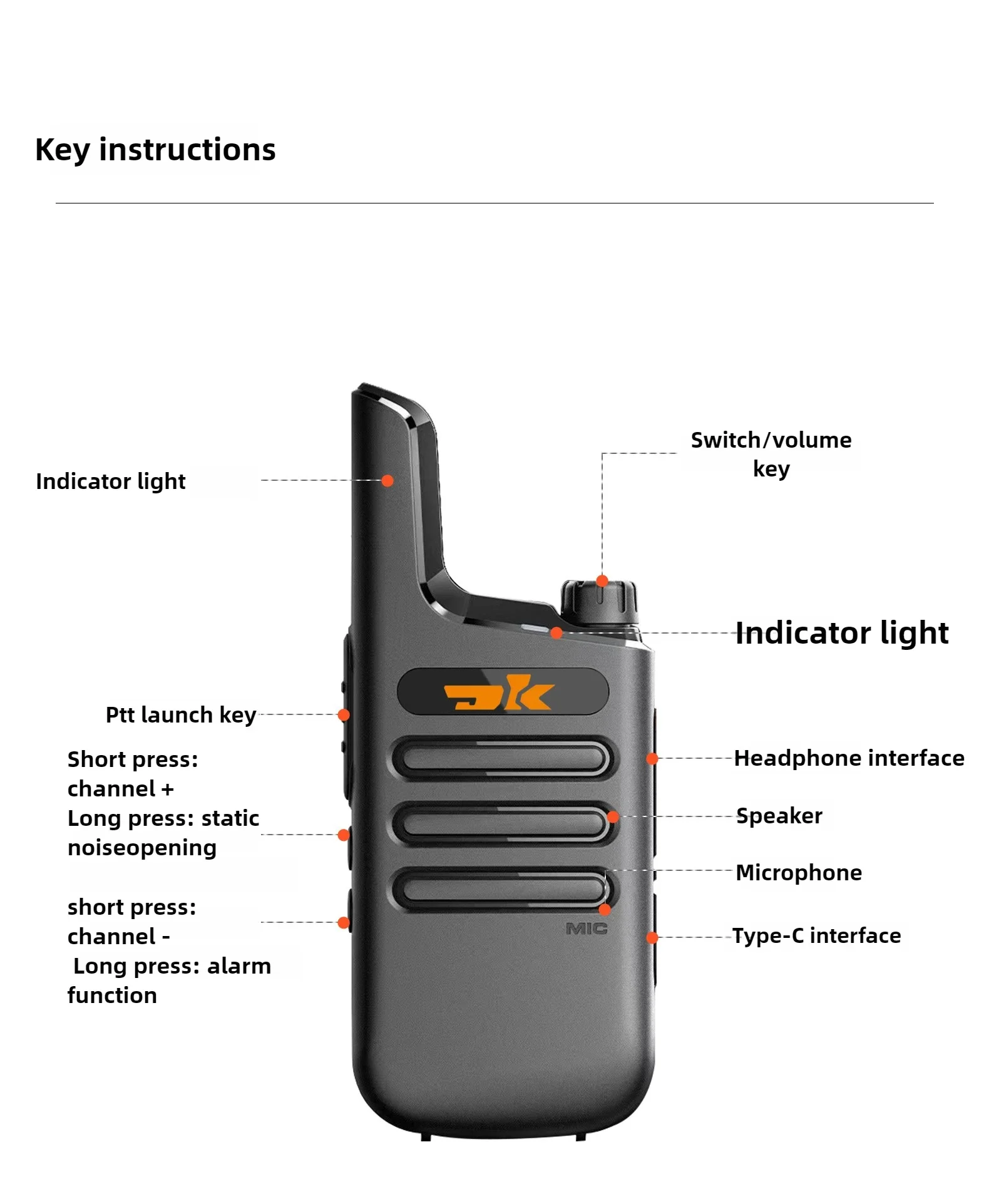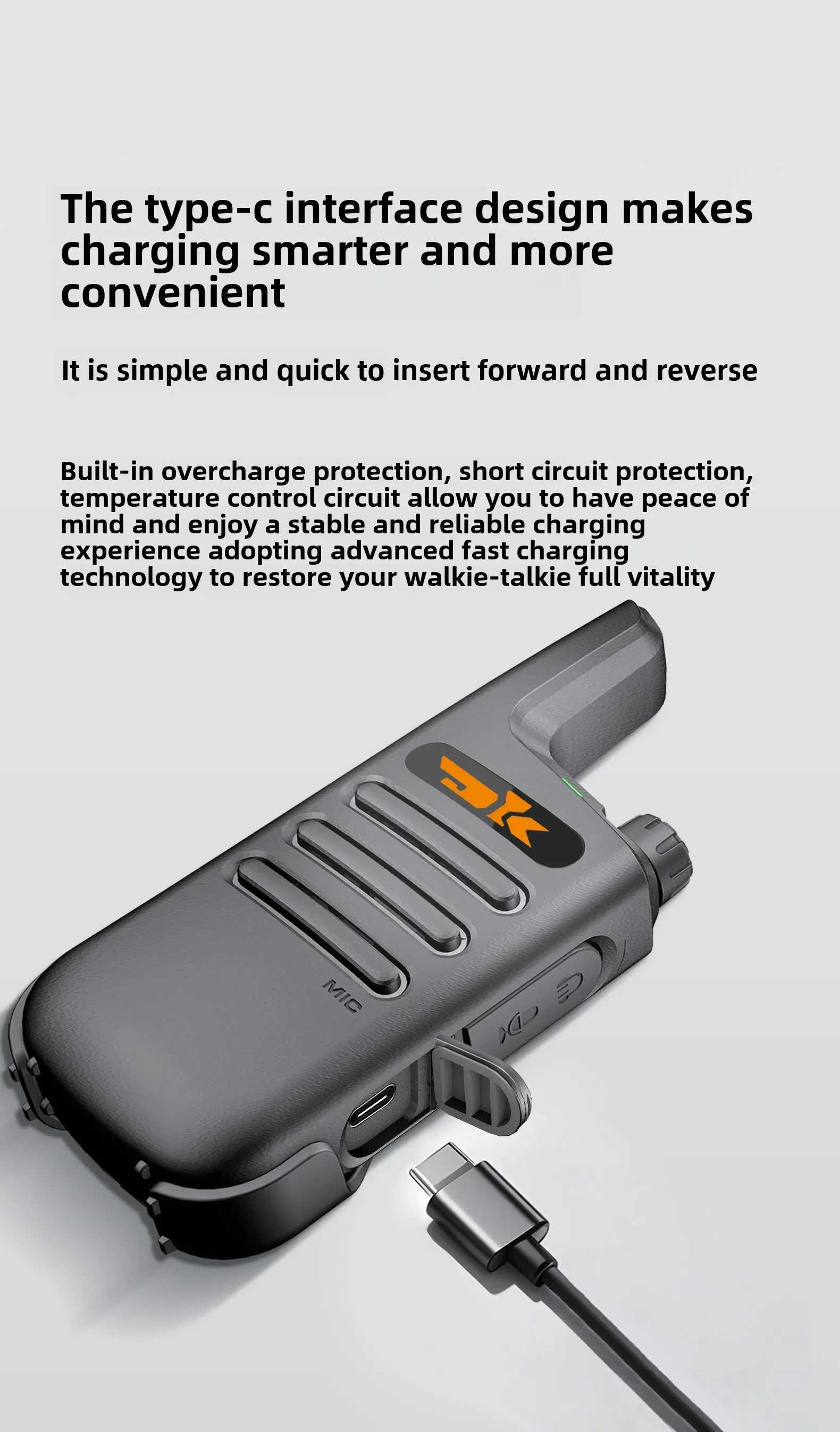 DK-F1 Mini Walkie Talkie 400-480MHz 16Channels UHF Radio Tpye-C Wireless Copy Frequency Portable Two Way Radio for Hotels Restaurants