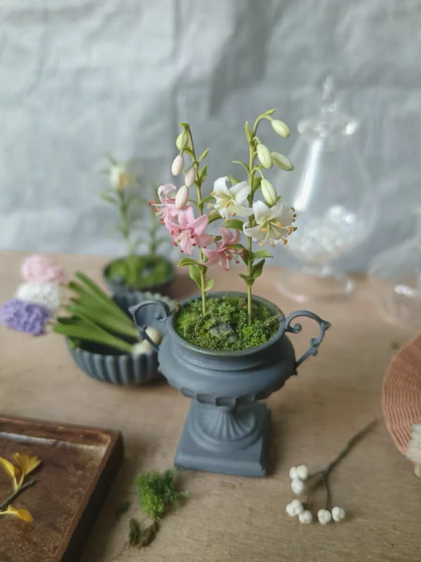 Miniature Flowers Clay Tulip Daffodil Lily Model DollHouse Garden Decoration Diy Wedding Scene Photography Background Decoration