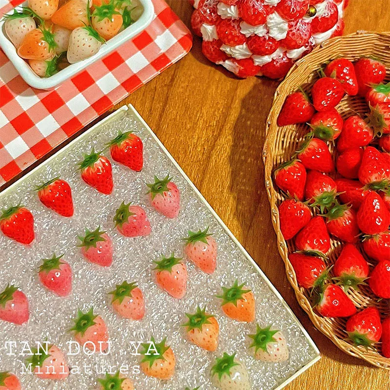 Miniature toy Clay strawberries miniature fruits for DIY 1:6 1:12 bjd ob11 blythe dollhouse props Dolls accessories