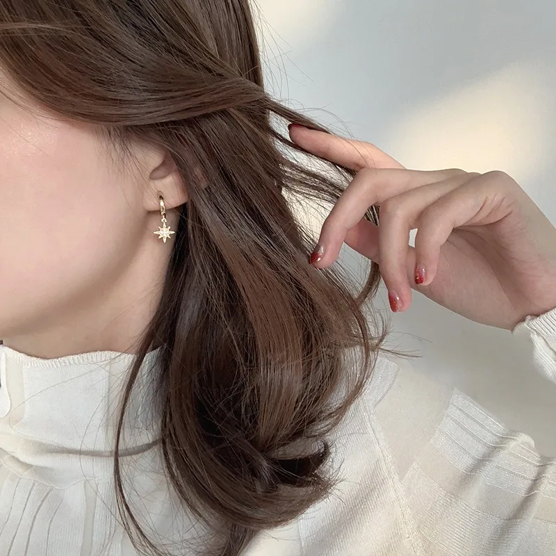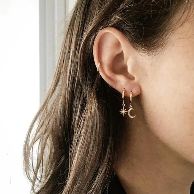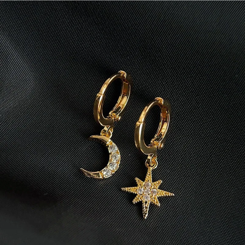 Minimalist Crystal Zirconia Stars Moon Huggie Hoop Earrings For Women Trendy Stainless Steel Circle Earrings Punk Rock Jewelry