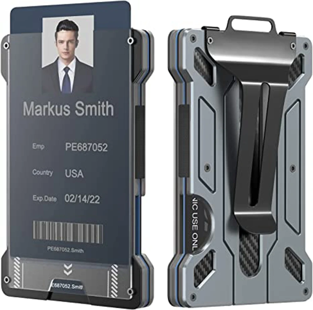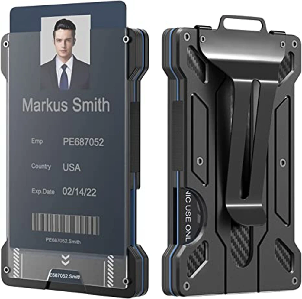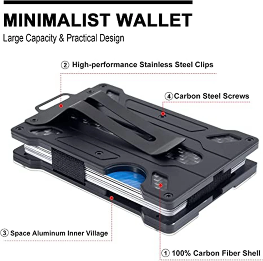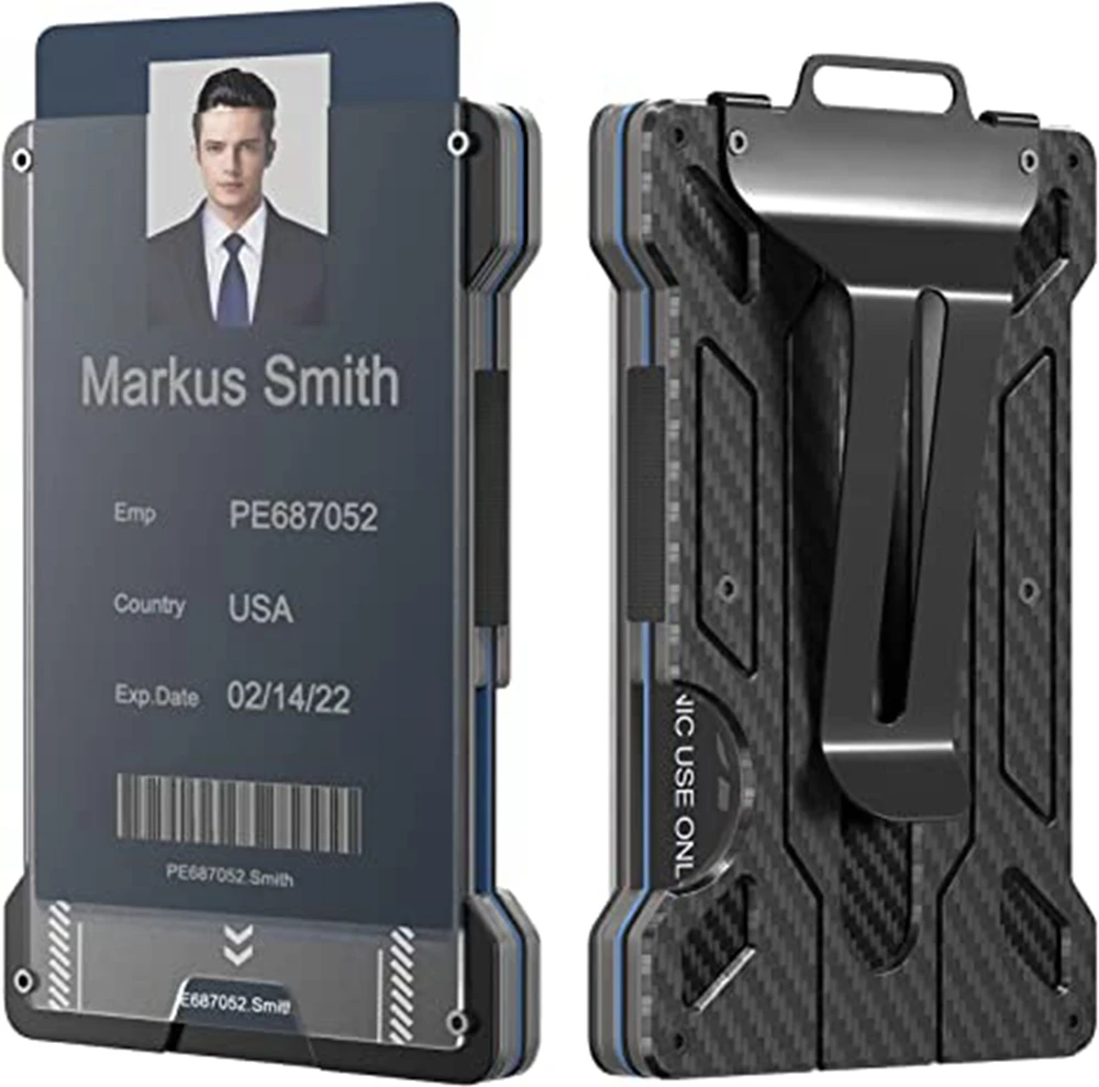 Minimalist Wallet for Men-Aluminum Credit Card Wallet Clip with 1 Clear Window ID Badge Holder,RFID Blocking Carbon Fiber Wallet