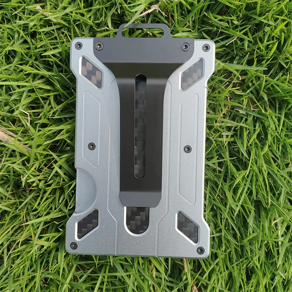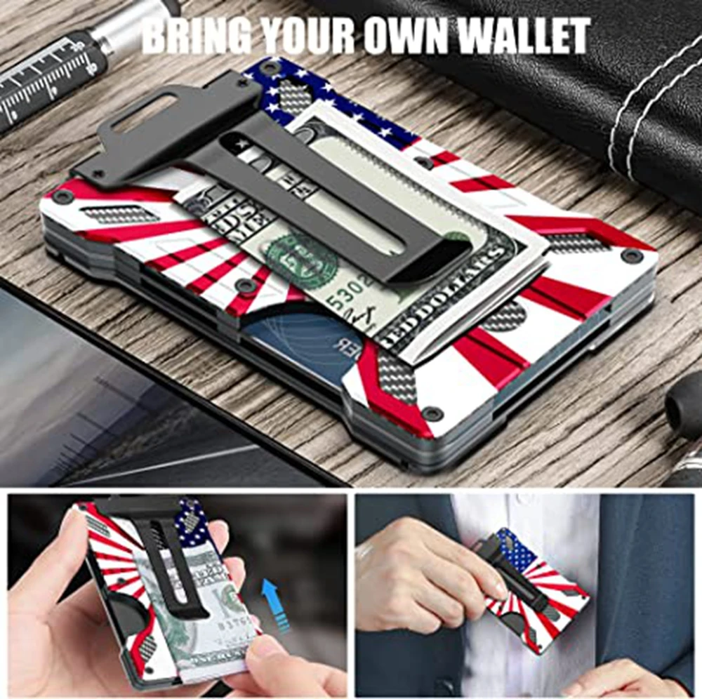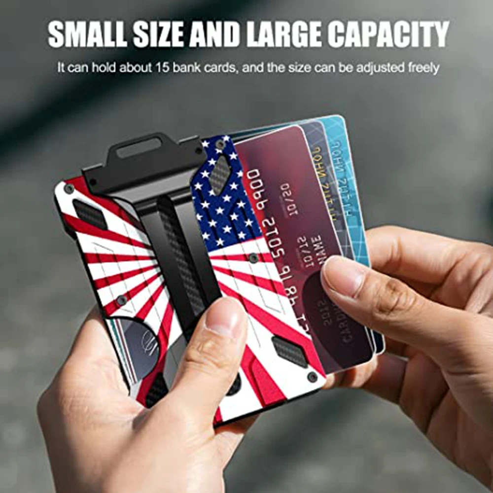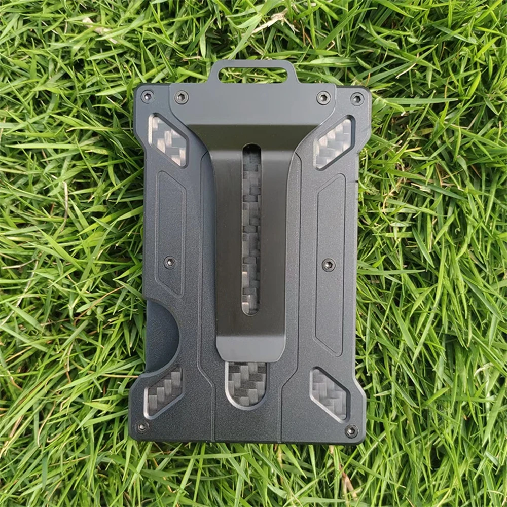 Minimalist Wallet for Men-Aluminum Credit Card Wallet Clip with 1 Clear Window ID Badge Holder,RFID Blocking Carbon Fiber Wallet