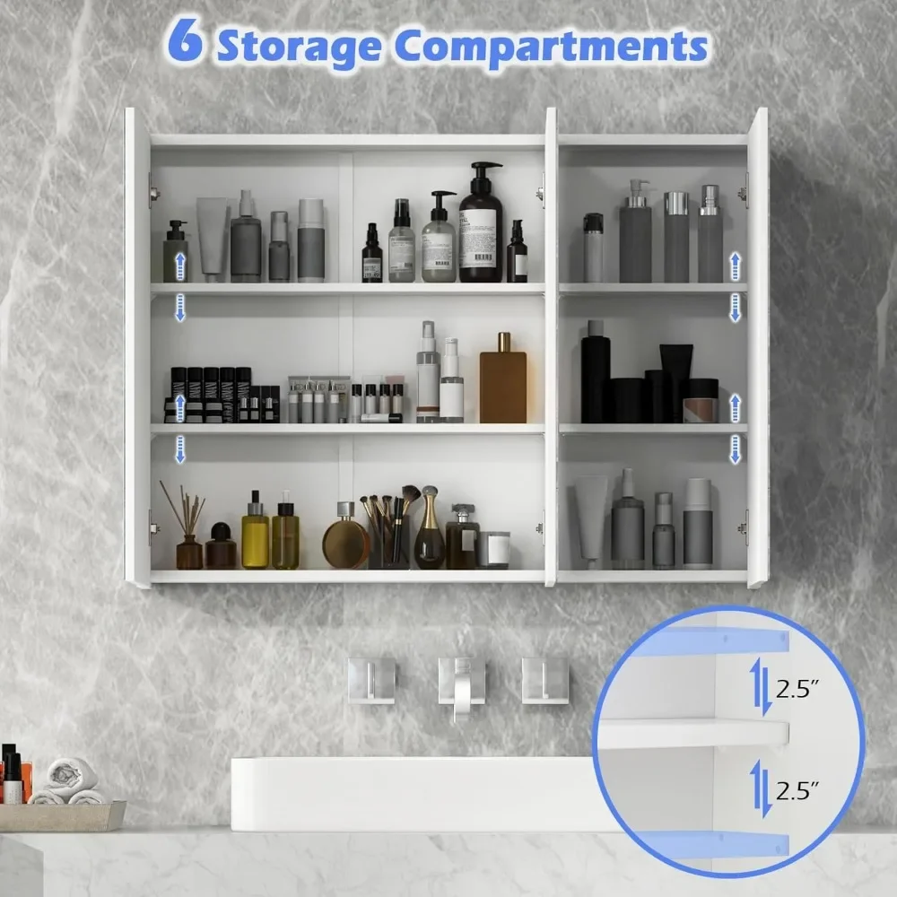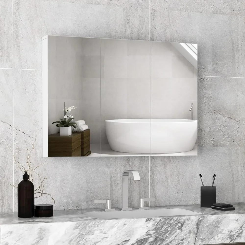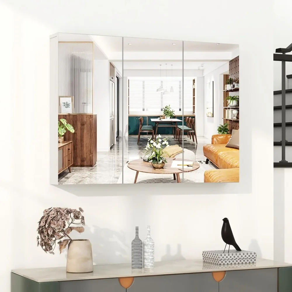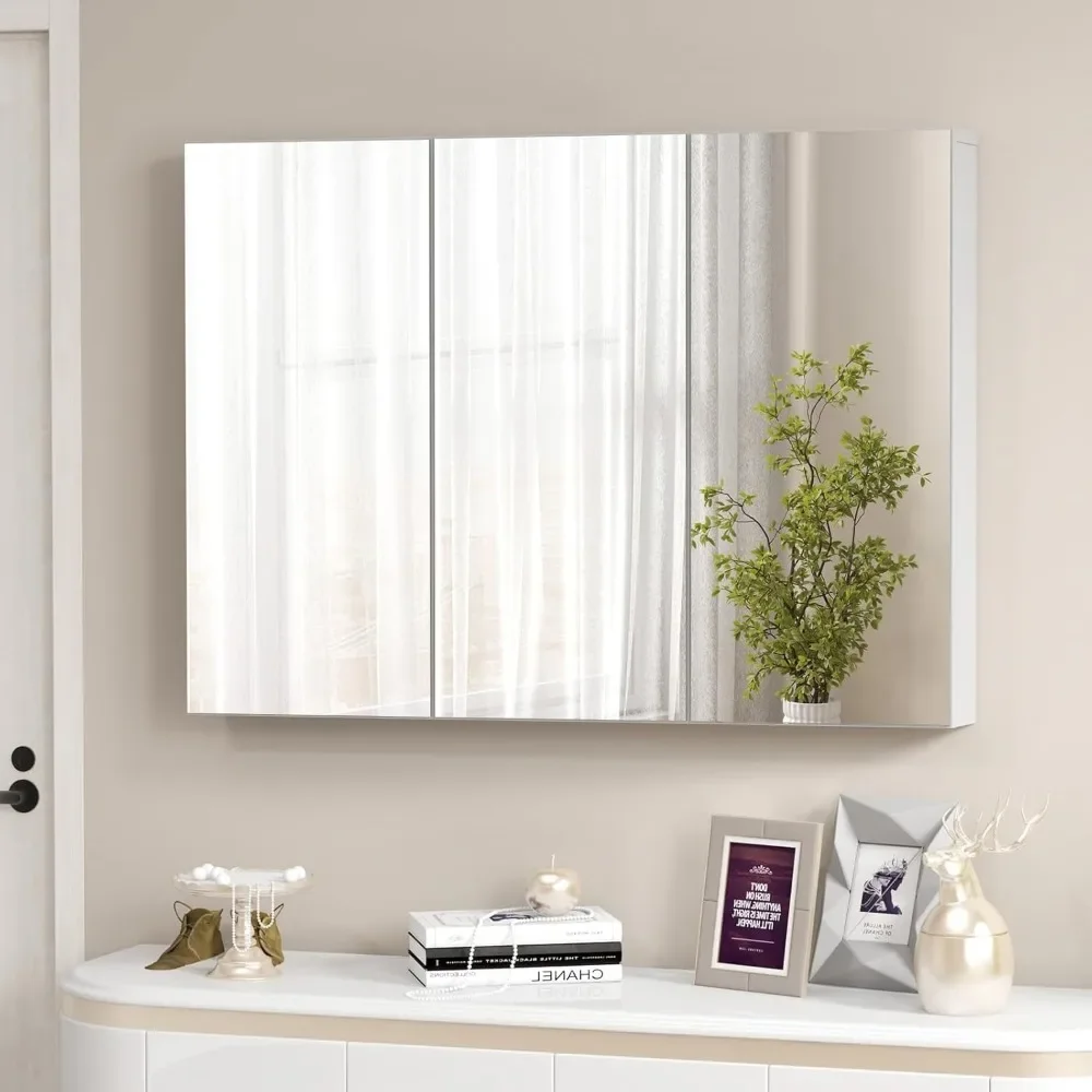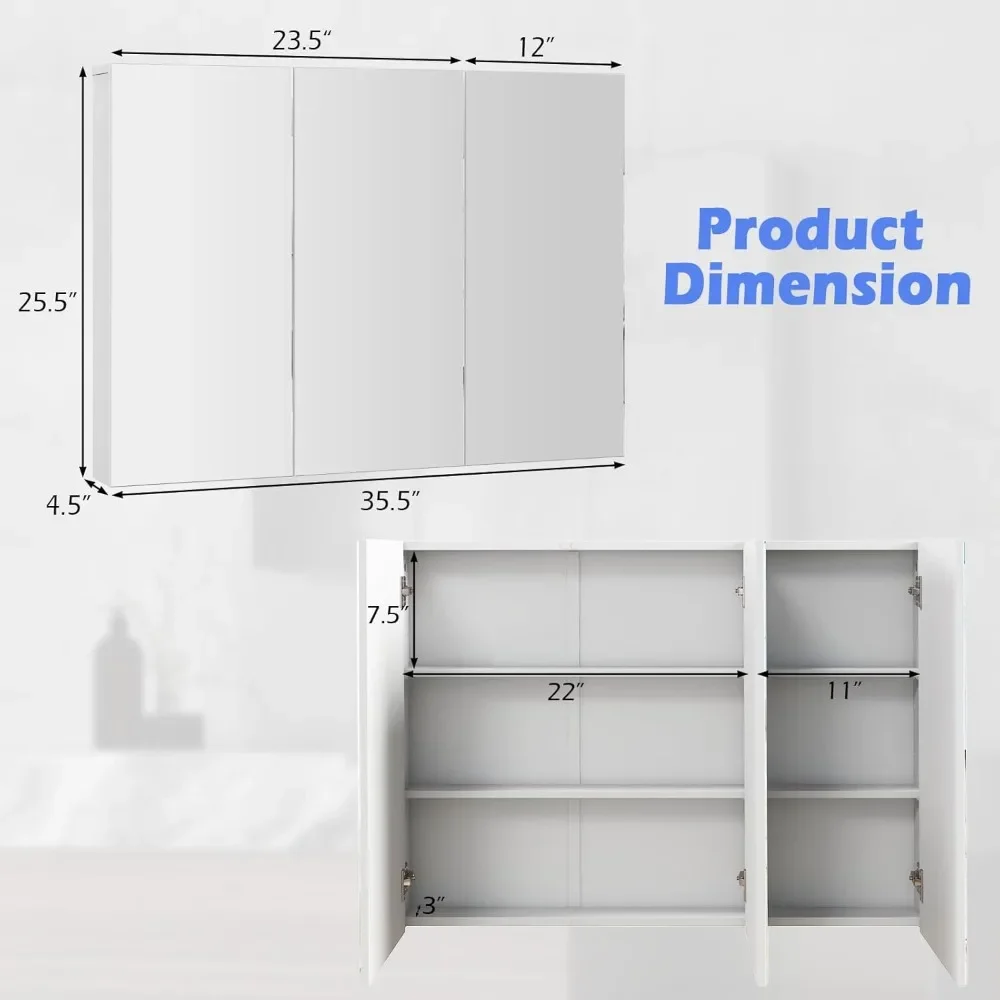 Mirrored Medicine Cabinet, Large Wide Wall Mounted Storage Cabinet with 3 Mirror Doors & Adjustable Shelf, 36 x 4.5 x 25.5 Inch