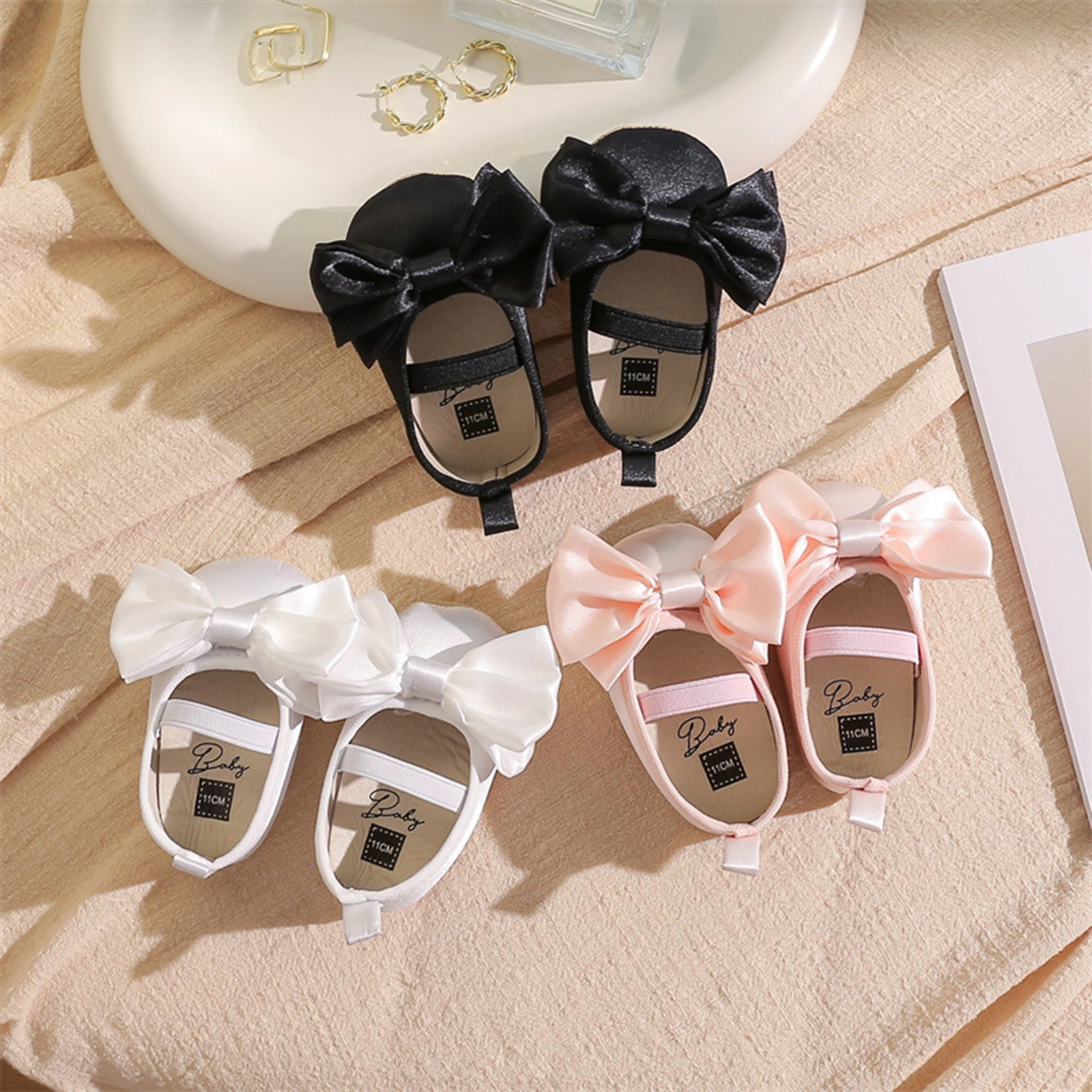 Baby Girls Princess Shoes, Elegant Bow Soft Non-slip Bottom First Walker Shoes Toddler Shoes