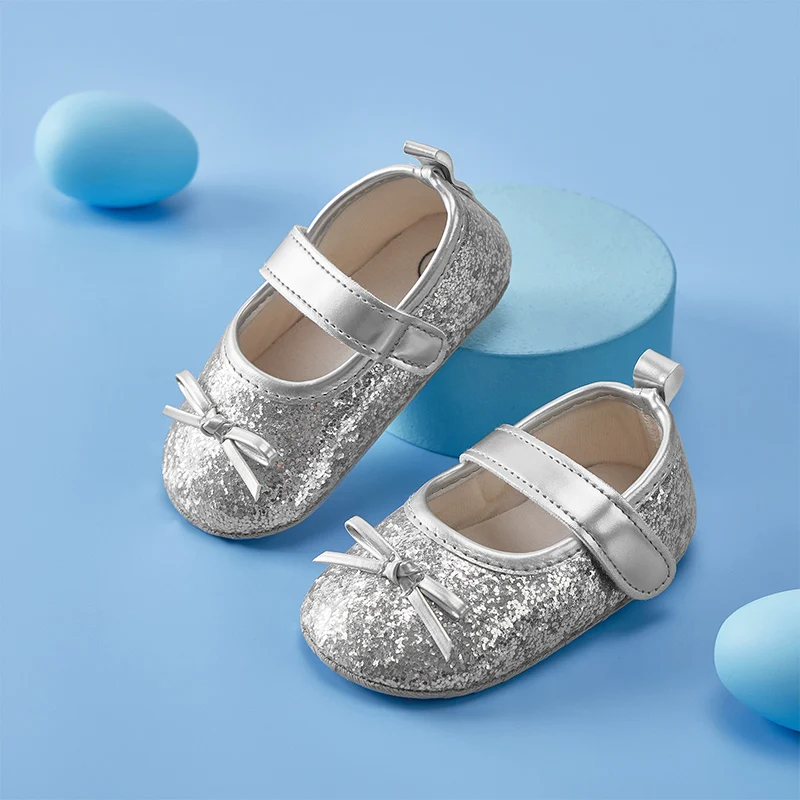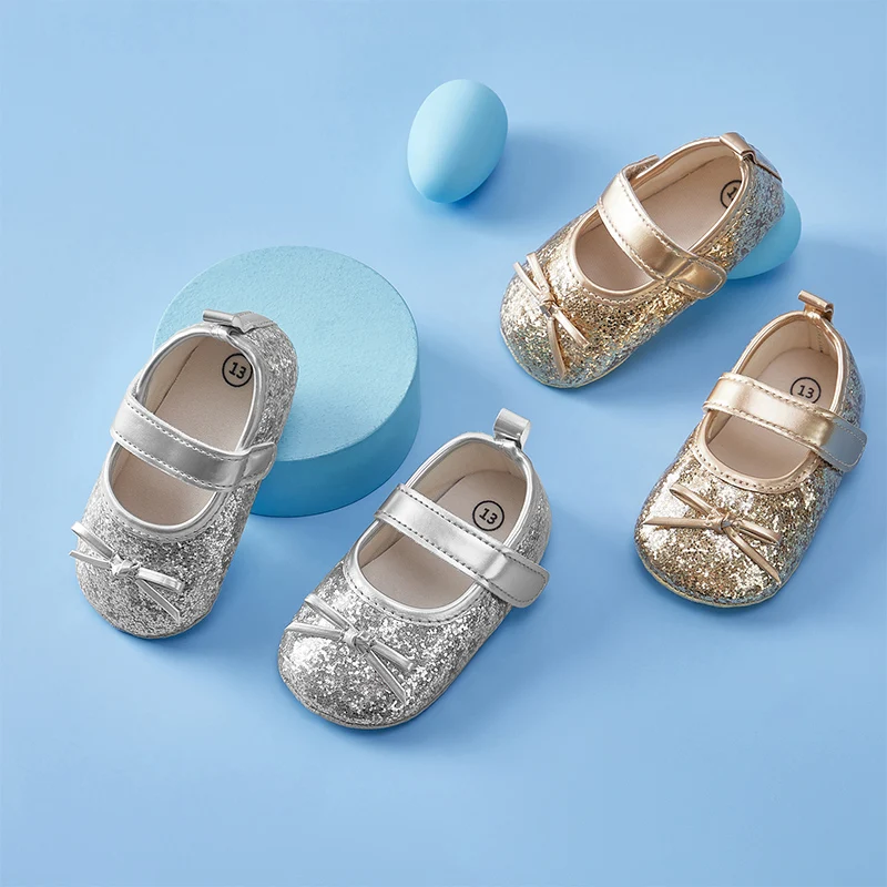MISOWMNJOY Princess Baby Girls Shoes Soft Sequined Bowknot Non-slip Bottom Infant First Walker Party Newborn Crib Shoes