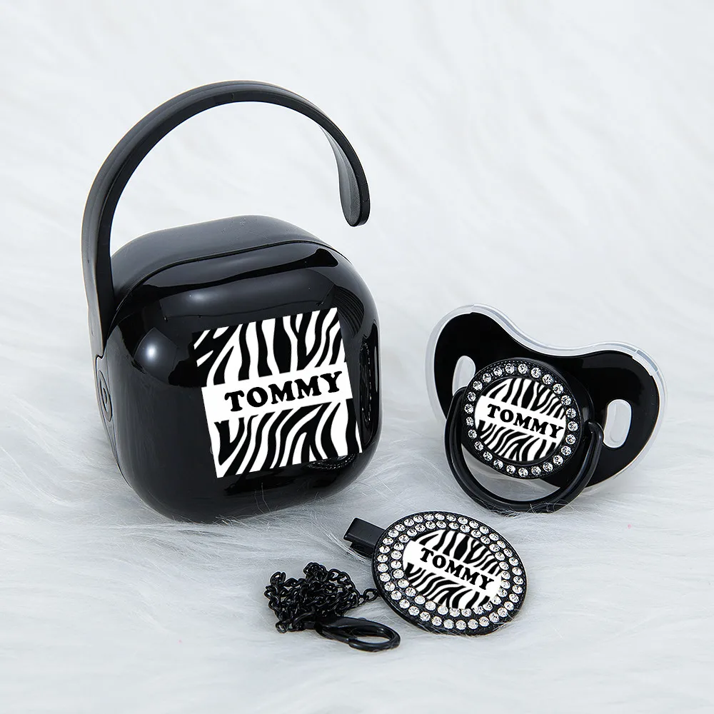MIYOCAR personalized unique black zebra bling pacifier and clip pacifier box set BPA free dummy Luxury