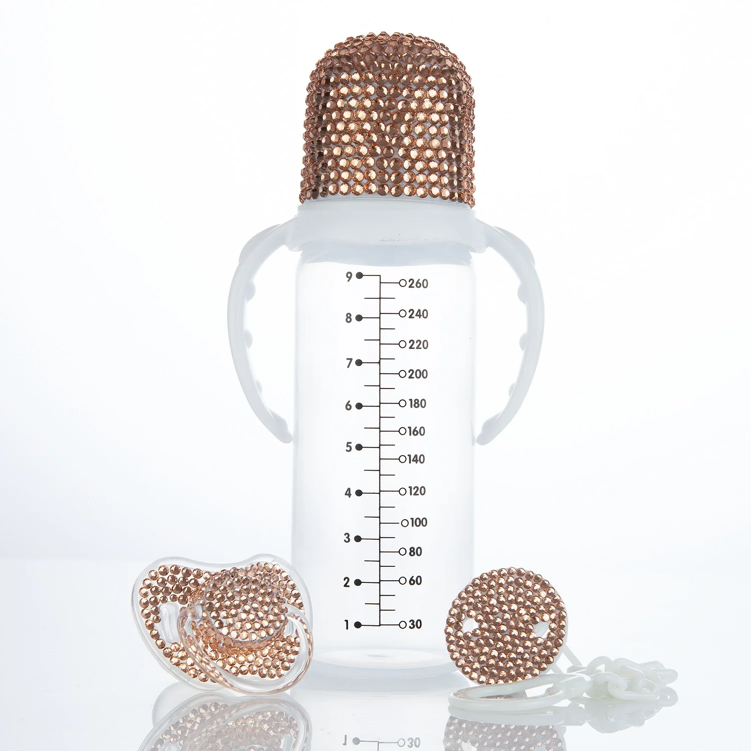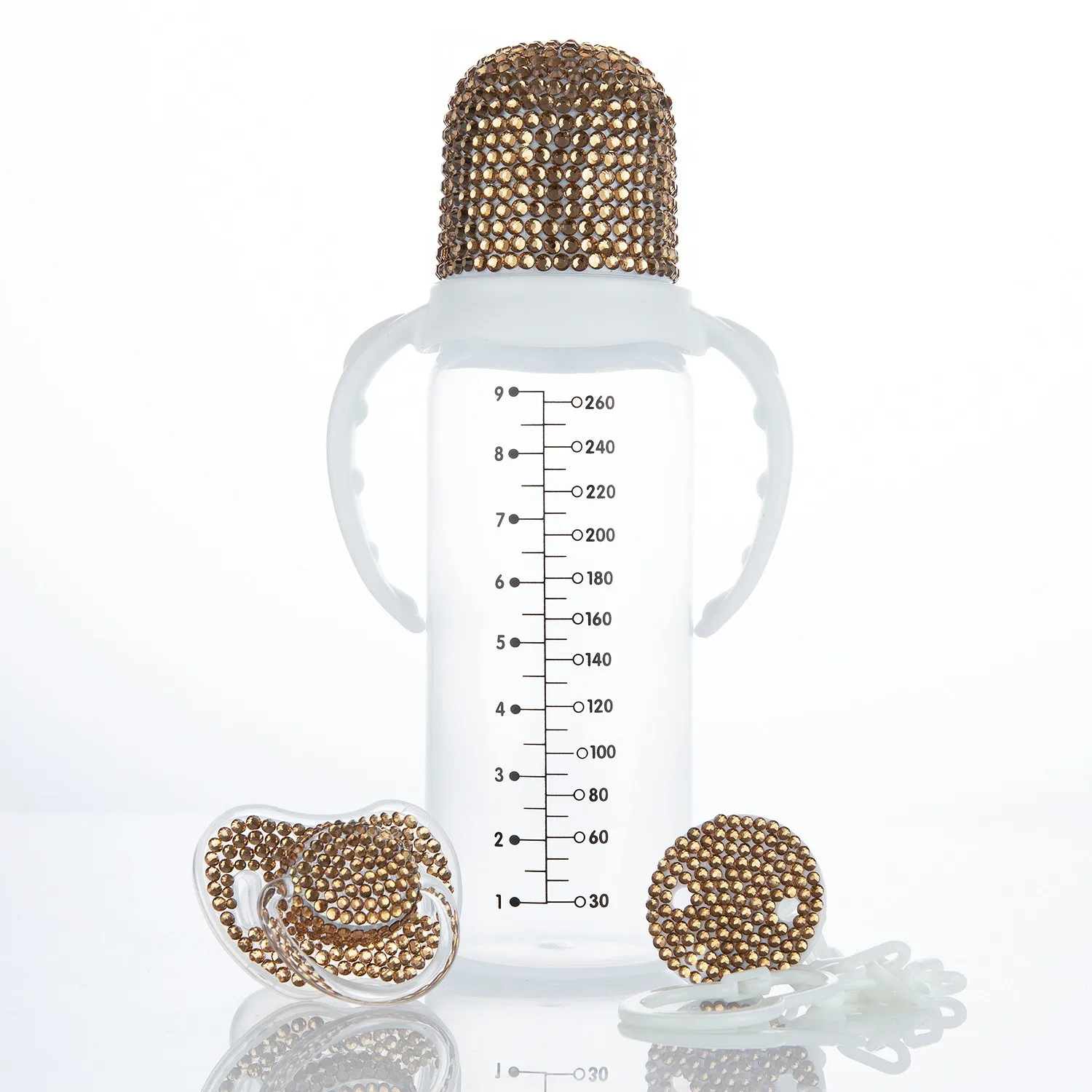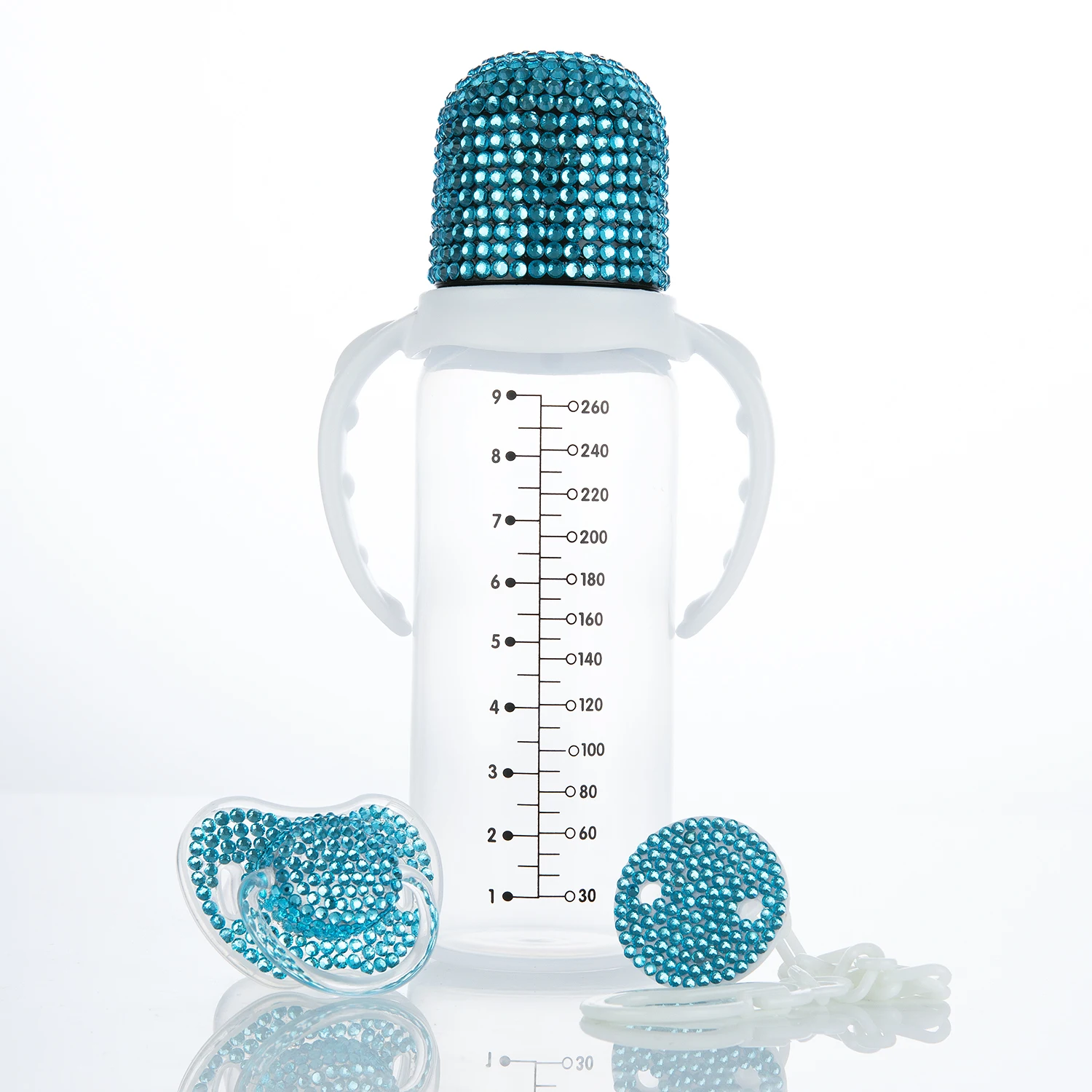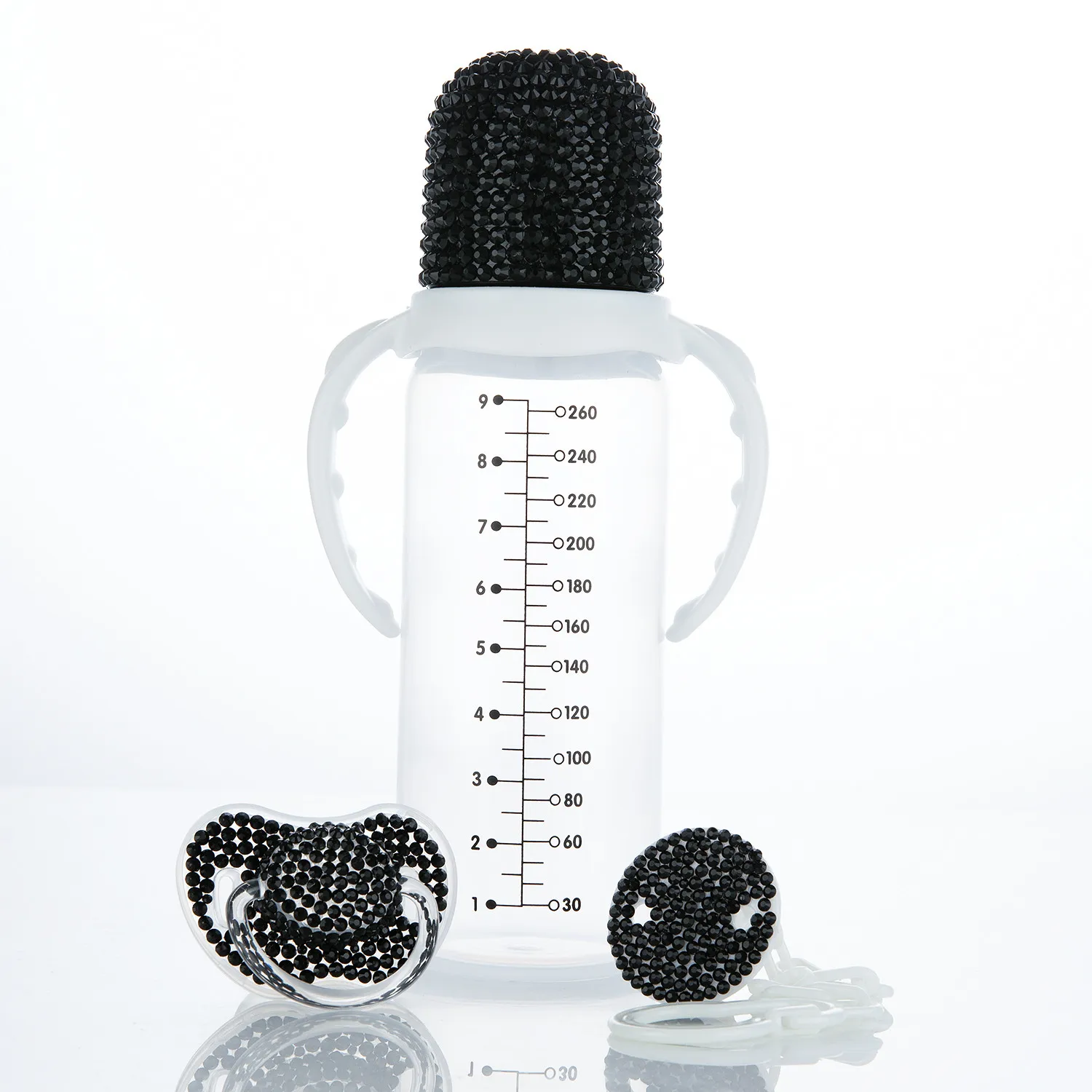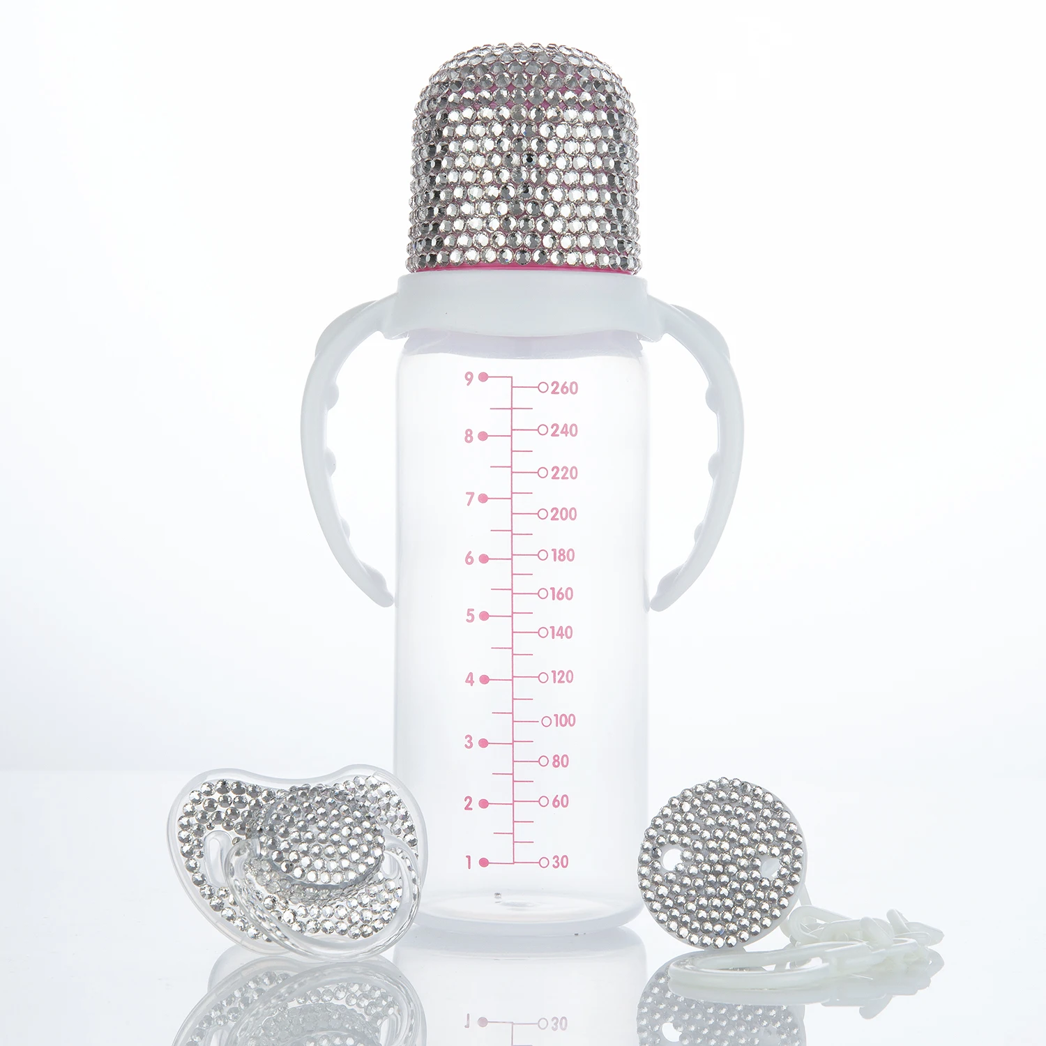 Introducing our stunning Bling Pacifier and Baby Bottle Set, specially designed to add a touch of glamour to your baby's feeding time! Made with high-quality materials and adorned with dazzling rhinestones, this set is sure to make your little one stand out in style.
