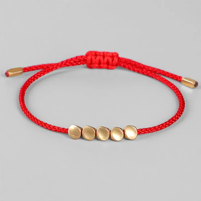 MKENDN Handmade Tibetan Copper Bead Lucky Rope Bracelet & Bangles For Women Men Wax Thread Bracelets