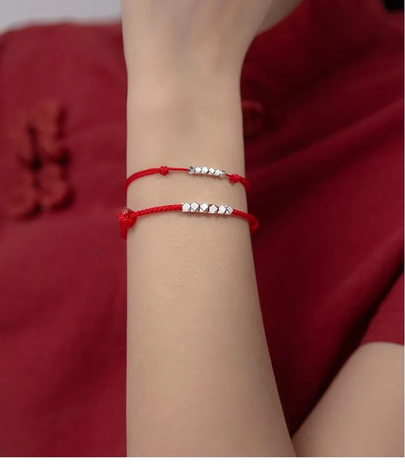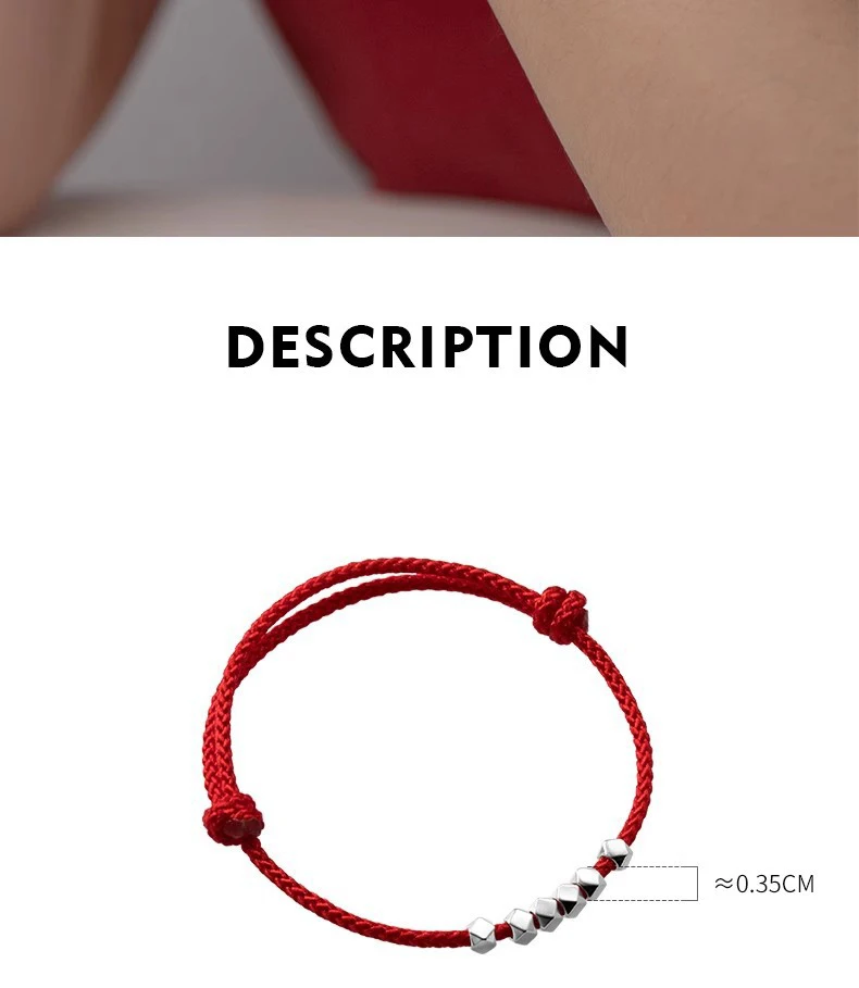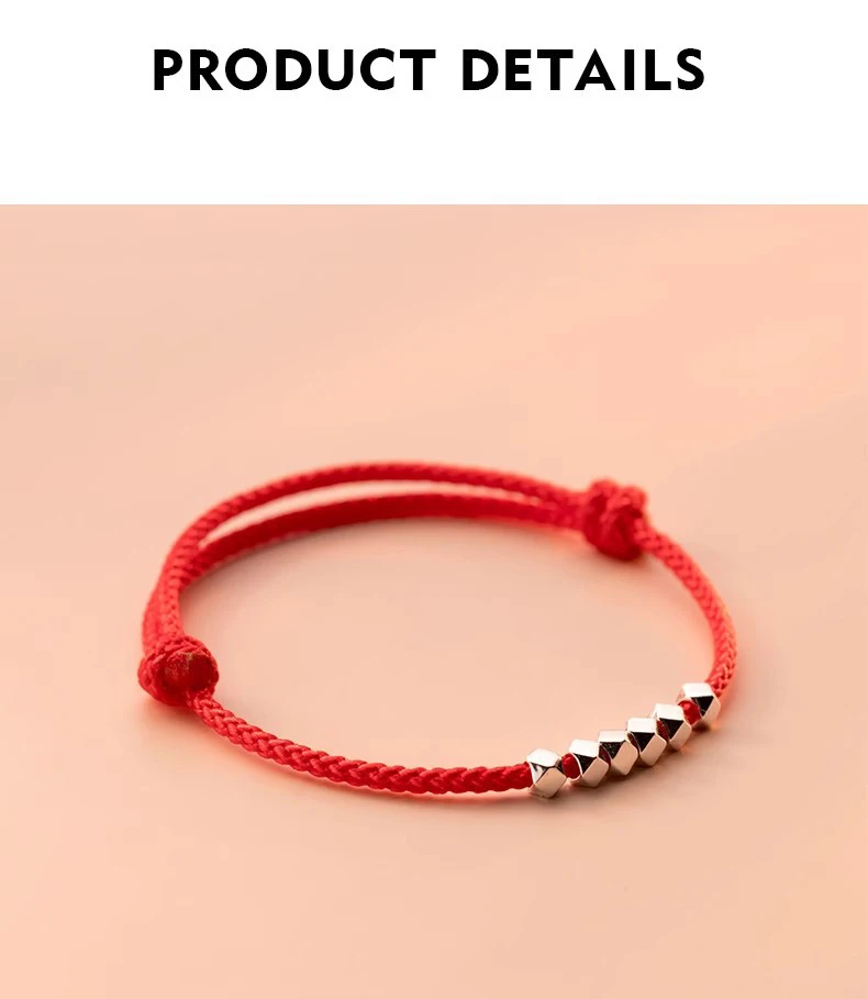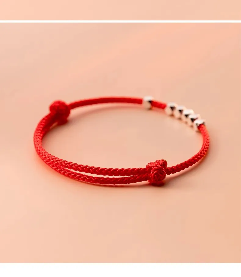 MloveAcc 925 Sterling Silver Rope Bracelets Women Section Beads Red Thread Line String Bracelet for Girl Lucky Jewelry
