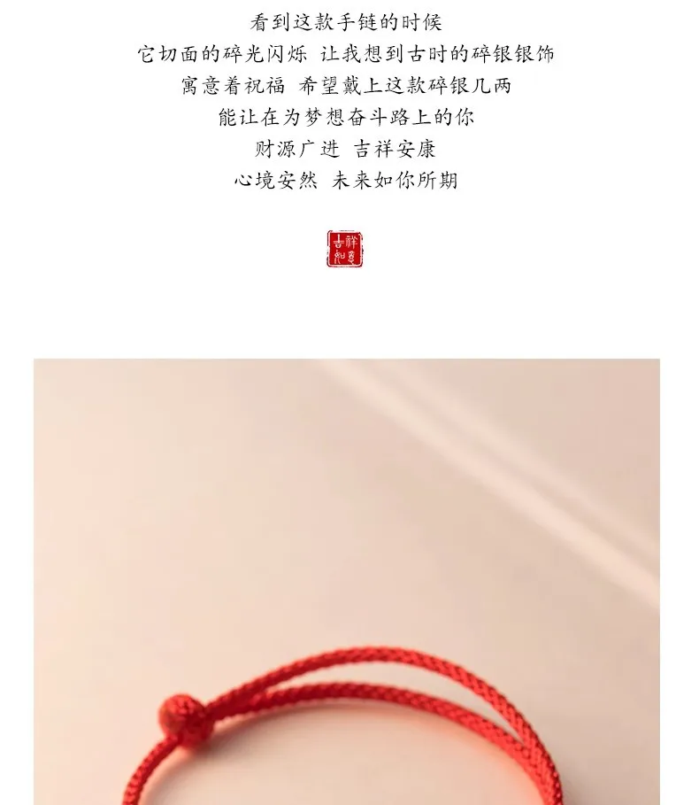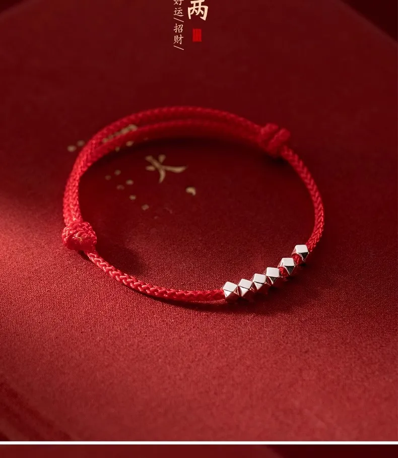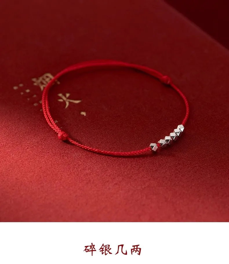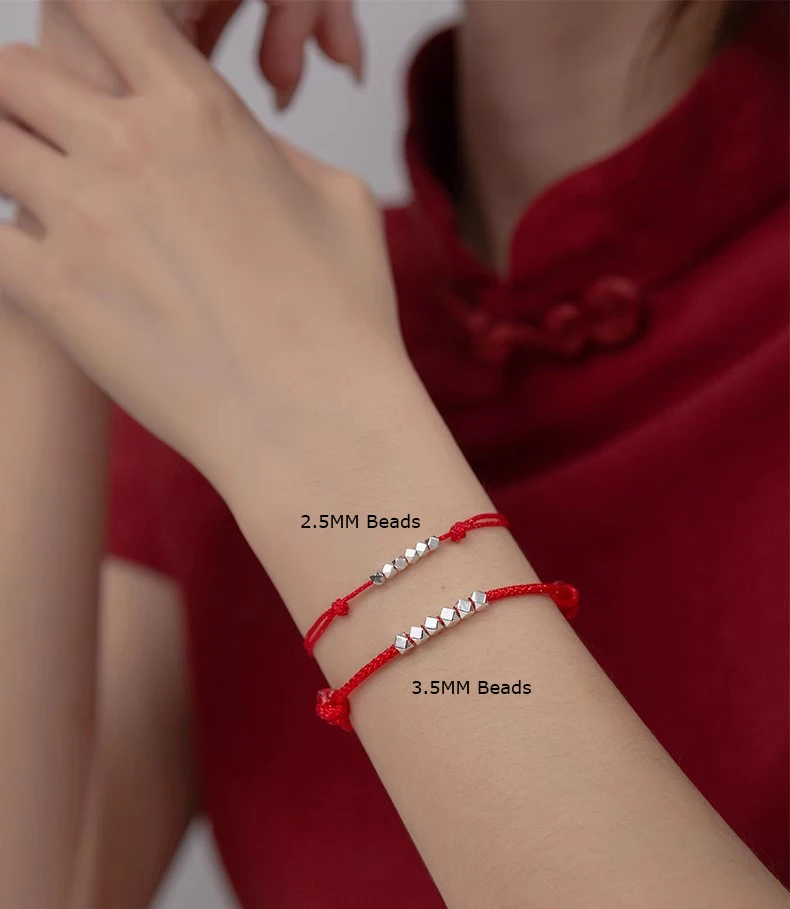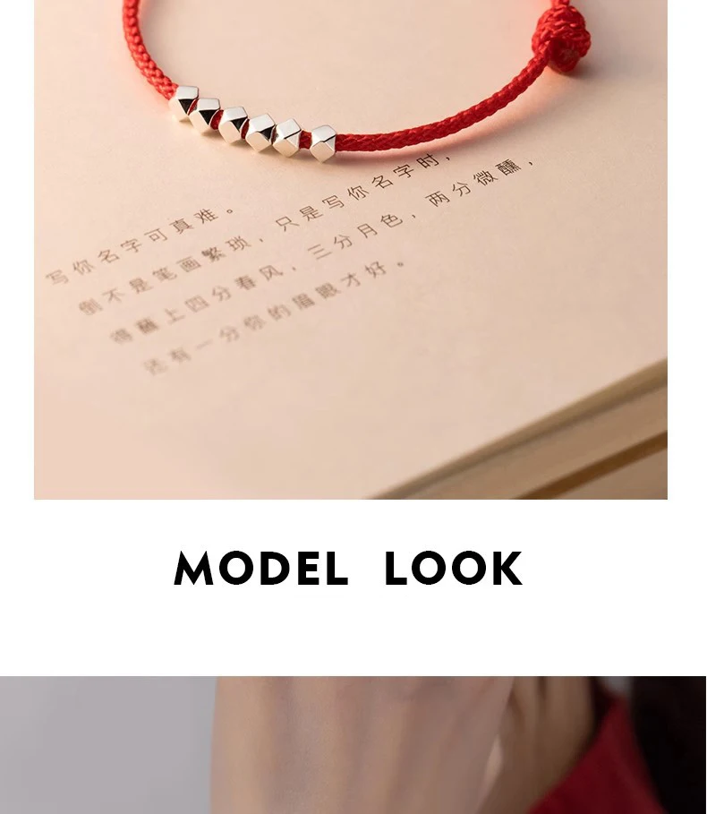 MloveAcc 925 Sterling Silver Rope Bracelets Women Section Beads Red Thread Line String Bracelet for Girl Lucky Jewelry