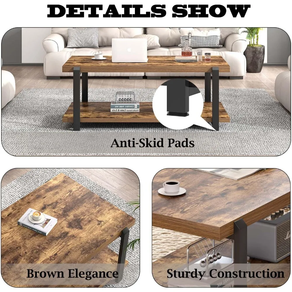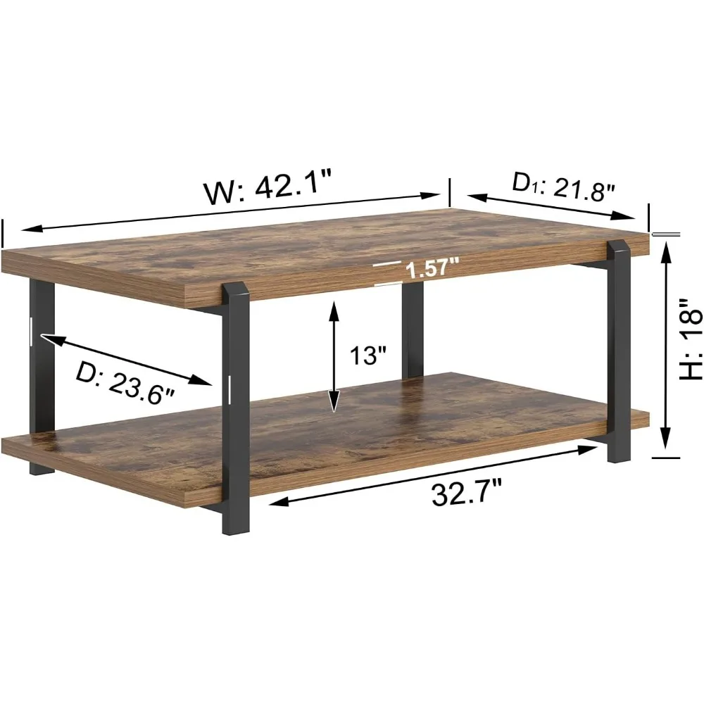 Modern Coffee Table, Rustic Wood Center Table with Storage for Living Room, Industrial Rectangle 2 Tier Low Cocktail Tea Table