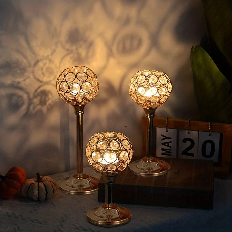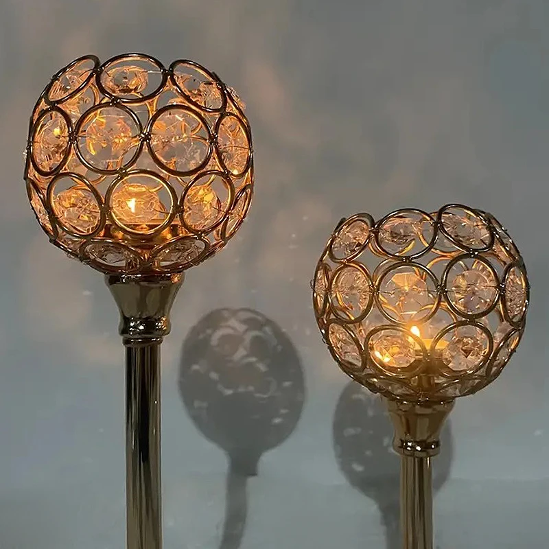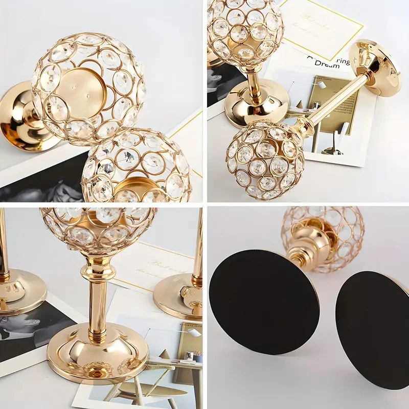 Modern Crystal Candle Holder Metal Glass Tealight Candlestick Wedding Party Dinning Table Centerpieces Home Decoration Crafts