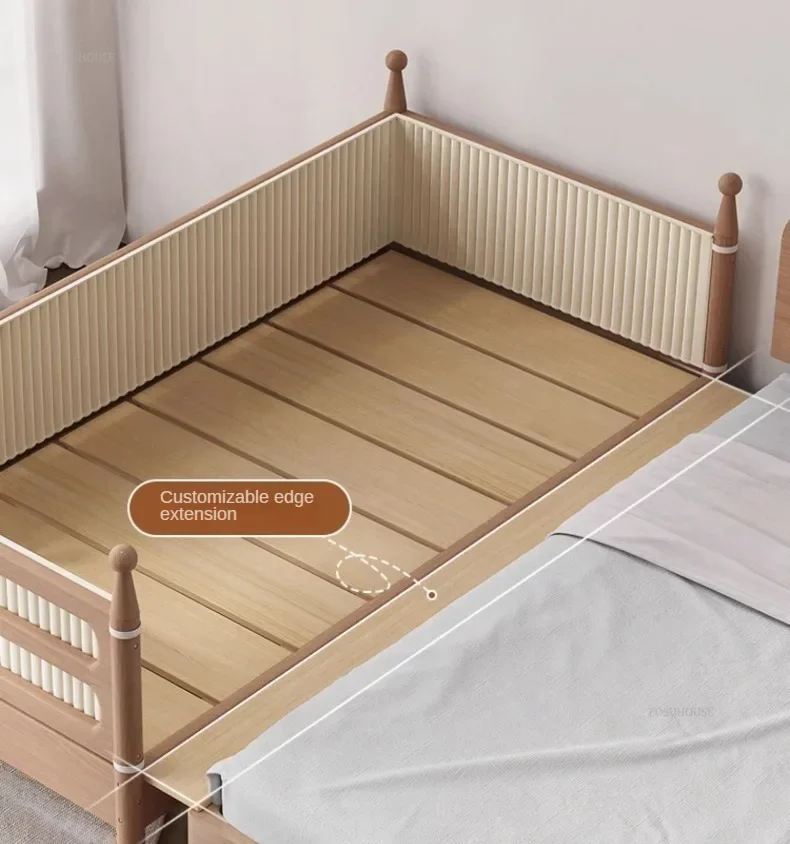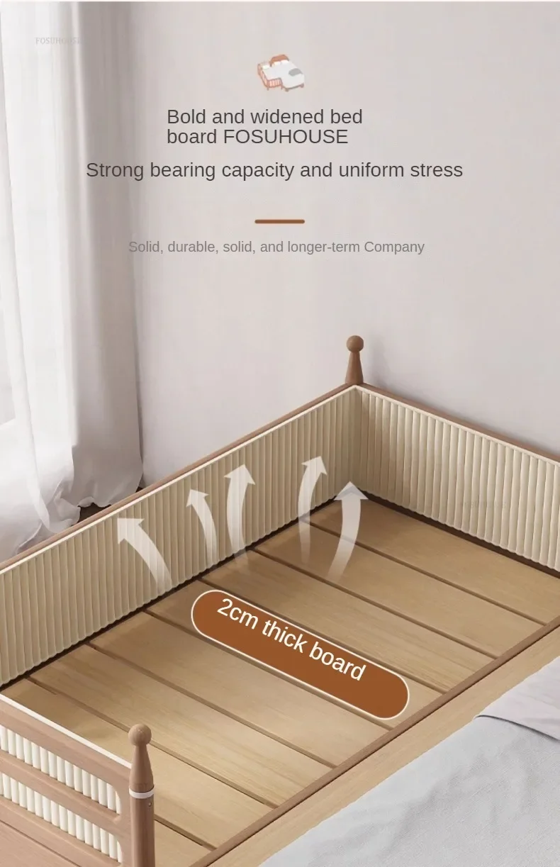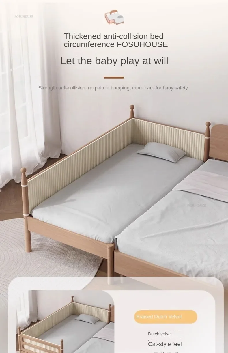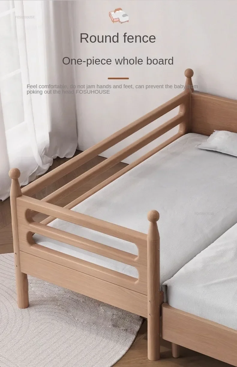 Modern Widened Children Beds for Bedroom Solid Wood Single Child Bed with Guardrails Simple Creative Design Kids Bed for Study
