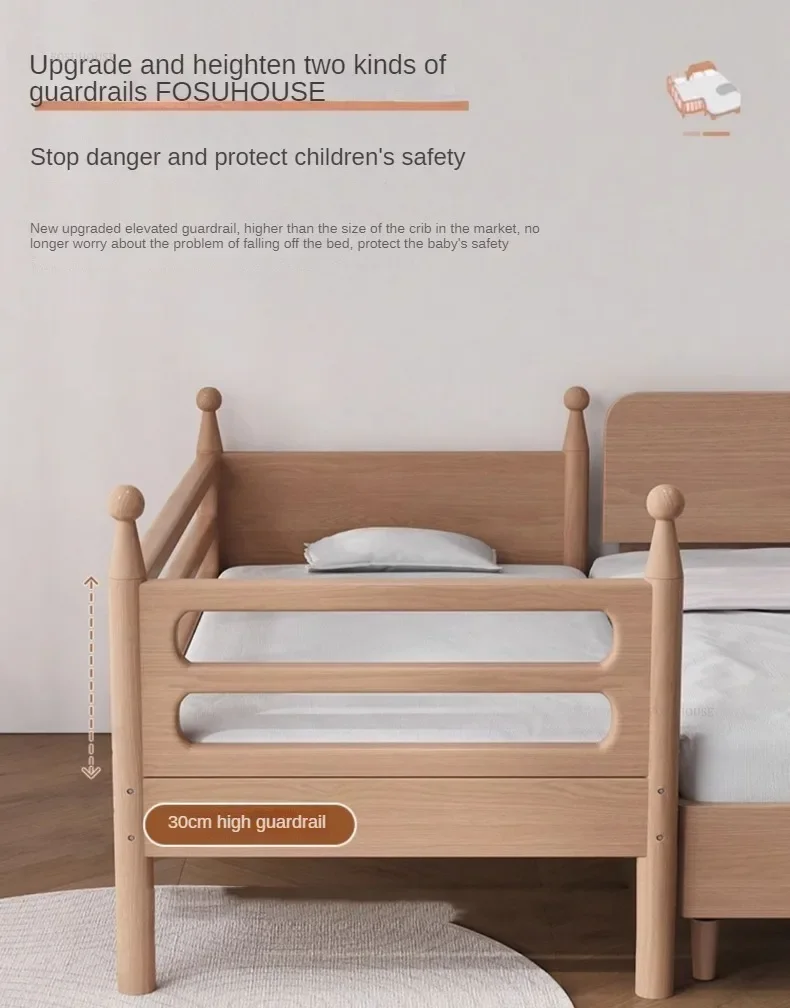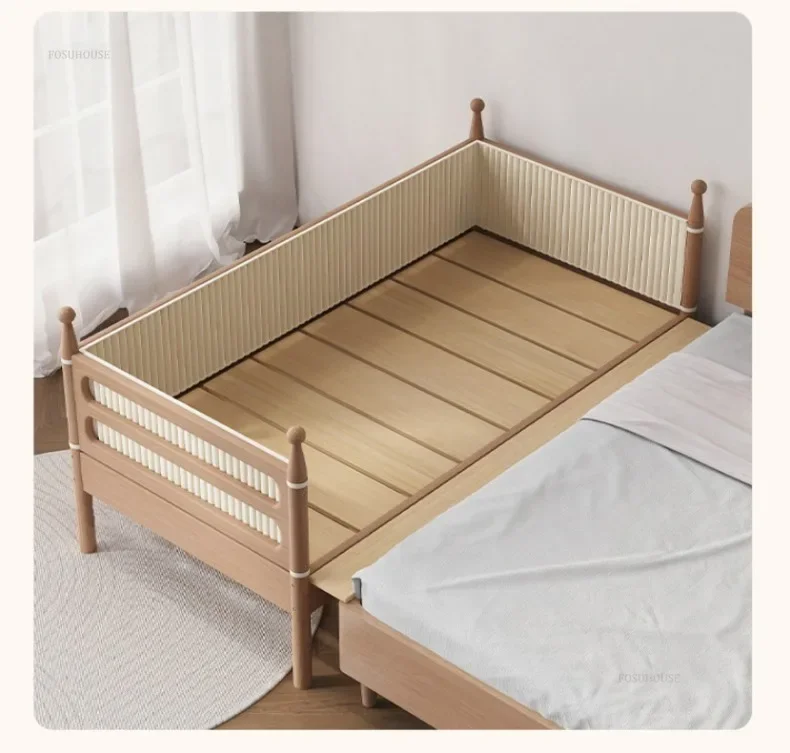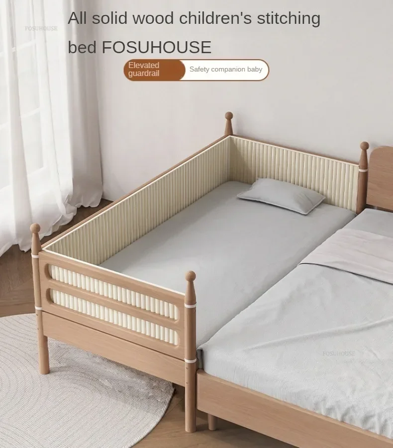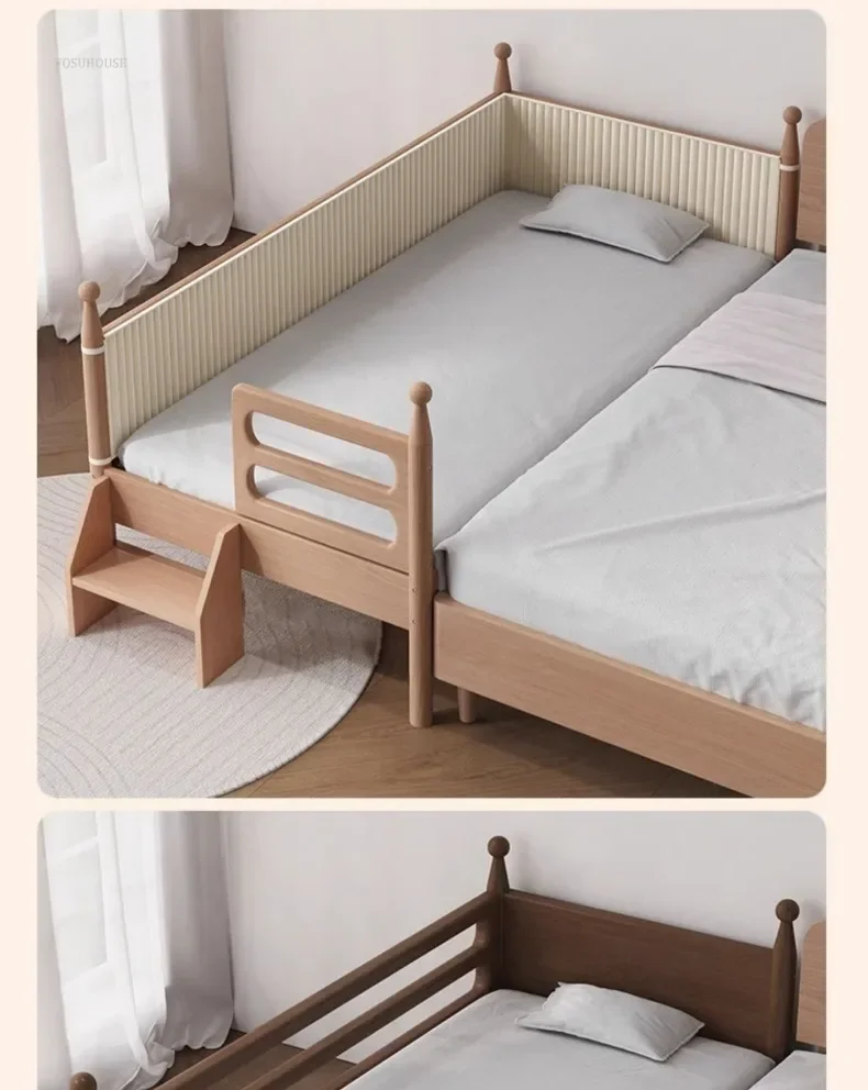 Modern Widened Children Beds for Bedroom Solid Wood Single Child Bed with Guardrails Simple Creative Design Kids Bed for Study