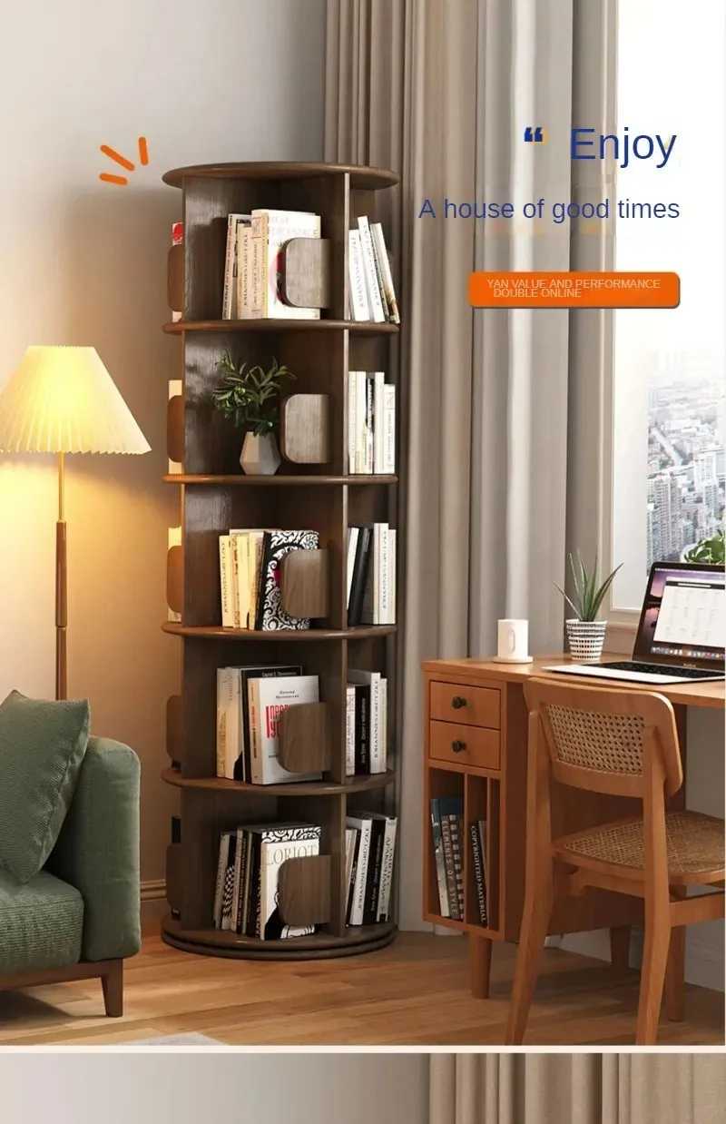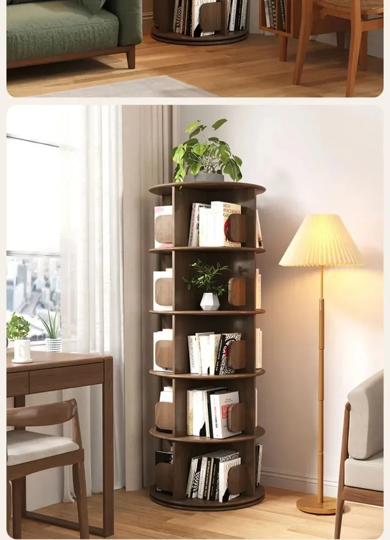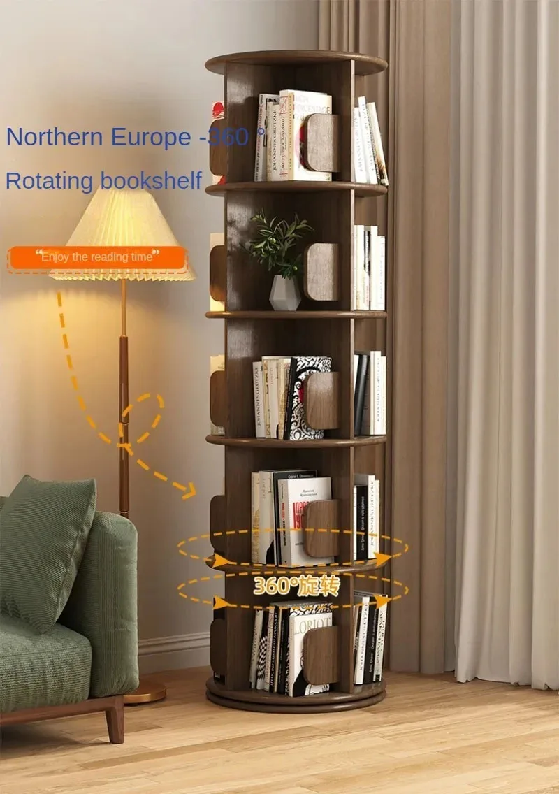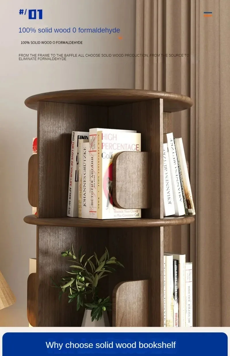 Modern Wooden Rotating Bookshelf 360 Cabinet Floor Rack Library Home Living Room Furniture Multi-layer Children’s Bookcase