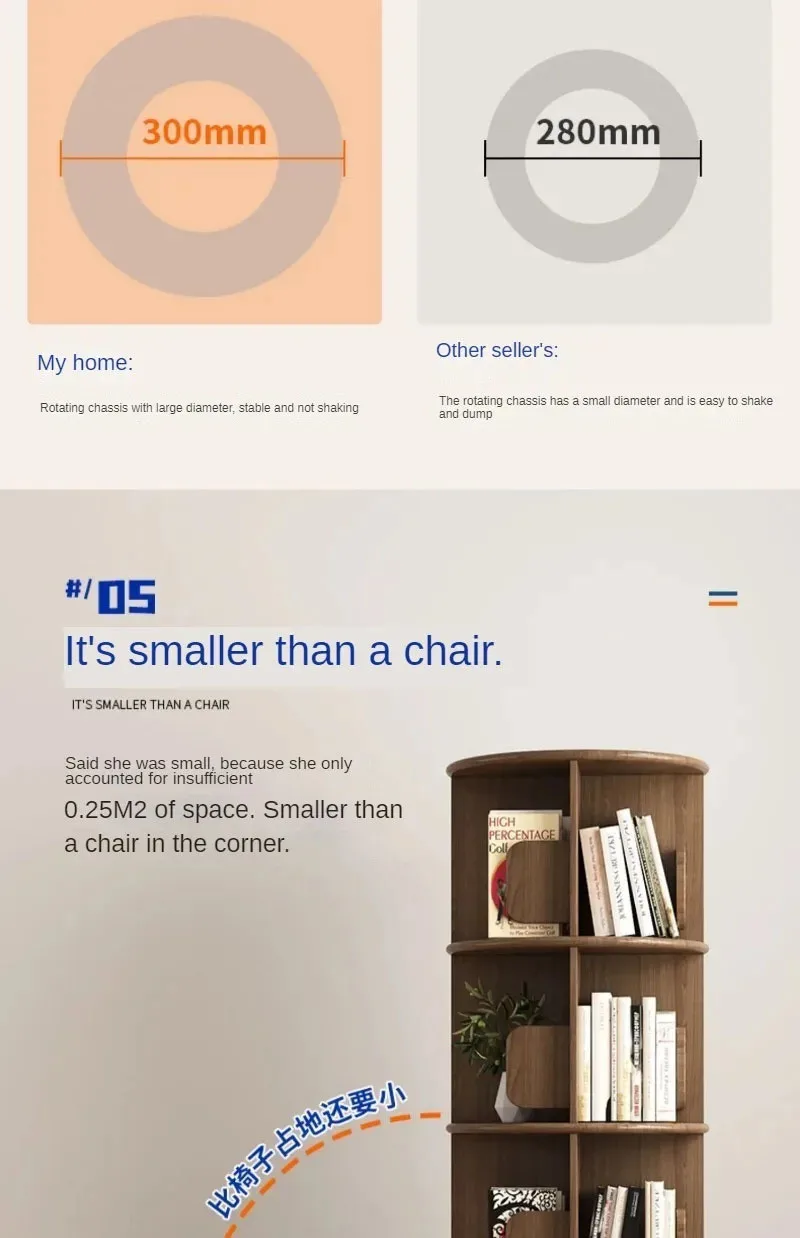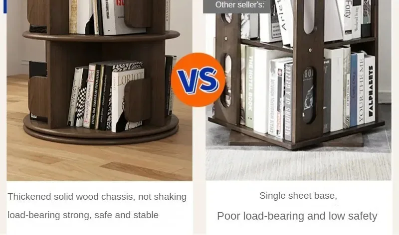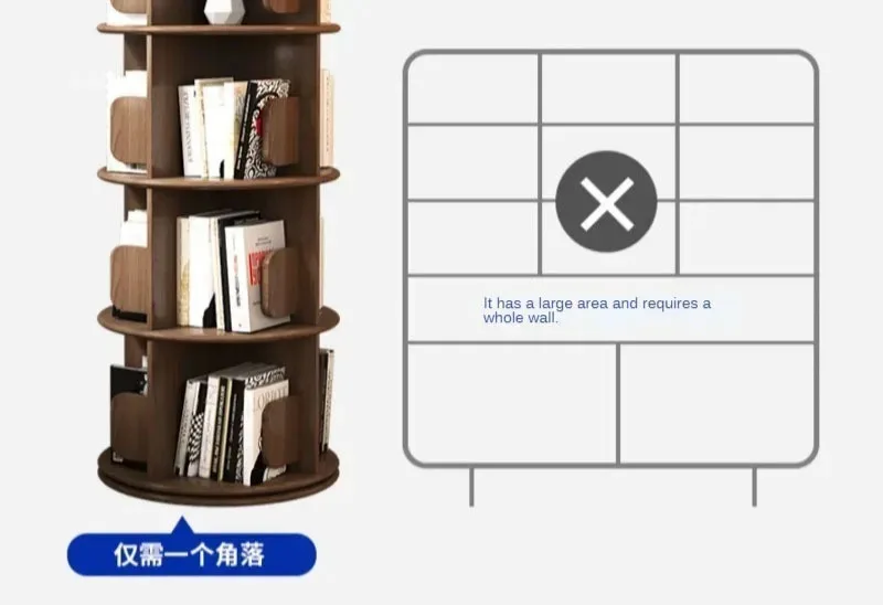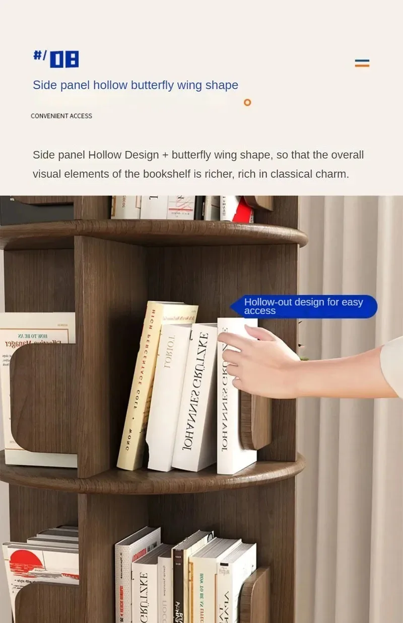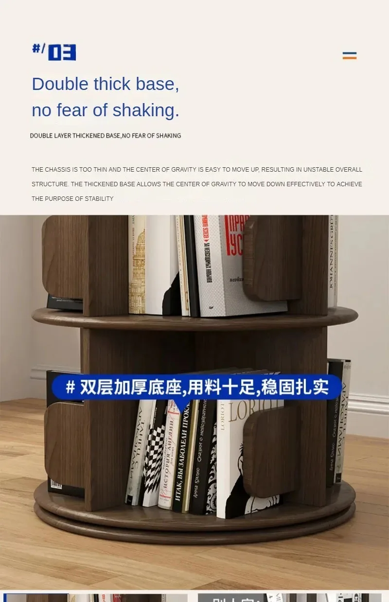 Modern Wooden Rotating Bookshelf 360 Cabinet Floor Rack Library Home Living Room Furniture Multi-layer Children’s Bookcase