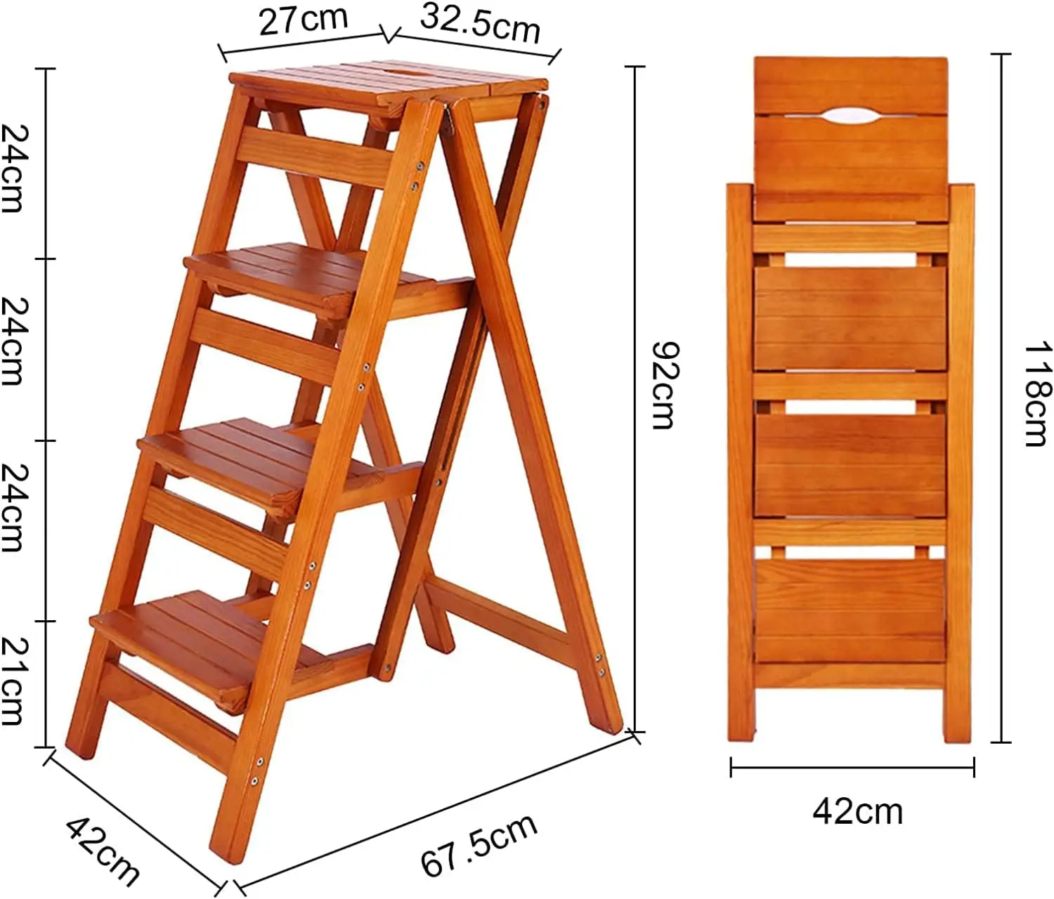 - 【Lightweight & SpaceSaving】3 tier Step Ladder open: 42x56x66cm, folded: 42x93cm; 4 tier Step Ladder open: 42×67.5x92cm, folded: 42x118cm,Can be placed under the bed or in a convenient corner, in a narrow place in your garage,etc, small footprint,space saving, easy to store and transport.