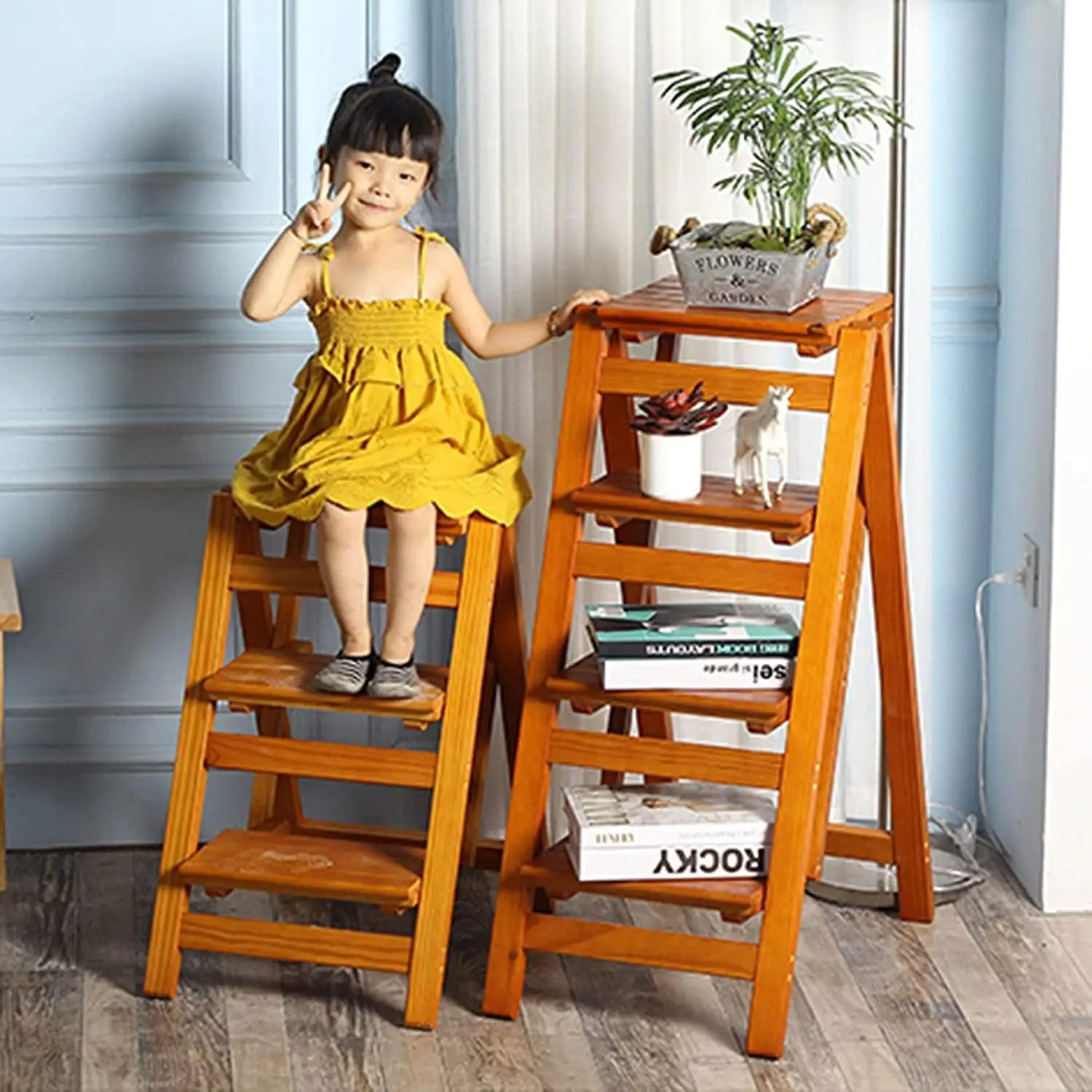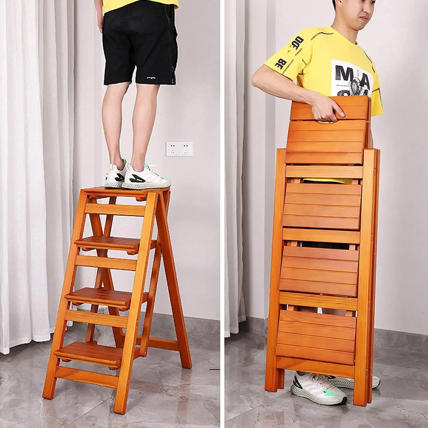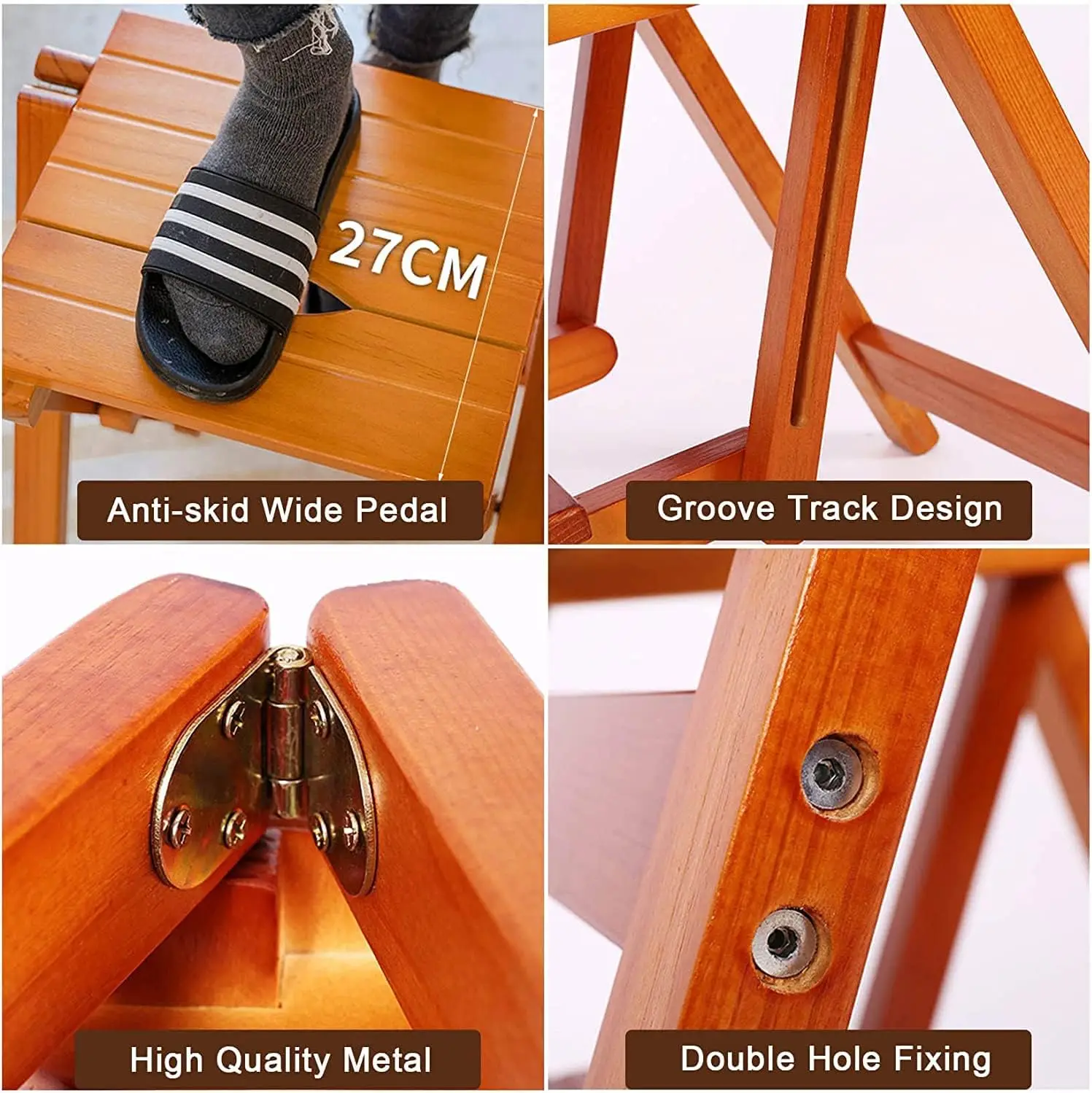 ModernBarStoolsSetBarKitchen Island Chairs3/4 TierWood Step Ladder for Adults, Portable FoldingStepStoolwith Anti-SlipWide Pedal