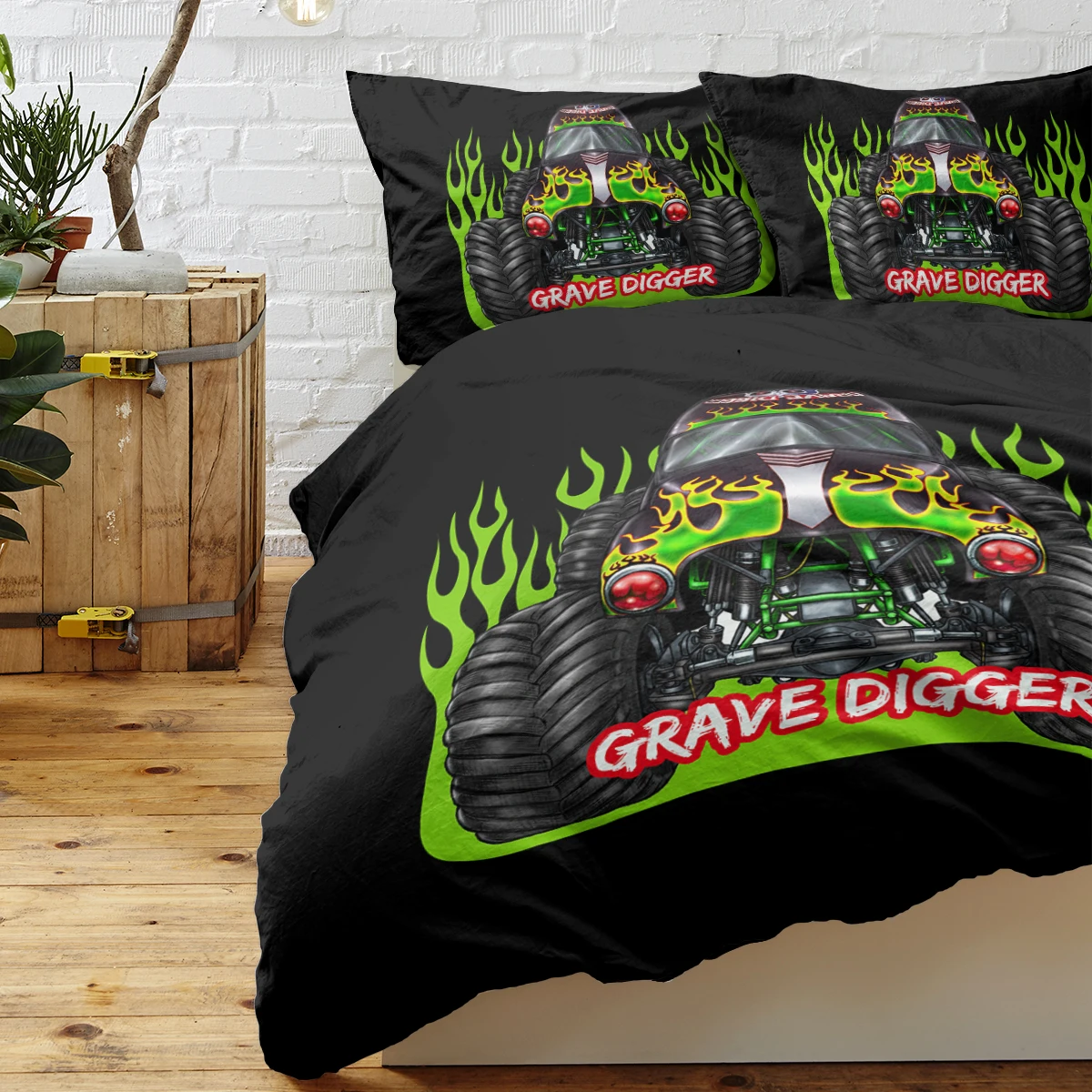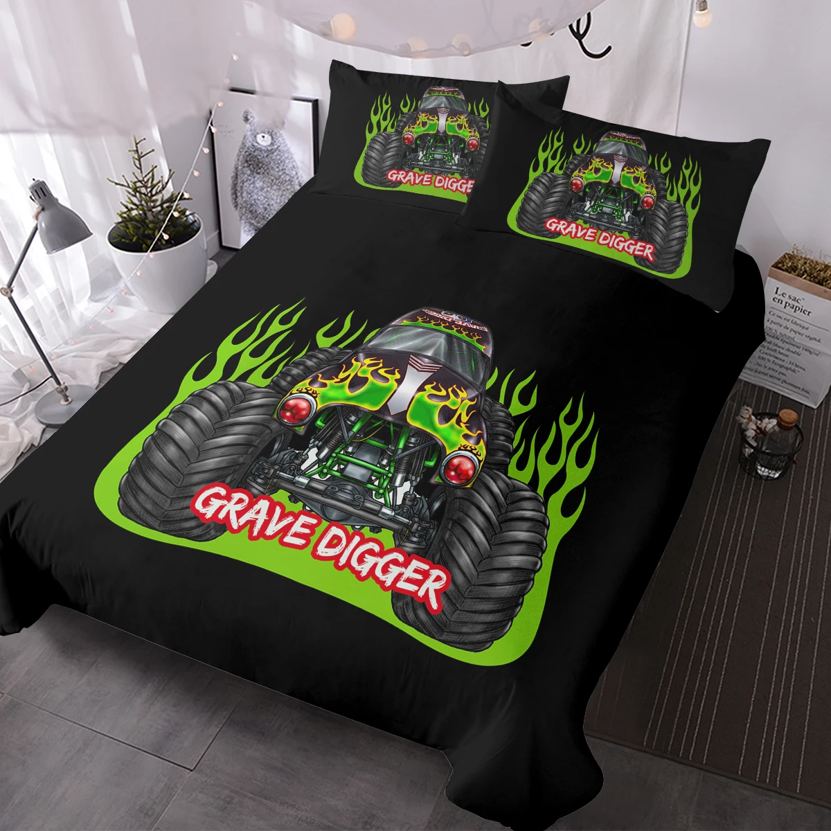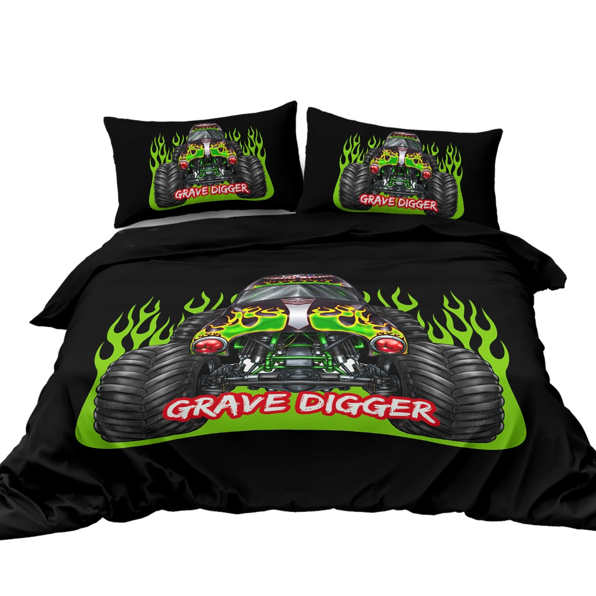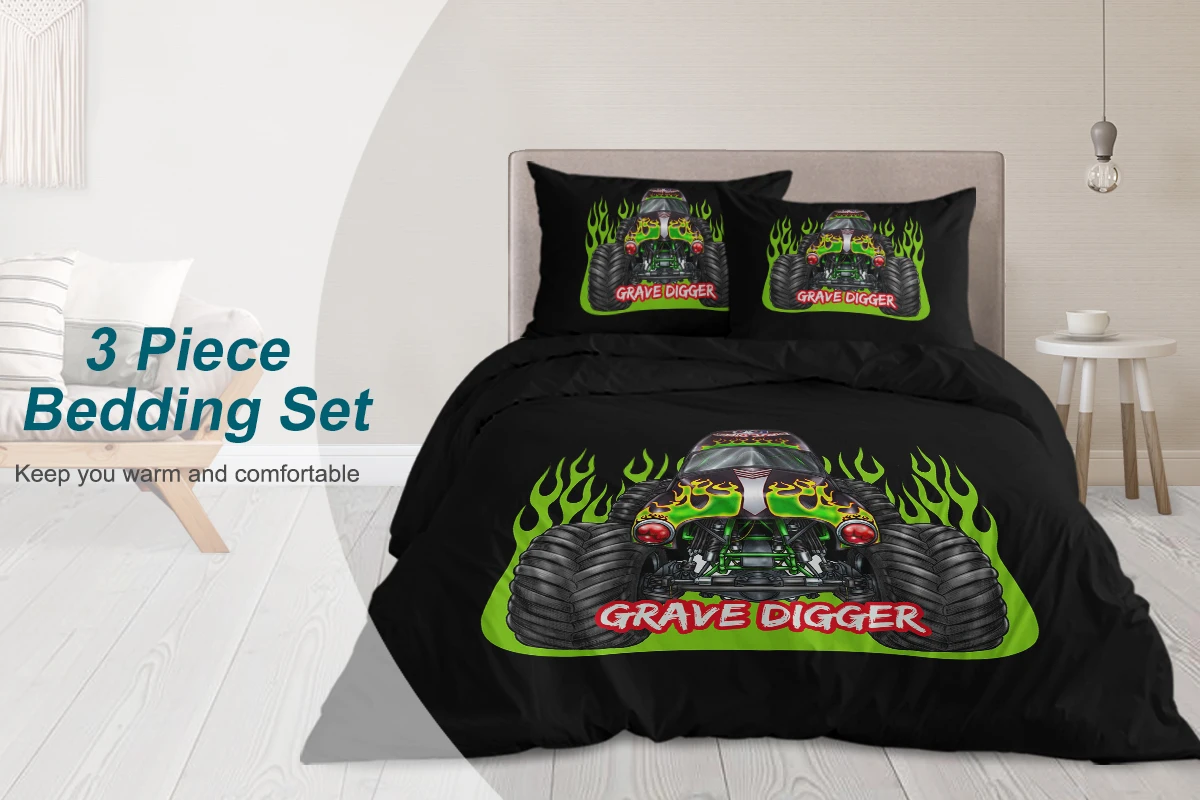 Monster Trucks Bedding Sets Black Green Gravedigger Duvet Cover Set 3 Piece Monster Trucks Comforter Cover