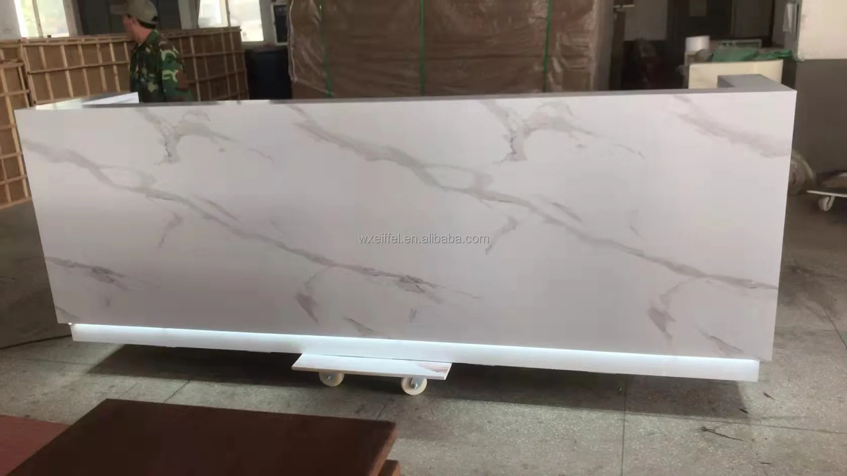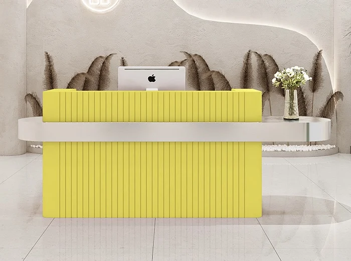 Free Logo Small Paint Marble Metal Gold-plated Beauty Salon Bar Front Counter Office Reception Desk