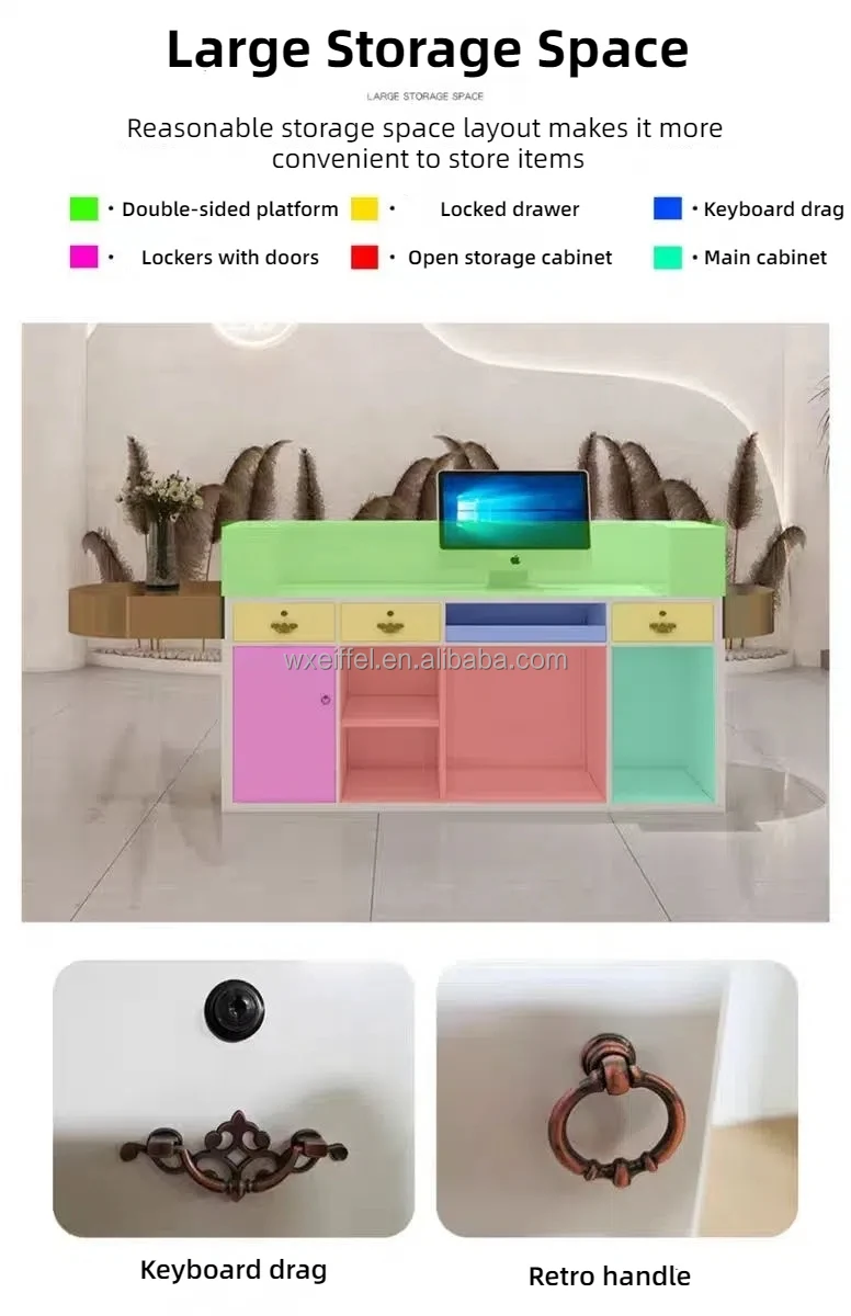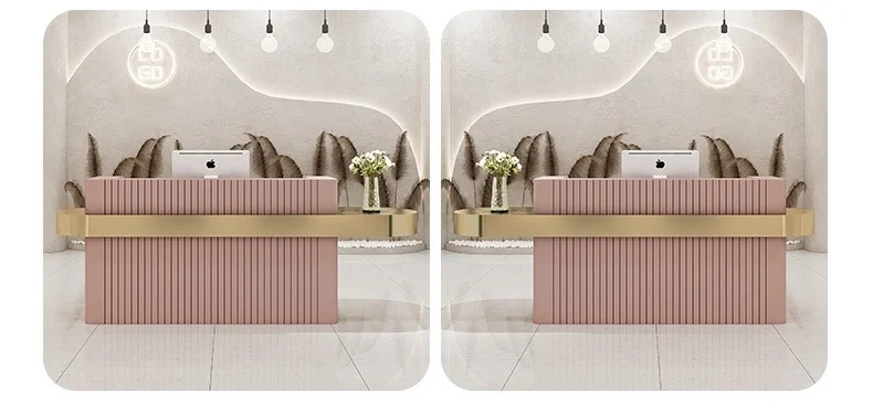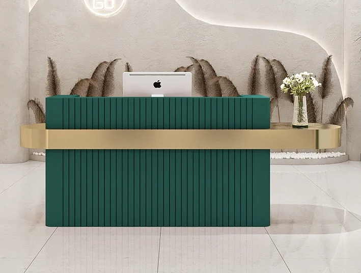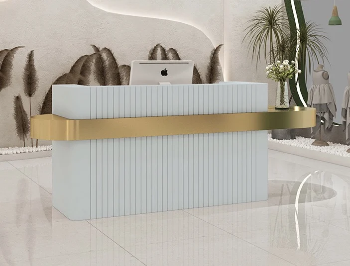 MORE DESIGN Support Customize Free Logo Paint Marble Metal Gold-plated Bar Beauty Salon Front Counter Office Reception Desk