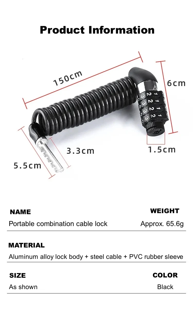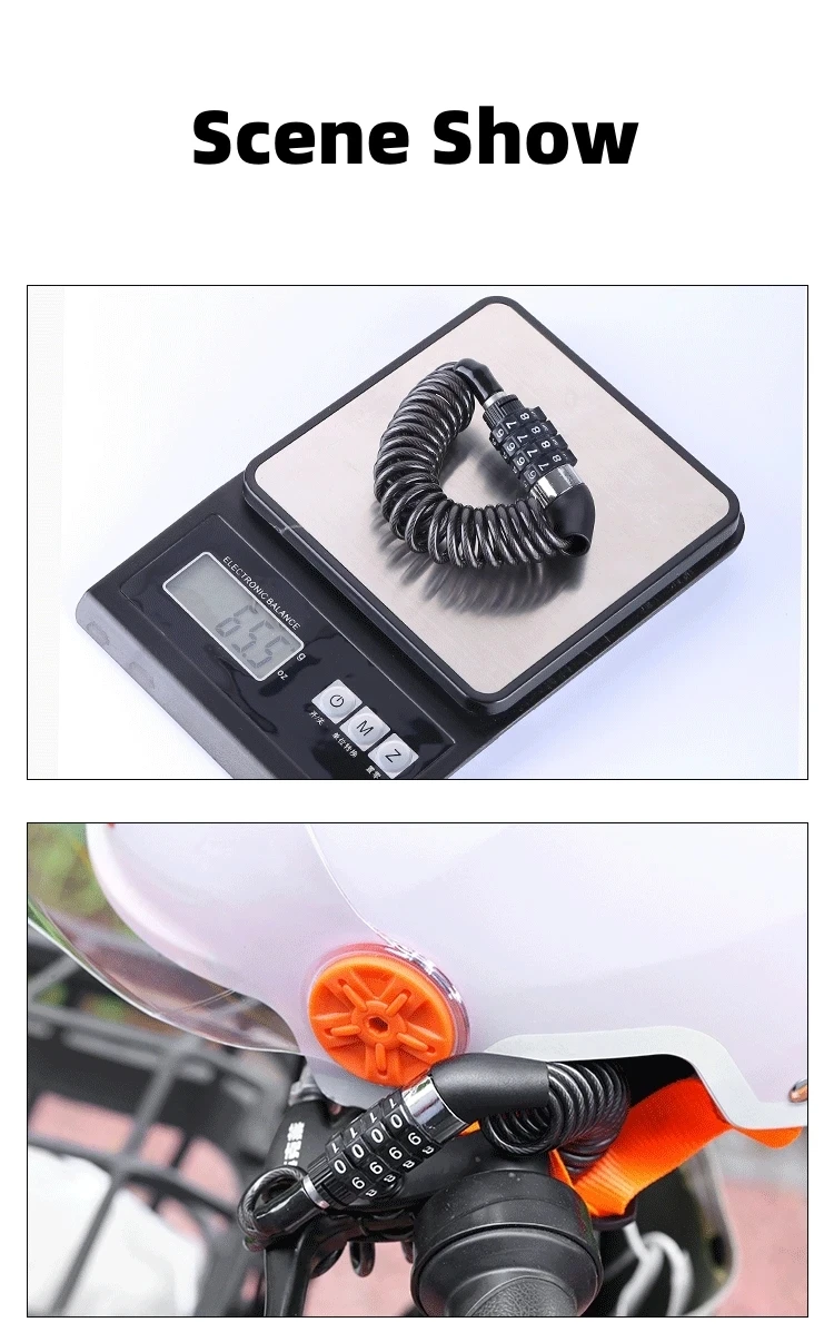 Motorcycle Electric Bicycle Helmet Anti-lost Lock Anti-theft Password Retractable Lock Mini Portable Steel Cable Password Lock