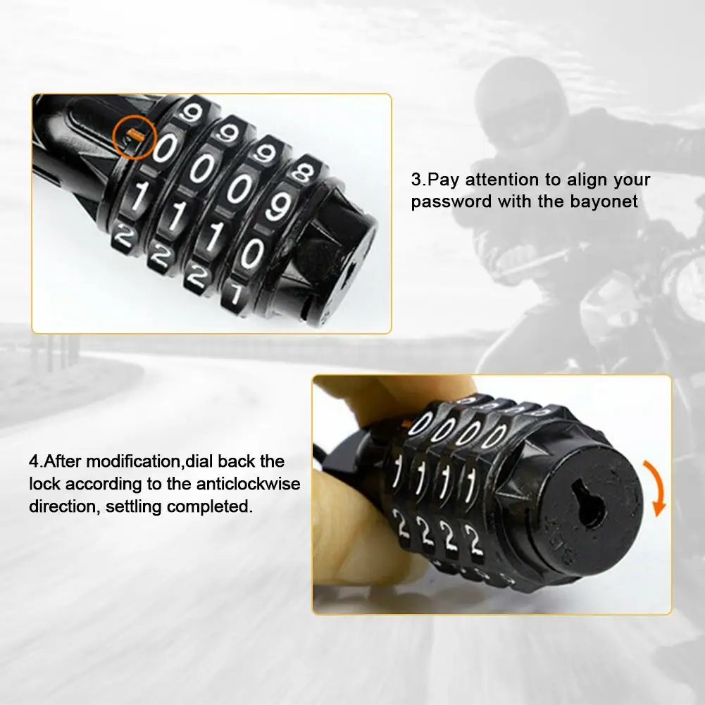 Motorcycle Helmet Lock With Steel Wire Cable Tough Combination PIN Lock Carabiner Fix For Motorcycle Bicycle Electric Vehicles